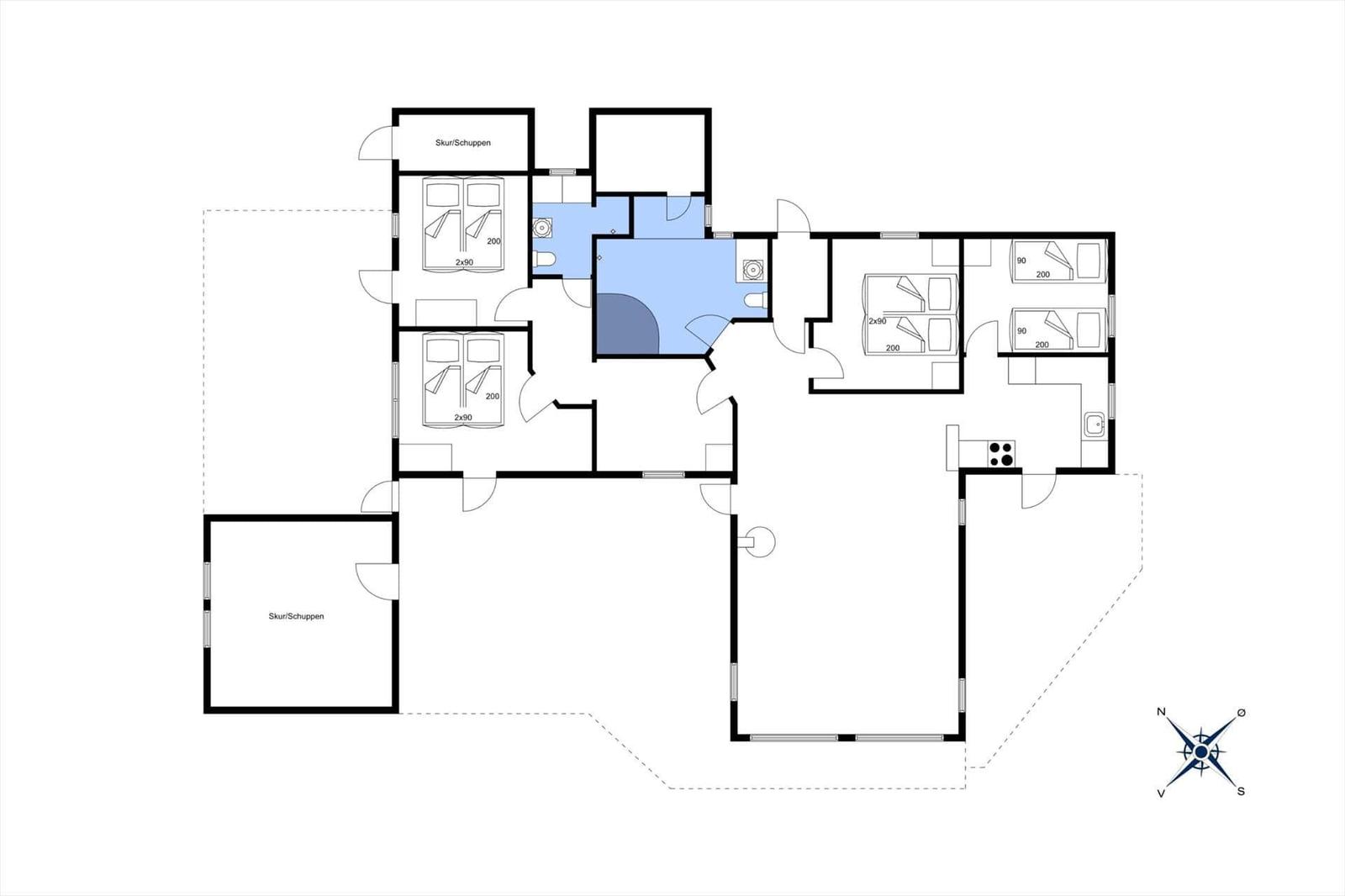 Das Ferienhaus in Kromose, Westjütland, bietet auf 125 m² Platz für bis zu 8 Erwachsene und ein Haustier. Die geschmackvolle Einrichtung umfasst 4 Schlafzimmer mit 3 Doppelbetten, 2 Einzelbetten und 2 Kinderbetten. Zwei moderne Badezimmer mit Duschbad sorgen für Komfort. Der großzügige Wohnbereich mit Kamin lädt zum Entspannen ein und ist mit einem TV, DVD-/Blu-Ray-Player sowie Internet über WLAN ausgestattet.