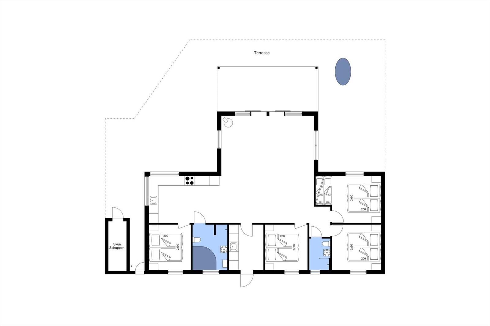 Das Ferienhaus in Havneby, Westjütland, bietet Platz für 10 Erwachsene und überzeugt mit seiner gemütlichen Einrichtung. Auf einer großzügigen Fläche von 136 m² stehen 4 Schlafzimmer mit Doppelbetten bereit, sowie ein einladendes Wohnschlafzimmer. Zwei moderne Badezimmer sorgen für Komfort. Die voll ausgestattete Küche verfügt über Geschirrspüler, Elektro-/Gasherd, Backofen, Mikrowelle und Kühlschrank, ergänzt durch eine Kaffeemaschine und einen Wasserkocher. Zusätzliche Annehmlichkeiten wie eine Waschmaschine, ein Wäschetrockner und ein Bügeleisen schaffen Bequemlichkeit. WLAN-Internetzugang und ein Smart-TV garantieren Unterhaltung. Besondere Highlights sind die Fußbodenheizung und die nachhaltige Solaranlage, die energiefreundliches Heizen ermöglicht. Die Lage ist ideal, mit nur 2.500 m zum Strand und 350 m zu Einkaufsmöglichkeiten. Dieses Feriendomizil bietet eine perfekte Kombination aus Komfort und Erholung.