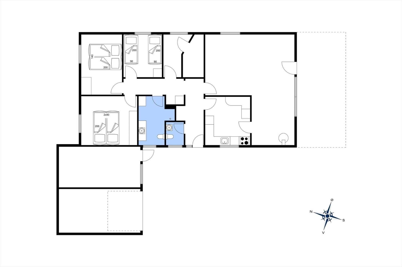 Die Ferienwohnung in Havneby, Westjütland, bietet auf 126 m² Raum für bis zu 6 Erwachsene und 2 Haustiere. Die Unterkunft überzeugt durch eine gemütliche Einrichtung mit Kamin und modernen Annehmlichkeiten. Die offene Wohnküche ist mit einem Geschirrspüler, Elektro- und Gasherd, Backofen, Mikrowelle, Kühlschrank sowie Gefriermöglichkeit ausgestattet. Für den Kaffeegenuss sorgt eine Kaffeemaschine, während ein Wasserkocher und der Fußbodenheizung zusätzlichen Komfort bieten. Im Wohnschlafzimmer stehen ein TV und ein Smart-TV mit DVD-/Blu Ray-Player zur Verfügung. Für Familien sind 2 Kinderbetten und ein Hochstuhl vorhanden. Das Duschbad ist modern, und die Waschmaschine sowie der Wäschetrockner erleichtern die Haushaltsführung. Die Unterkunft verfügt zudem über eine Sauna und kostenloses WLAN. In nur 2.100 Metern erreicht man den Strand, während sich Einkaufsmöglichkeiten in 1.500 Metern Entfernung befinden.