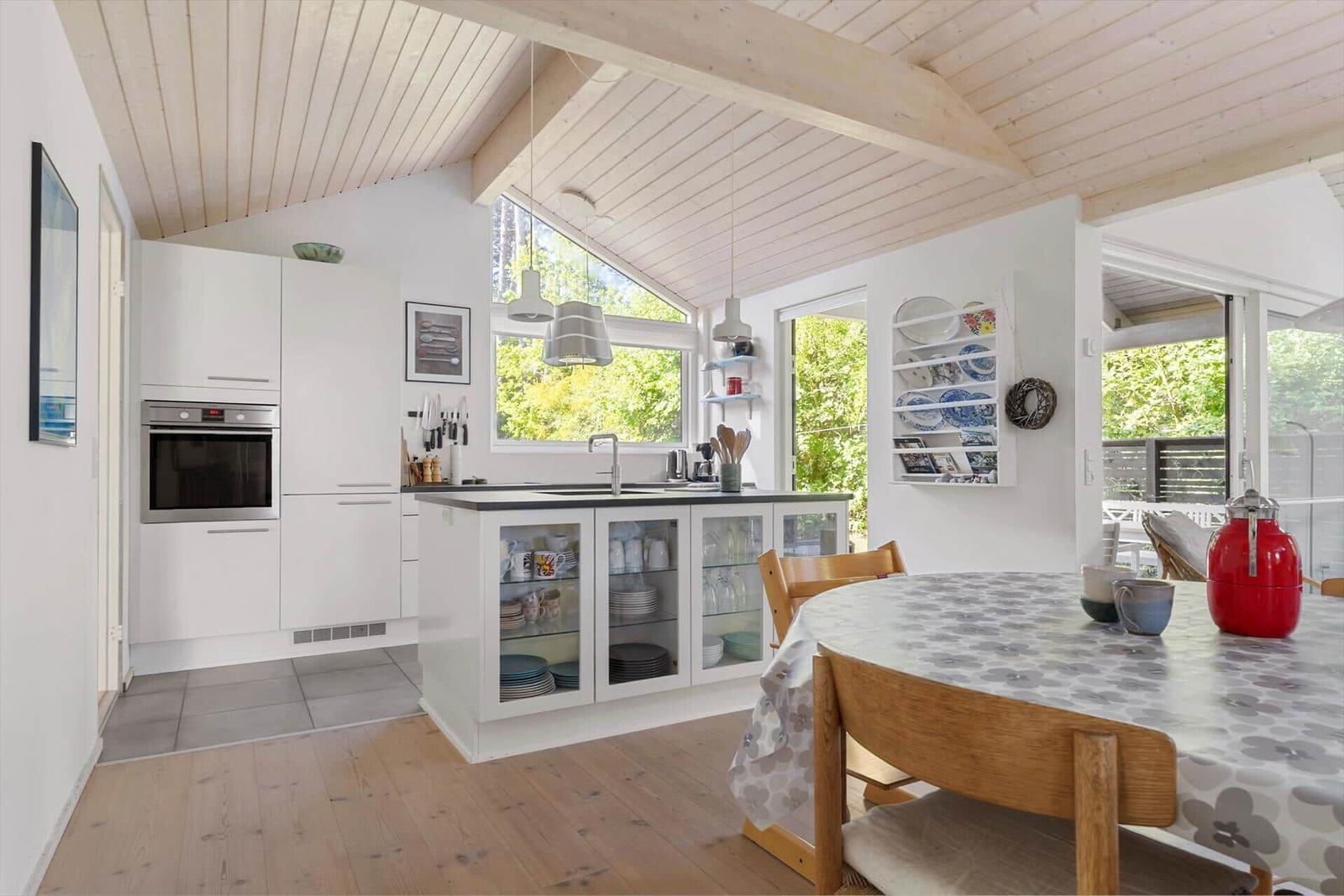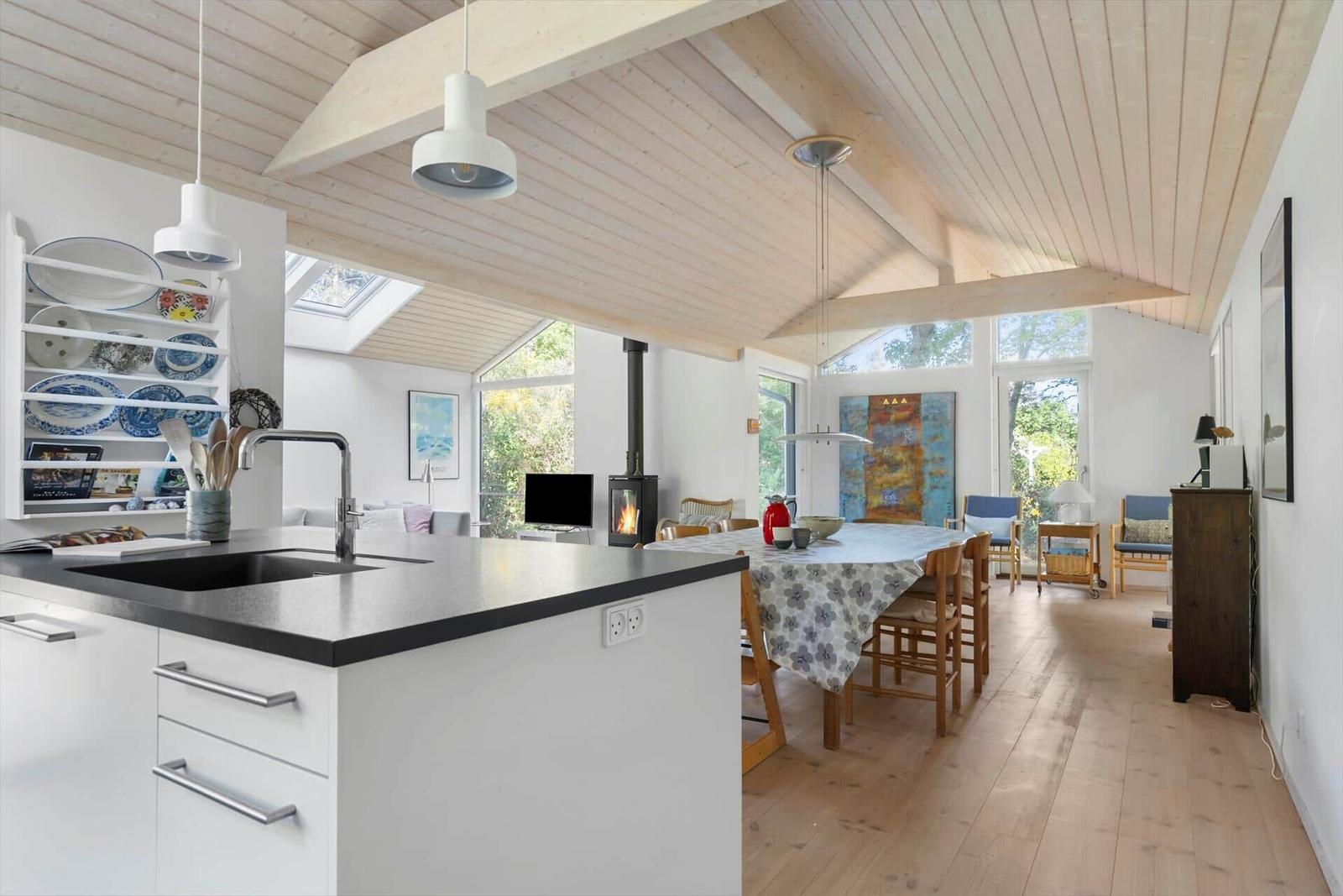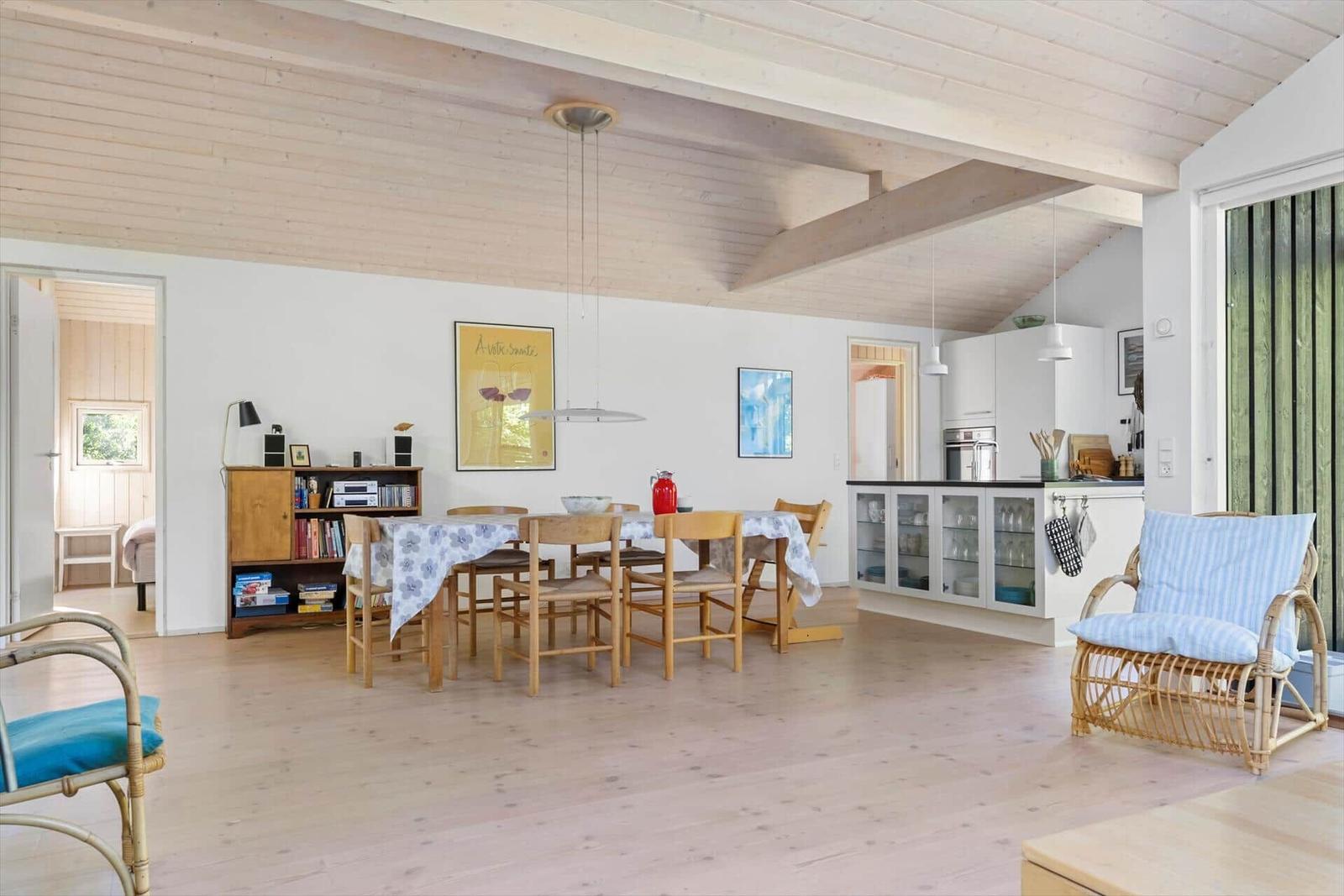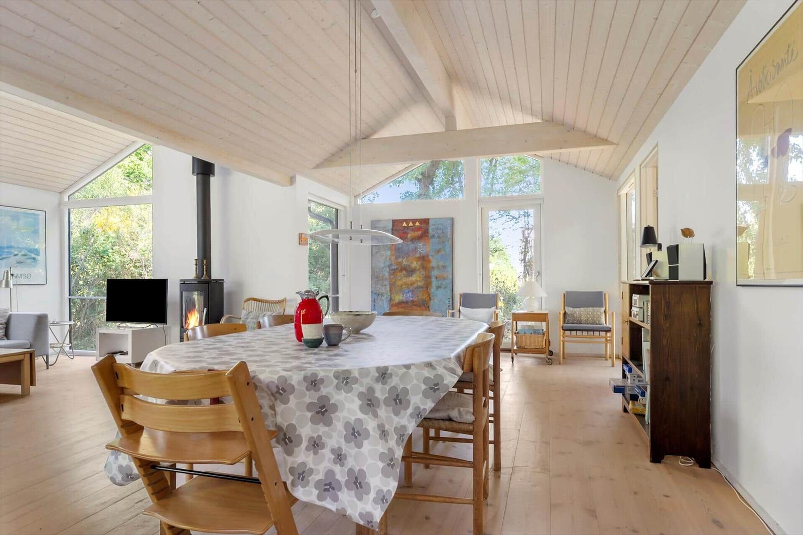 Die Ferienwohnung in Syd Samsø, Ostjütland, bietet auf 100 m² Platz für bis zu 8 Erwachsene und überzeugt mit ihrer gemütlichen Einrichtung. Die offene Küche ist mit modernen Annehmlichkeiten ausgestattet, darunter Geschirrspüler, Elektro-/Gasherd, Backofen, Mikrowelle, Kühlschrank und Kaffeemaschine. Im Wohnbereich befindet sich ein Smart-TV, der für Unterhaltung sorgt, während die Fußbodenheizung für ein angenehmes Raumklima sorgt. Zwei Duschbäder und vier Schlafzimmer, darunter drei Doppelbetten und zwei Einzelbetten, bieten ausreichend Komfort. Praktische Einrichtungen wie Waschmaschine, Wäschetrockner und ein Wasserkocher runden die Ausstattung ab. WLAN und energieeffizientes Heizen sind ebenfalls vorhanden. Nur 150 Meter bis zum nächsten Strand und 4.000 Meter zu Einkaufsmöglichkeiten gewährleisten eine ideale Lage für erholsame Tage am Meer.