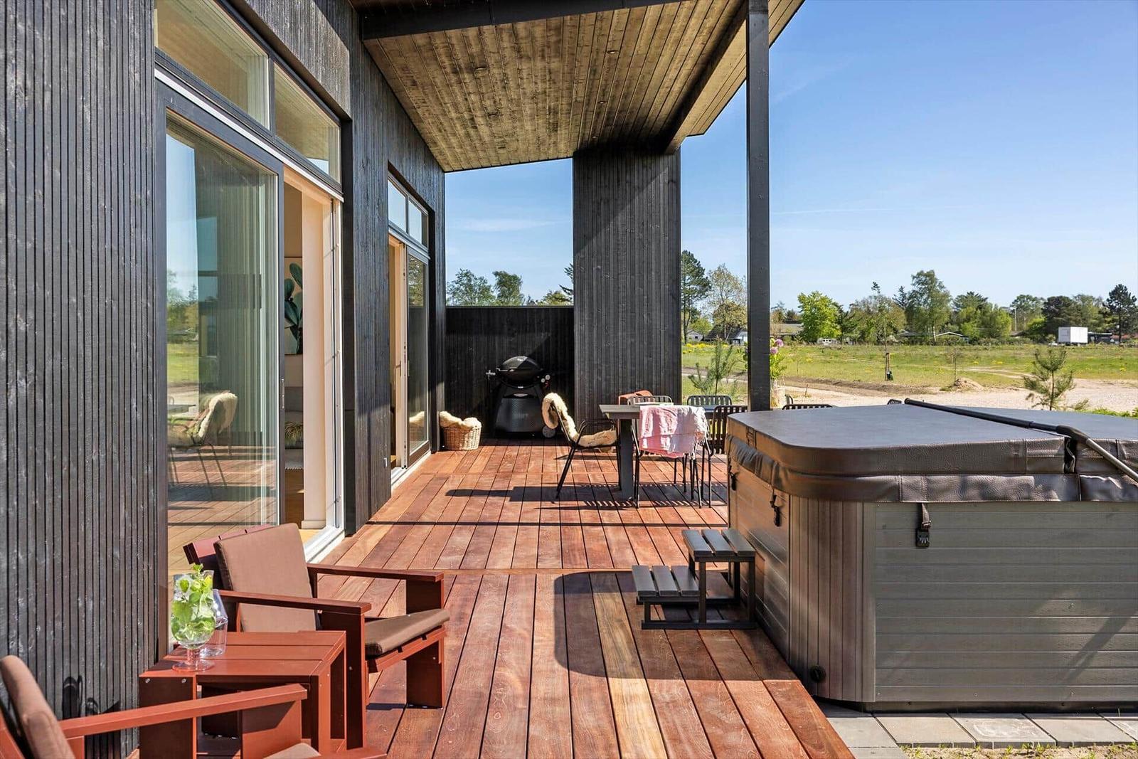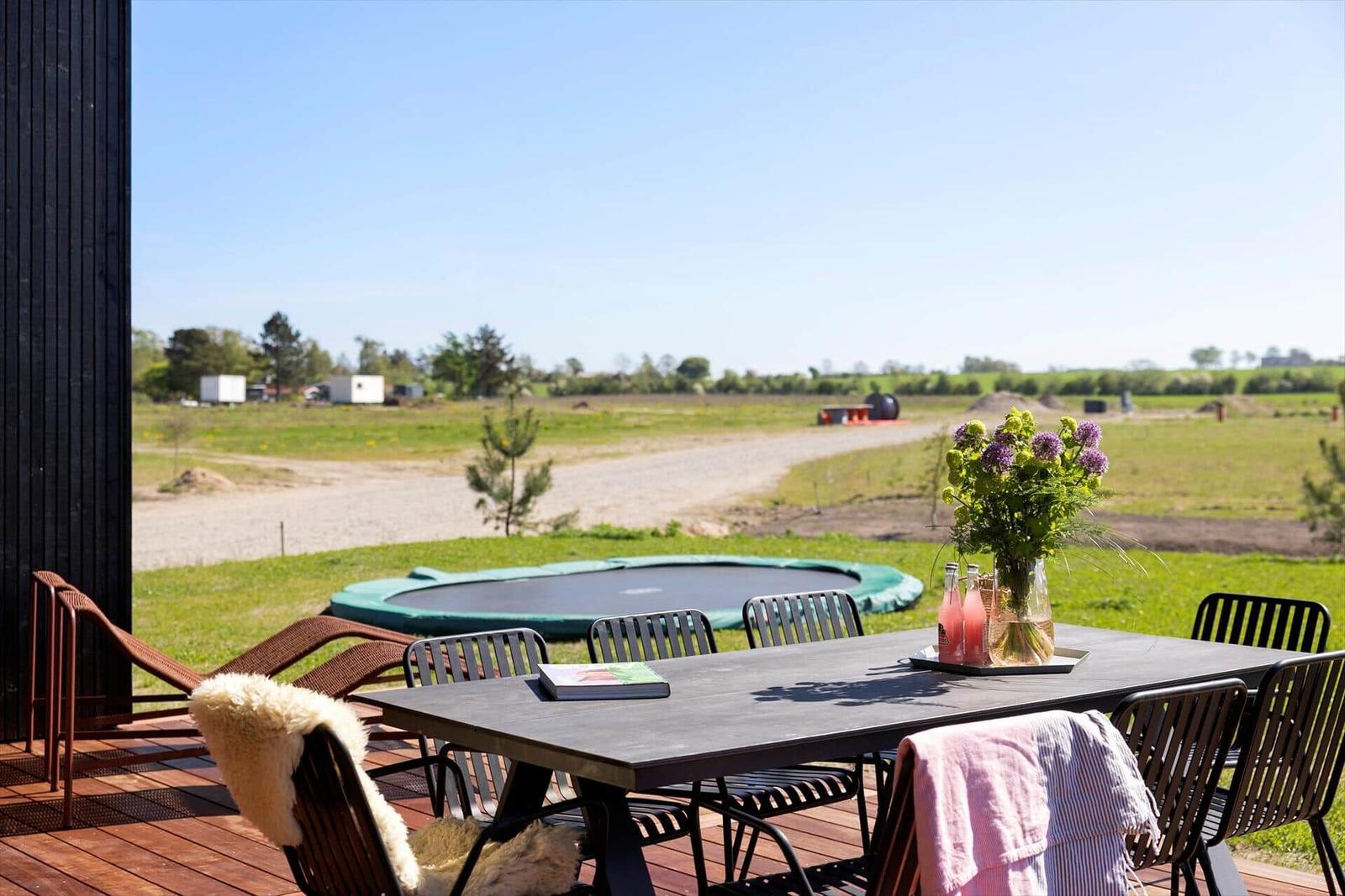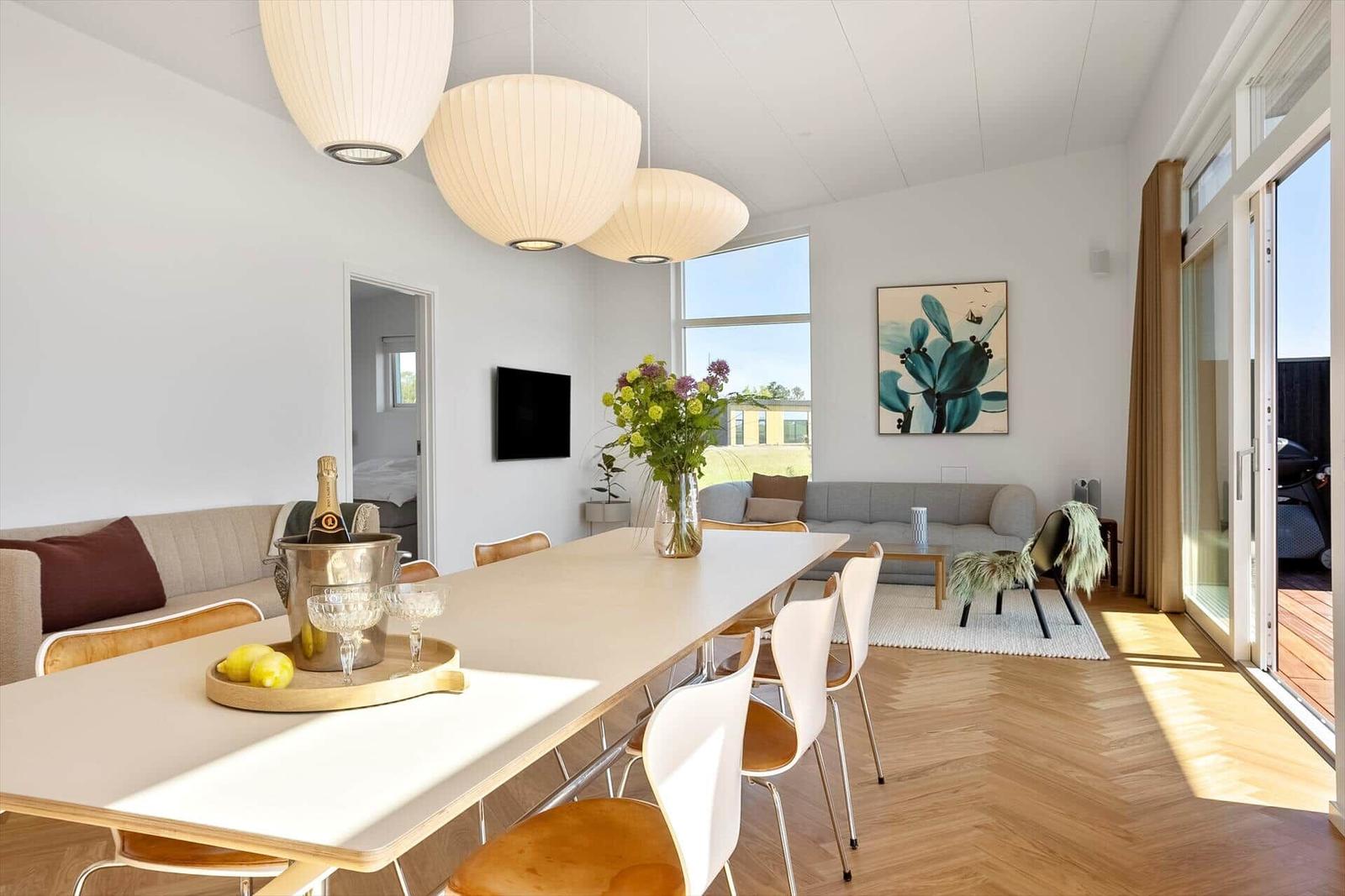 Die Ferienwohnung in Saksild Strand, Ostjütland, bietet Platz für bis zu 8 Erwachsene und überzeugt mit einer komfortablen Ausstattung auf 148 m². Die offene Küche ist modern eingerichtet und verfügt über einen Geschirrspüler, Backofen, Kühlschrank und Kaffeemaschine. Für Familien stehen ein Kinderhochstuhl und ein zusätzliches Kinderbett bereit. Das Wohnschlafzimmer lädt mit einem Smart-TV, der Chromecast zur Nutzung eigener Streaming-Dienste bietet, zum Entspannen ein. Die beiden Duschbäder sind praktisch und funktional. Weitere Annehmlichkeiten sind WLAN-Internet, Fußbodenheizung, Waschmaschine, Wäschetrockner und Bügeleisen. Im Außenbereich können sich die Gäste auf einem großen Grundstück von 922 m² mit Sandkasten und Trampolin erfreuen. Der nächste Strand ist nur 400 Meter entfernt, und Einkaufsmöglichkeiten sind in 1.400 Metern erreichbar. Ein idealer Rückzugsort für Familien und Freunde.