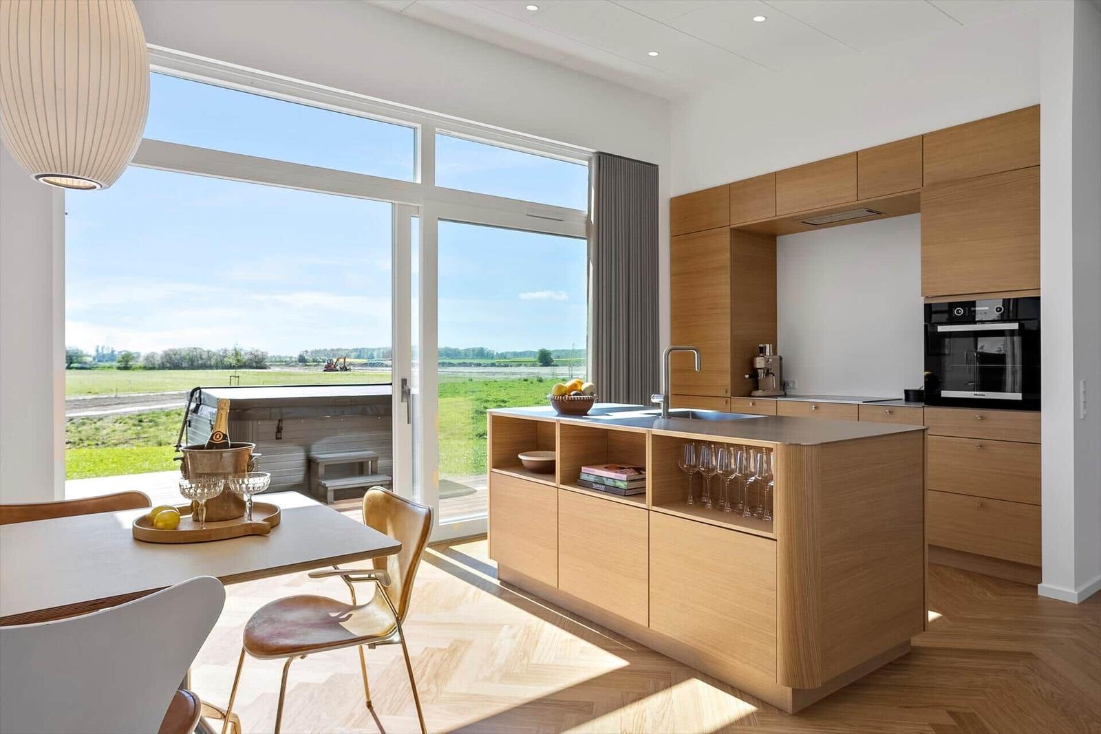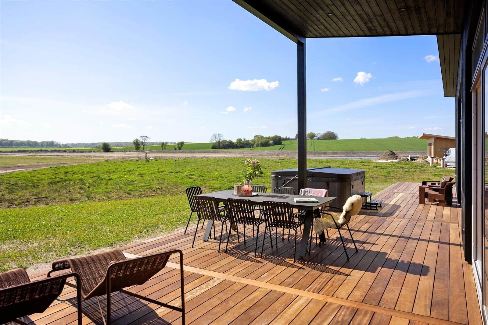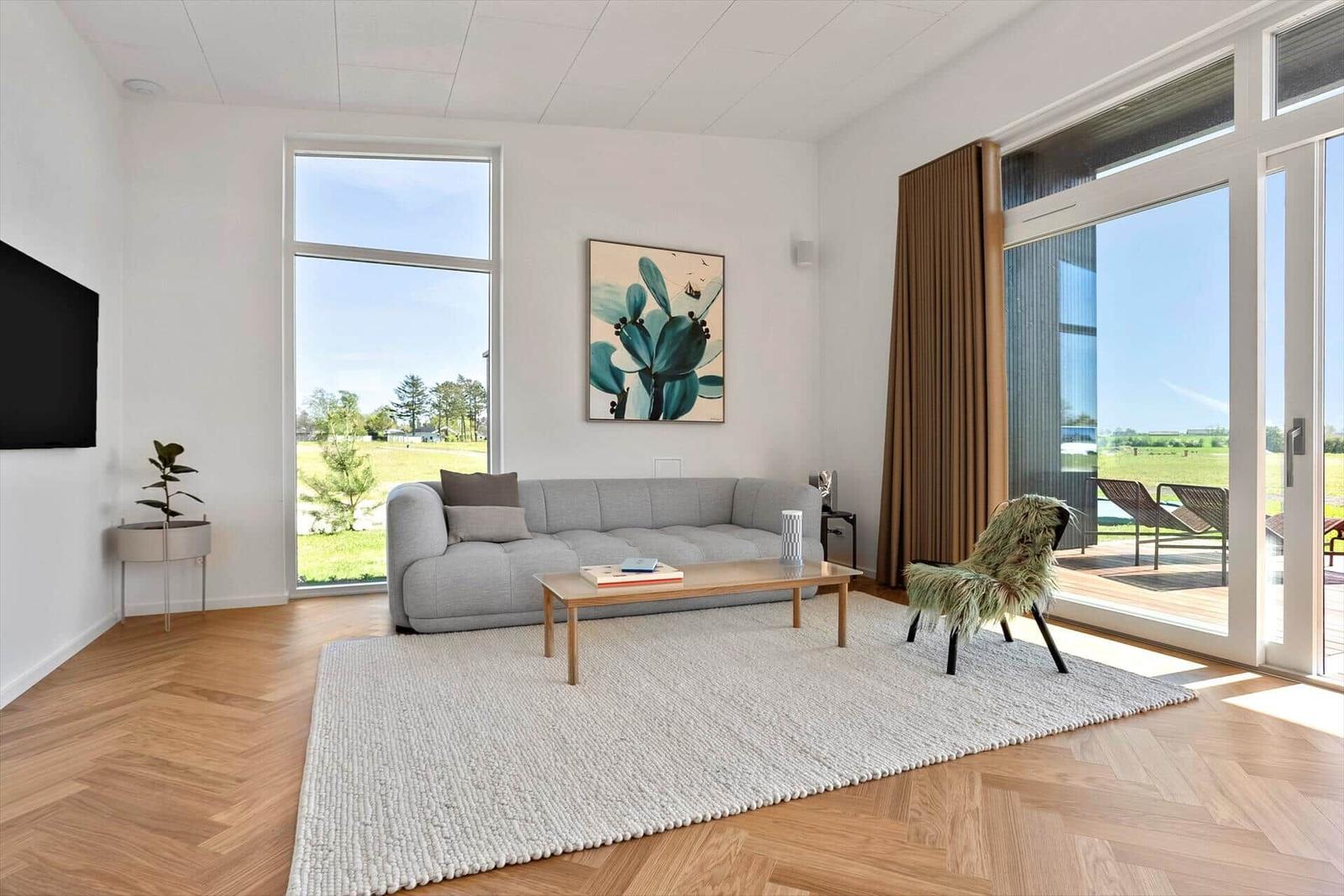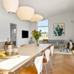 Die Ferienwohnung in Saksild Strand, Ostjütland, bietet Platz für bis zu 8 Erwachsene und überzeugt mit einer komfortablen Ausstattung auf 148 m². Die offene Küche ist modern eingerichtet und verfügt über einen Geschirrspüler, Backofen, Kühlschrank und Kaffeemaschine. Für Familien stehen ein Kinderhochstuhl und ein zusätzliches Kinderbett bereit. Das Wohnschlafzimmer lädt mit einem Smart-TV, der Chromecast zur Nutzung eigener Streaming-Dienste bietet, zum Entspannen ein. Die beiden Duschbäder sind praktisch und funktional. Weitere Annehmlichkeiten sind WLAN-Internet, Fußbodenheizung, Waschmaschine, Wäschetrockner und Bügeleisen. Im Außenbereich können sich die Gäste auf einem großen Grundstück von 922 m² mit Sandkasten und Trampolin erfreuen. Der nächste Strand ist nur 400 Meter entfernt, und Einkaufsmöglichkeiten sind in 1.400 Metern erreichbar. Ein idealer Rückzugsort für Familien und Freunde.