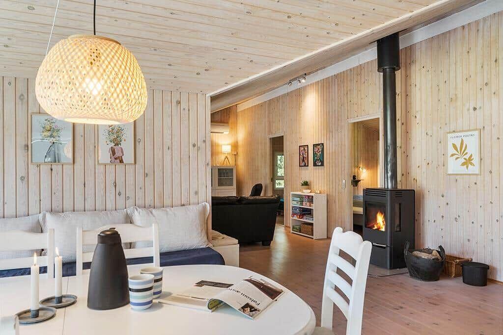 Die Ferienwohnung in Saltum, Nordjütland, bietet auf einer großzügigen Fläche von 110 m² Platz für bis zu 6 Erwachsene und 2 Kinder. Sie besticht durch ihre gemütliche Einrichtung, die mit einem einladenden Kamin und modernen Annehmlichkeiten ausgestattet ist. Die offene Küche verfügt über einen Elektro-/Gasherd, Kühlschrank, Geschirrspüler, Mikrowelle und eine Kaffeemaschine, was das Kochen zum Vergnügen macht. Für Familien ist ein Kinderhochstuhl und eine Spielekonsole vorhanden. Das Badezimmer ist mit einer Dusche ausgestattet, während die technischen Annehmlichkeiten wie WLAN, Smart-TV und TV für Unterhaltung sorgen. Waschmaschine, Wäschetrockner und Bügeleisen sorgen für zusätzlichen Komfort. Das energieeffiziente Heizen sorgt das ganze Jahr über für angenehme Temperaturen. Nur 1.850 Meter bis zum nächsten Strand und 2.900 Meter bis zur Einkaufsmöglichkeit runden das Angebot ab.