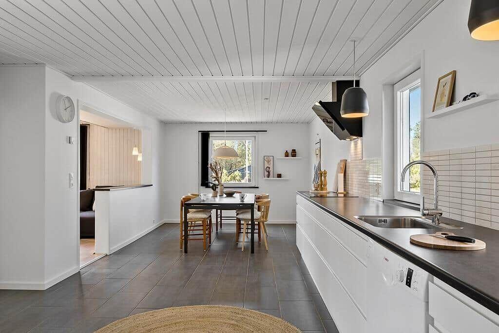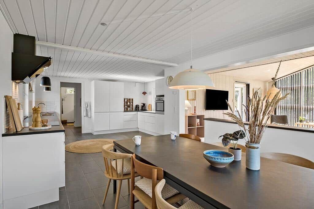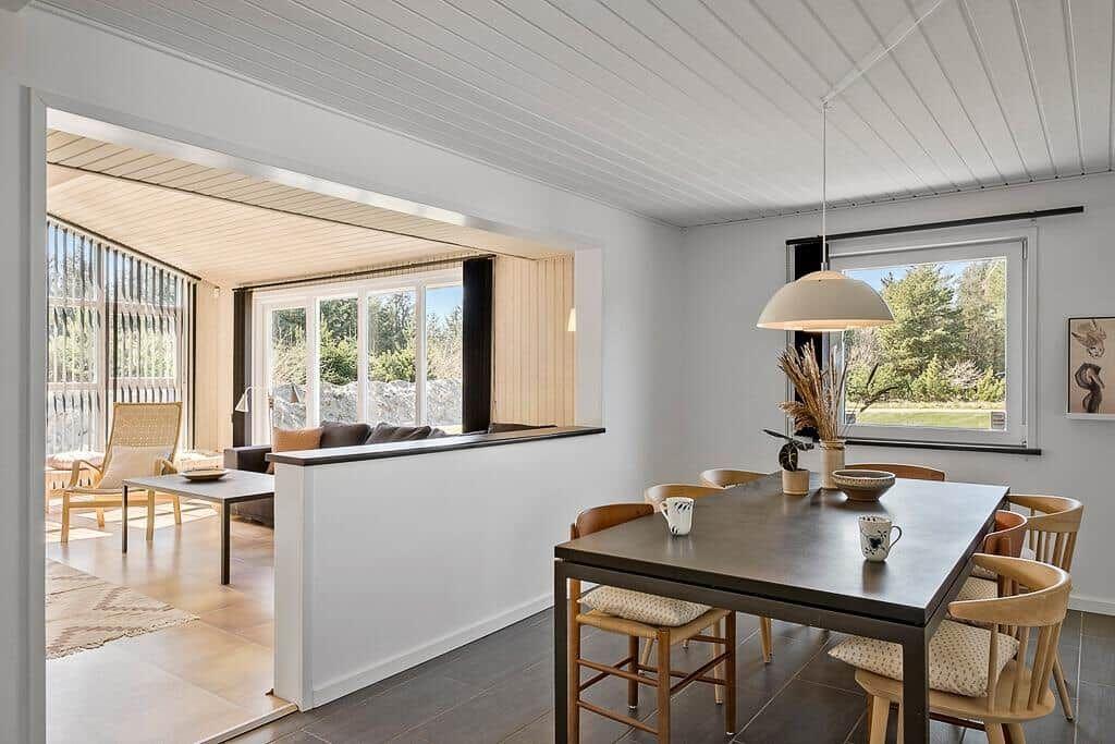 Die Ferienwohnung in Saltum, Nordjütland, bietet eine komfortable Fläche von 92 m² und Platz für bis zu 4 Erwachsene sowie 1 Haustier. Die Unterkunft besticht durch eine offene Küche, ausgestattet mit einem Geschirrspüler, Backofen, Mikrowelle, Kühlschrank und einer Kaffeemaschine. Ein einladendes Wohnschlafzimmer mit einem Smart-TV sorgt für entspannte Abende. Die beiden Schlafzimmer sind mit Doppelbetten eingerichtet und bieten erholsame Nächte. Das moderne Duschbad ist funktional gestaltet. Für zusätzlichen Komfort sorgen eine Waschmaschine, ein Wäschetrockner und Fußbodenheizung. Zum Wohlfühlen trägt das kostenlose WLAN bei. Die umweltfreundliche Heizung erfolgt über ein energieeffizientes Luft-zu-Wasser-System. In nur 1.350 Metern erreicht man den nächsten Strand, während Einkaufsmöglichkeiten 3.375 Meter entfernt sind. Mülltrennung ist ebenfalls gegeben, was zu einem nachhaltigen Aufenthalt beiträgt.