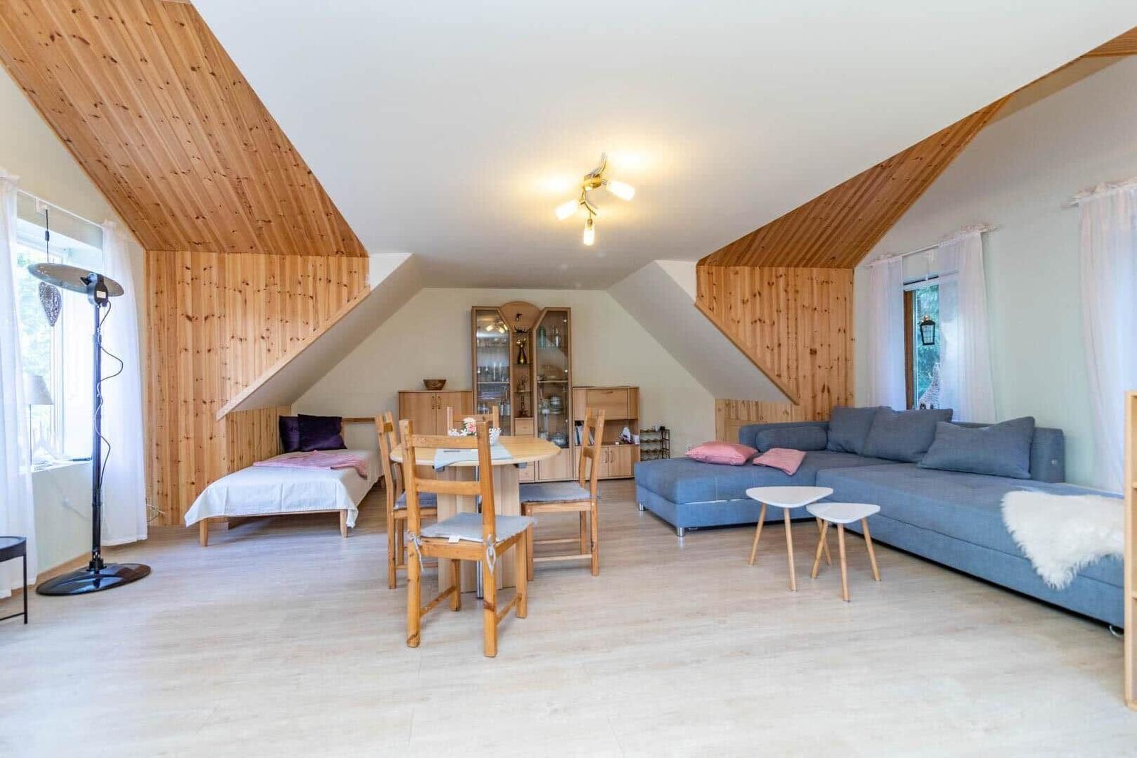Das Ferienhaus Gryssnäs bietet einen einladenden Außenbereich, der ideal für entspannte Aufenthalte ist. Gäste gelangen direkt von ihrem Wohnbereich auf die großzügige Terrasse mit Möbeln und Sonnenschirm, die zum Verweilen einlädt. Ein Grill steht zur Verfügung, um gesellige Abende unter freiem Himmel zu verbringen. Der Hof des Hauses beherbergt zudem eine Lagerfeuerstelle und ein kleines Außenhaus mit Küche, Bar und Sitzgelegenheiten, die gegen einen kleinen Obolus genutzt werden können. Der nahegelegene See Grysjön, etwa 850 m entfernt, ermöglicht Bootsfahrten mit dem im Mietpreis enthaltenen Ruderboot. In der Umgebung können Fahrräder genutzt werden, während ein kinderfreundlicher Badeplatz in etwa 2,7 km Entfernung auf Familien wartet. Haustiere sind auf Anfrage erlaubt, und die An- und Abreise erfolgt samstags.
