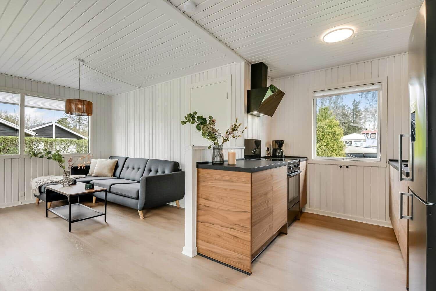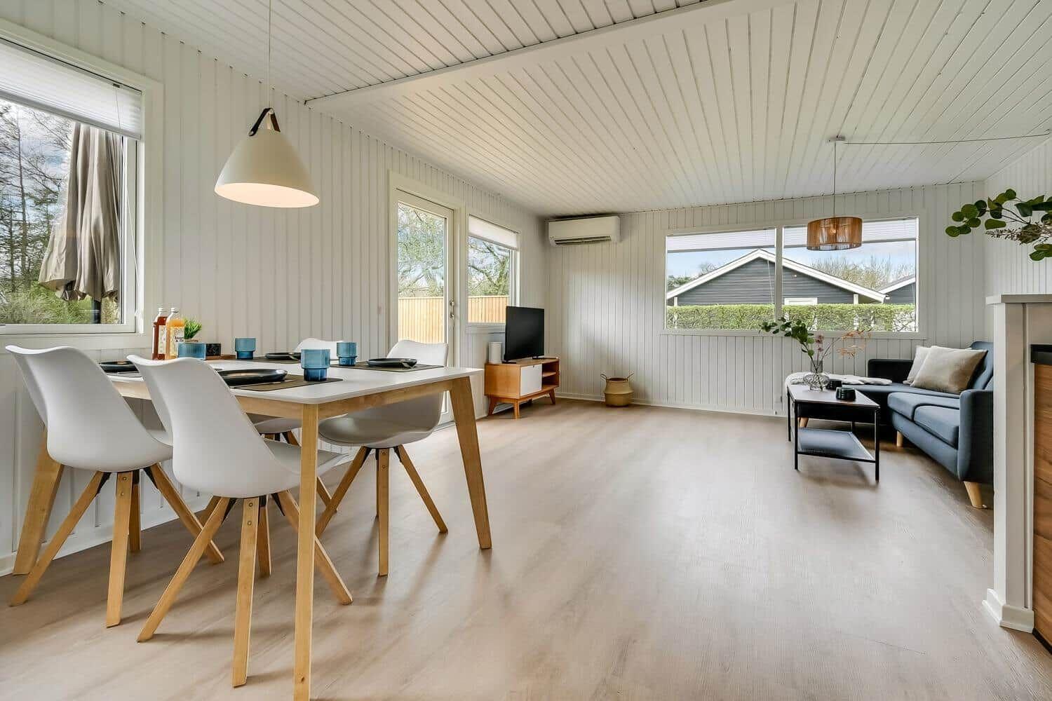Die Ferienwohnung in Skaven Strand, Westjütland, bietet eine gemütliche und moderne Unterkunft für bis zu 4 Erwachsene und 2 Haustiere. Auf 55 m² erwartet die Gäste eine durchdachte Raumaufteilung, die Komfort und Funktionalität vereint. Die offene Küche ist mit einem Kühlschrank, einer Kaffeemaschine und einem Wasserkocher ausgestattet, ideal für die Zubereitung köstlicher Mahlzeiten. Der Wohnbereich verfügt über einen Smart-TV, der die Nutzung eigener TV- und Streamingdienste über Chromecast ermöglicht. Zwei Schlafzimmer, eines mit einem Doppelbett und das andere mit zwei Einzelbetten, sorgen für erholsamen Schlaf, während ein modernes Duschbad den täglichen Bedürfnissen gerecht wird. Dank WLAN steht jederzeit eine Internetverbindung zur Verfügung. Nachhaltigkeit wird durch energieeffizientes Heizen und Mülltrennung großgeschrieben. In der Nähe befindet sich der Strand, nur 400 Meter entfernt, und die nächste Einkaufsmöglichkeit ist 6.000 Meter entfernt.