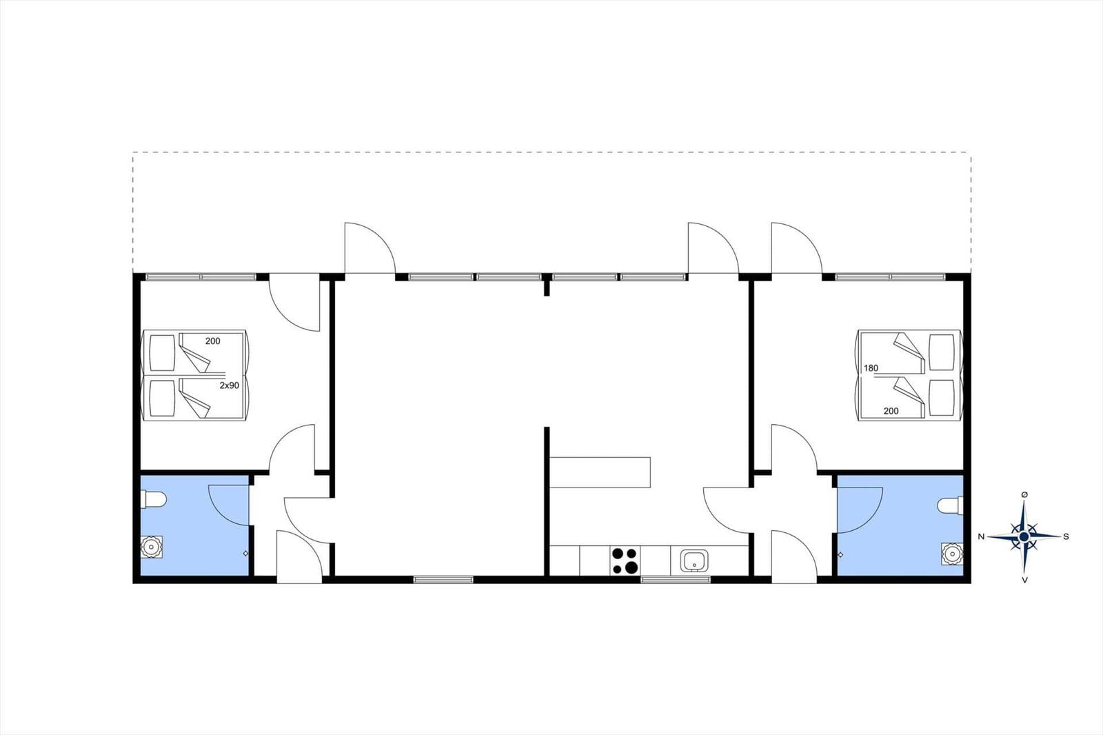 Die große Ferienwohnung auf Holmsland Klit überzeugt mit moderner Einrichtung und einer optimalen Raumaufteilung, ideal für zwei befreundete Paare. Die beiden Schlafzimmer, die jeweils über ein eigenes Badezimmer verfügen, sind an den Enden der Wohnung positioniert. Der offene Wohnbereich geht fließend in die gut ausgestattete Küche über, in der die Gäste beim Kochen stets den Blick auf die reizvolle Natur genießen können. Unterhaltung bieten ein Flachbild-TV mit Parabolempfang und Smart-TV-Funktion. Angenehme Temperaturen werden durch zwei energiesparende Wärmepumpen gewährleistet, die auch eine Kühlfunktion bieten. Ein kostenloser Verleih von Kinderreisebetten und Hochstühlen steht zur Verfügung, und gegen Gebühr kann ein Hundebett entliehen werden. Eine Lademöglichkeit für E-Autos ist vorhanden, was den Aufenthalt zusätzlich komfortabel gestaltet.