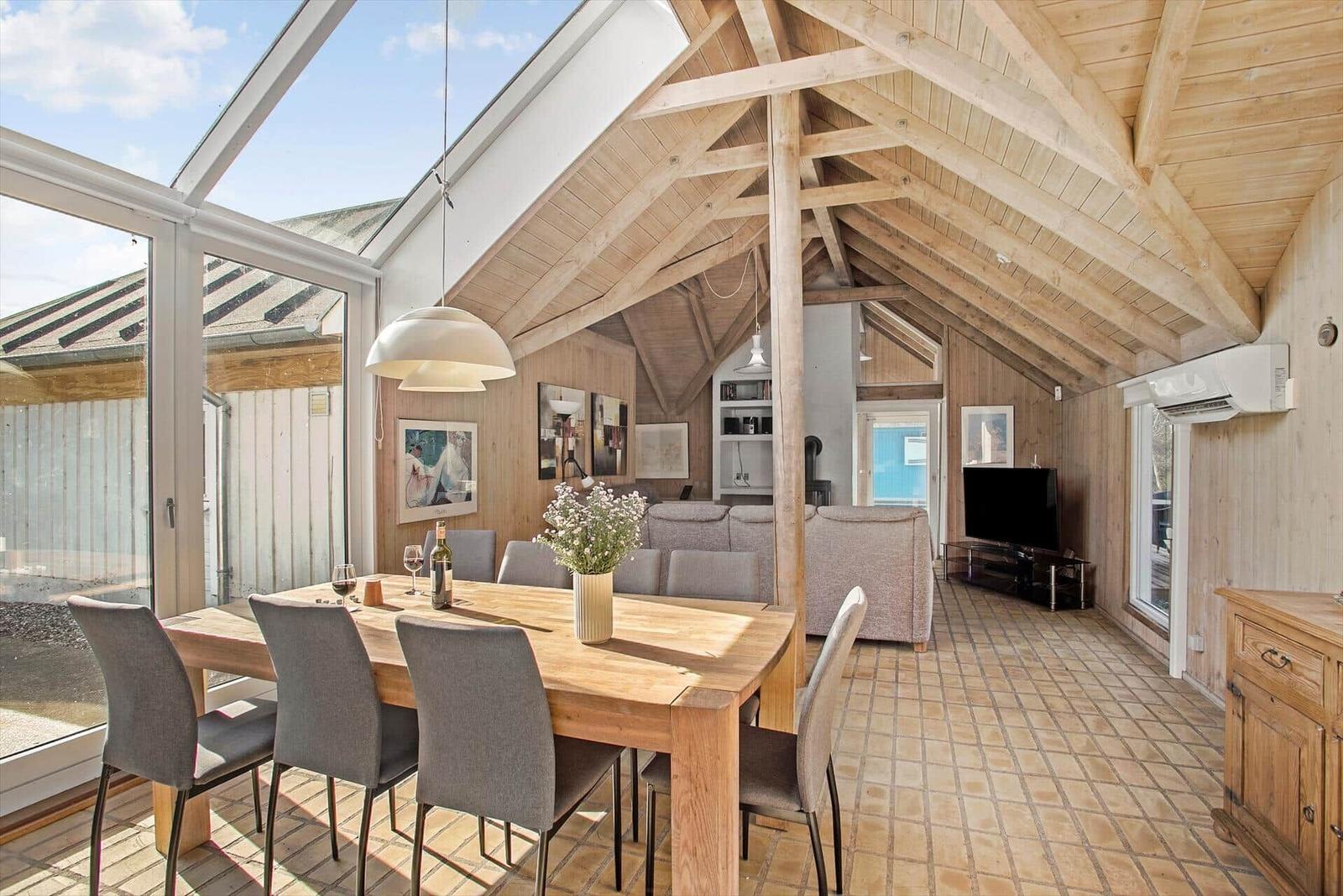 Die Ferienwohnung in Slettestrand, Nordjütland, bietet auf großzügigen 171 m² Platz für bis zu 8 Erwachsene und 2 Haustiere. Die harmonisch gestalteten Räume umfassen 4 Schlafzimmer, darunter 2 Doppelbetten und 4 Einzelbetten, sowie ein komfortables Wohnschlafzimmer. Die zwei modernen Badezimmer sind mit Duschbädern ausgestattet.