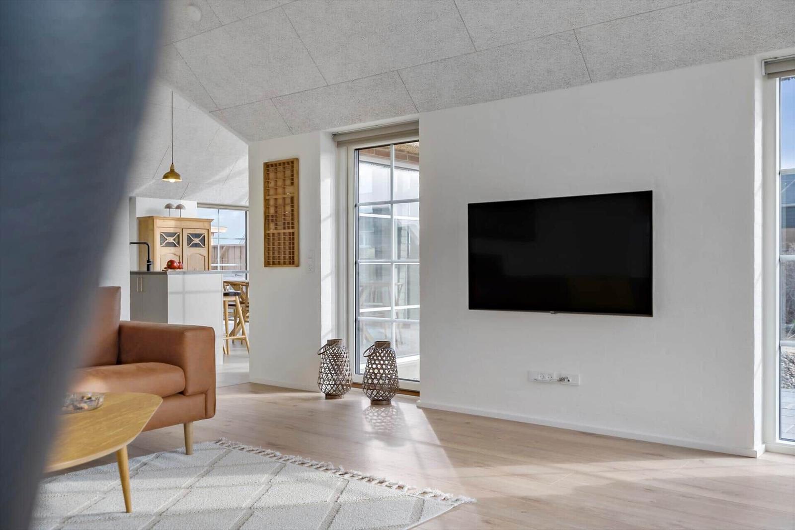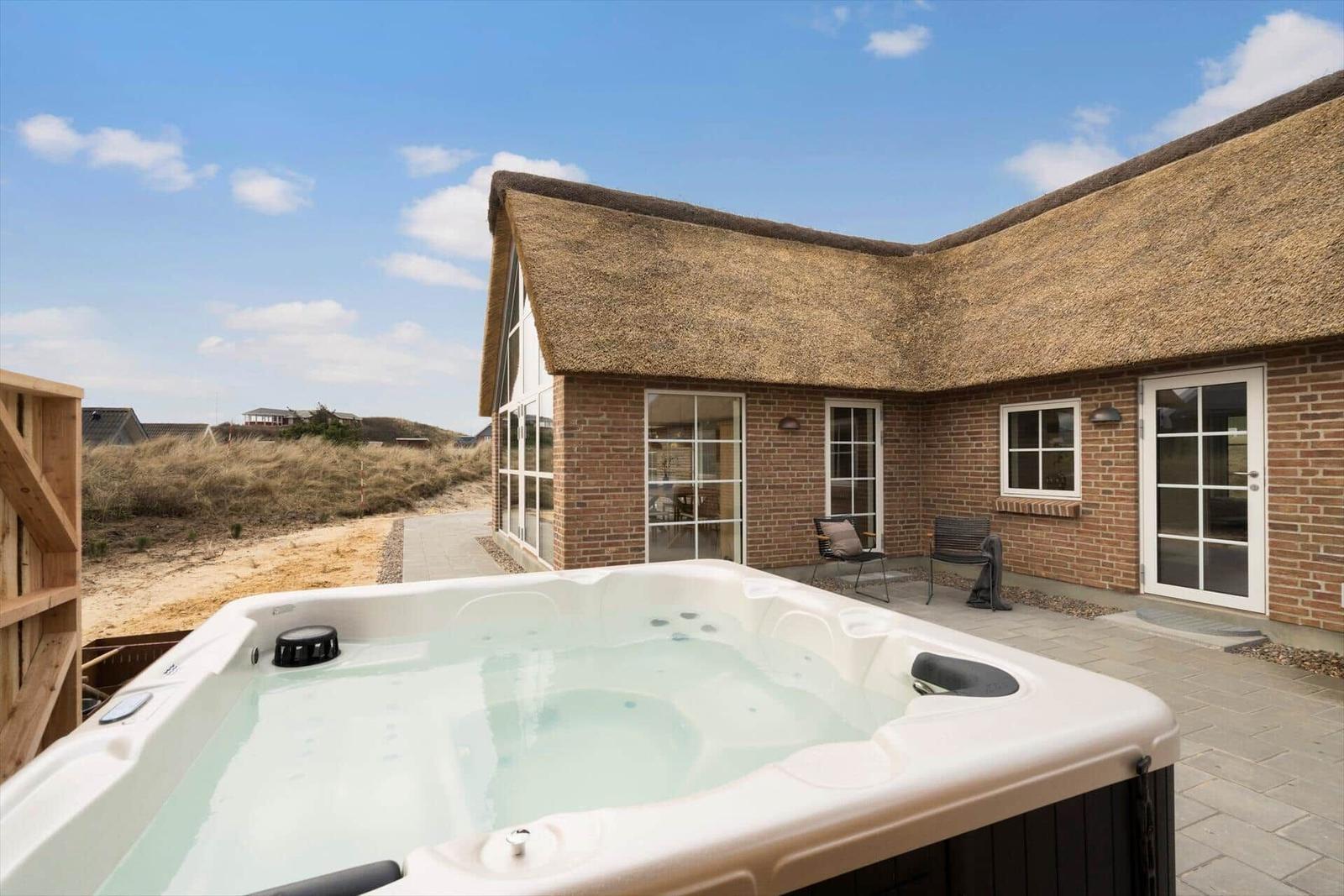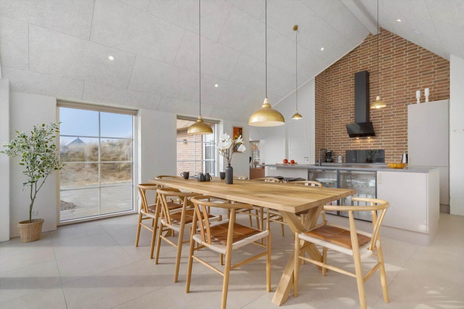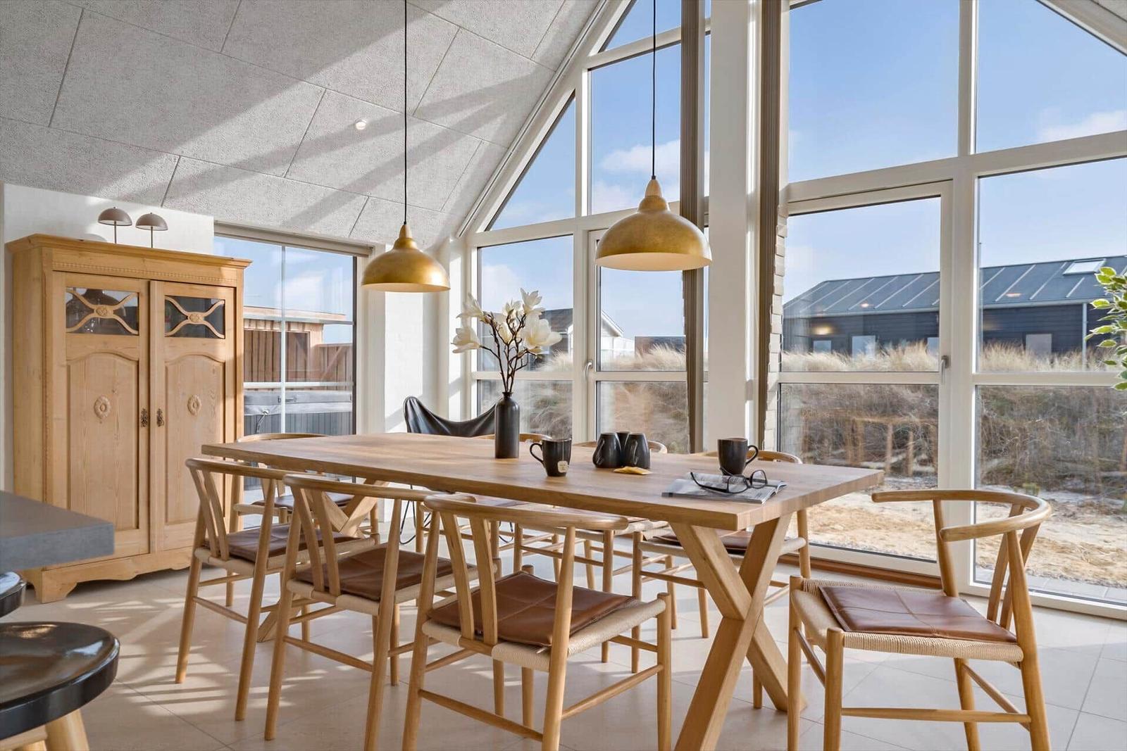 Die gut ausgestattete Küche beinhaltet einen Geschirrspüler, Elektro-/Gasherd, Backofen, Kühlschrank und eine Kaffeemaschine, sodass die Zubereitung von Mahlzeiten mühelos gelingt. Ergänzend stehen WLAN, TV und ein Wäschetrockner zur Verfügung. Fußbodenheizung und eine effektive Hausisolierung sorgen für ein angenehmes Raumklima das ganze Jahr über. Der Strand ist nur 400 Meter entfernt und Einkaufsmöglichkeiten sind in 600 Metern erreichbar.