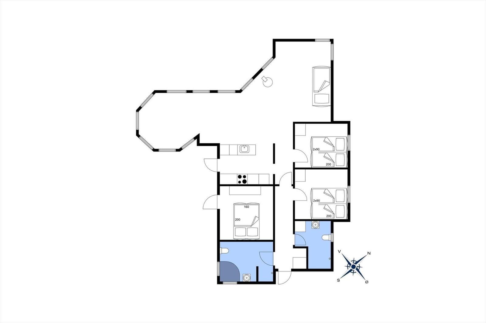 Die Ferienwohnung bietet ein großzügiges, helles Wohnambiente mit offenen Wohn- und Küchenbereichen, ideal für gemeinsame Familienzeiten. Ausgestattet mit modernem Komfort verfügt die Küche über einen Geschirrspüler, Elektro-/Gasherd, Backofen, Mikrowelle, Kühlschrank und Kaffeemaschine. Die komfortable Sofaecke im Wohnzimmer lädt zum Entspannen und Filmgucken am Smart-TV ein, während eine Fußbodenheizung und ein Holzofen für wohlige Wärme sorgen. Die Unterkunft bietet drei Schlafzimmer mit zwei Doppelbetten, vier Einzelbetten und ein Kinderbett sowie zwei Duschbäder, die für ausreichend Privatsphäre sorgen. Praktische Annehmlichkeiten wie Waschmaschine, Wäschetrockner und kostenloses WLAN ergänzen das Angebot. Die Holzterrasse und der große Garten bieten viel Platz für entspannende Stunden im Freien – nur 400 Meter vom kinderfreundlichen Strand entfernt.