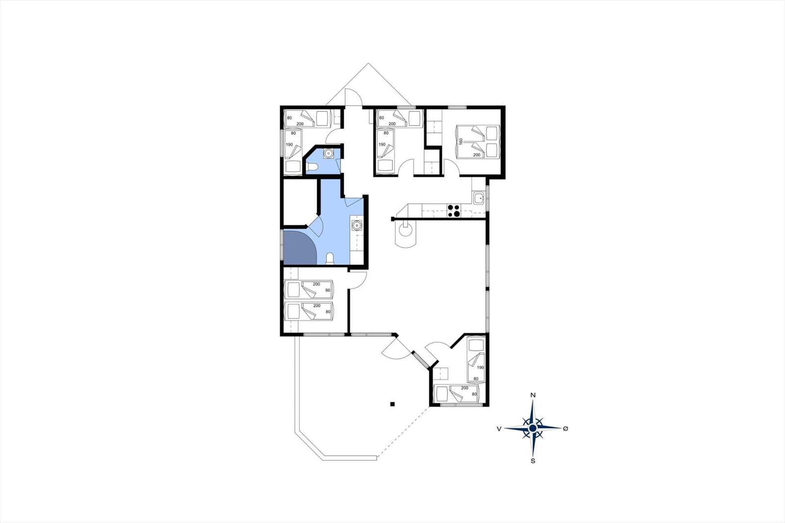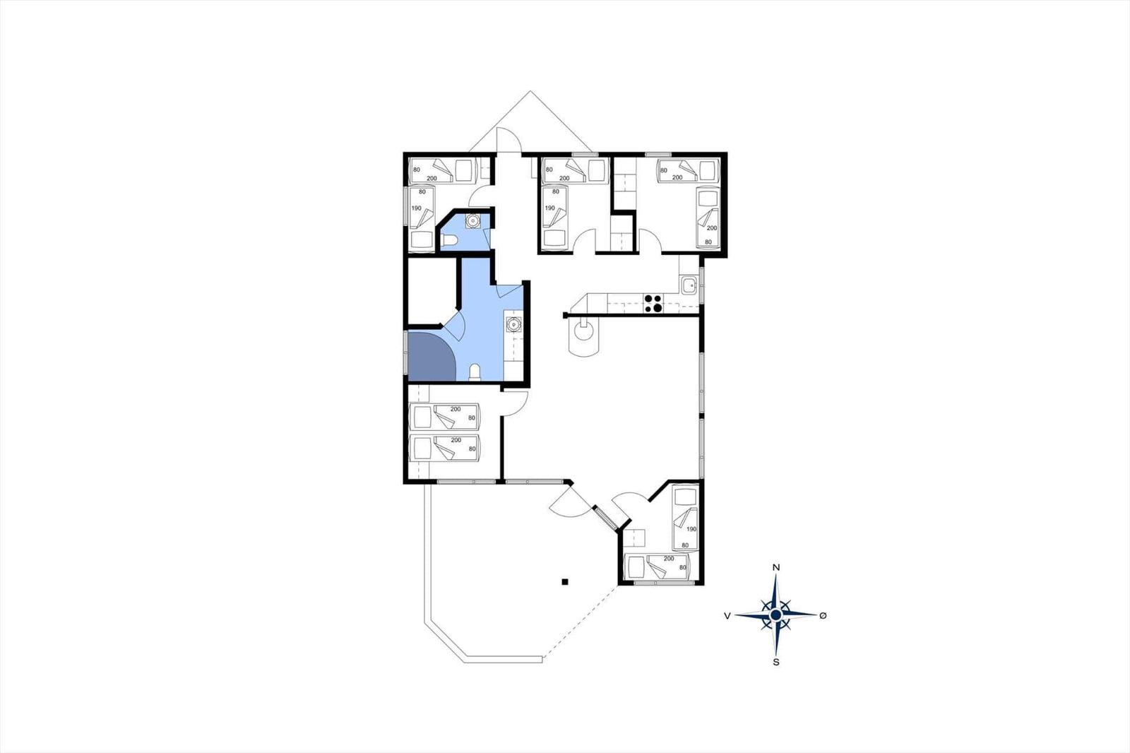 Die Ferienwohnung bietet eine moderne Ausstattung in ruhiger Lage, nur 100 Meter vom Råbylille Strand entfernt. Der offene Wohnbereich ist hell und freundlich gestaltet, ausgestattet mit SAT-TV, einem Kaminofen und einem Essbereich mit Zugang zur teilüberdachten Terrasse. Die offene Küche überzeugt mit einem Elektroherd, Backofen, Mikrowelle, Geschirrspüler sowie einem Kühlschrank mit Gefrierfach. Fünf Schlafzimmer, darunter zwei mit Doppelbetten, bieten Platz für bis zu zwölf Personen. Das Badezimmer verfügt über eine Duschkabine, Fußbodenheizung und eine Waschmaschine sowie einen Wäschetrockner. Für Familien stehen ein Kinderbett, Hochstuhl und Wickeltisch zur Verfügung. Im Außenbereich lädt das große Grundstück mit Rasenfläche, Gartenmöbeln und einem Spielplatz zum Verweilen und Entspannen ein. Kostenloses WLAN und die Nichtraucher-Politik runden das Angebot ab.