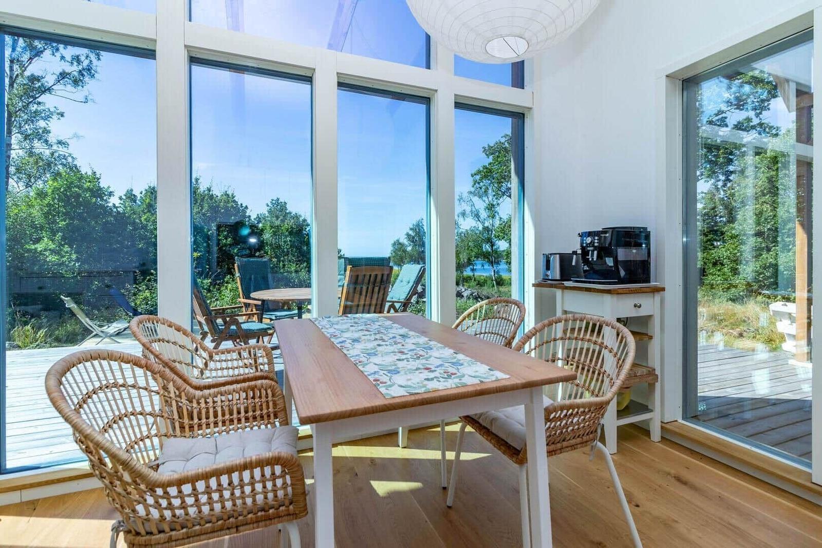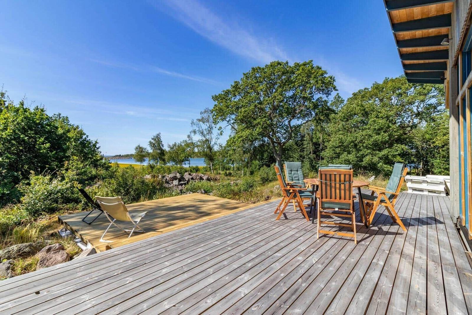 Das Ferienhaus Ekenabb bietet einen einladenden Außenbereich, der ideal für entspannte Stunden im Freien ist. Die teils überdachte Terrasse ermöglicht einen schönen Blick auf das Meer und ist mit Terrassenmöbeln, Liegestühlen und einem Grill ausgestattet – perfekt für gemütliche Abende unter freiem Himmel. Nur 150 m entfernt lädt ein kleiner Badeplatz an der Ostsee zum Schwimmen und Entspannen ein. Zudem gibt es in der Nähe einen öffentlichen Badeplatz mit Spielplatz, etwa 1,4 km vom Haus entfernt. Für Freizeitaktivitäten stehen die umliegenden Inseln ideal für Spaziergänge, Radtouren sowie Bootsausflüge zur Verfügung. Das charmante Haus ist rauchfrei, haustierfrei und bietet eine ruhige Auszeit auf der idyllischen Insel Sturkö. An- und Abreise sind samstags, die Endreinigung ist inklusive.