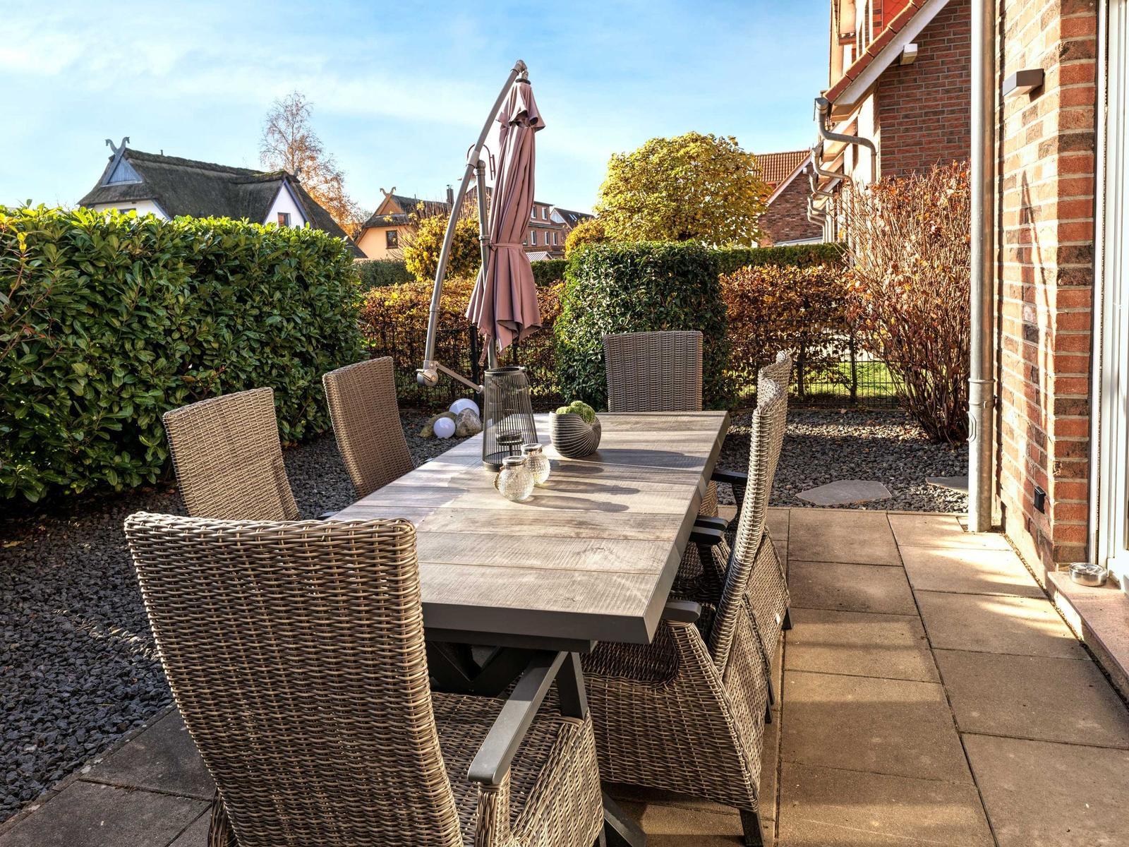 Die Ferienwohnung bietet eine einladende und komfortable Atmosphäre mit insgesamt vier Schlafzimmern, darunter ein Doppelbett und vier Einzelbetten. Die offene Küche ist mit modernen Annehmlichkeiten wie einem Geschirrspüler, Elektro-/Gasherd, Backofen, Mikrowelle, Kühlschrank sowie einer Kaffeemaschine und einem Toaster ausgestattet. Sie ist ideal für Allergiker geeignet und verfügt über Gäste-WC und ein helles Badezimmer mit Fenster. Der Wohnbereich ist mit einem gemütlichen Sofa, Sessel und Kamin ausgestattet, und eine HiFi-Anlage sowie ein TV sorgen für Unterhaltung. WLAN ist ebenfalls verfügbar. Ein Parkplatz steht zur Verfügung. Für Familien gibt es einen Kinderhochstuhl, Brettspiele und einen Wäscheständer. Das Badezimmer bietet einen Spiegel und einen Kosmetikspiegel, während der Haartrockner für zusätzlichen Komfort sorgt. Genießen Sie entspannte Stunden auf der Terrasse mit Sonnenschirm.