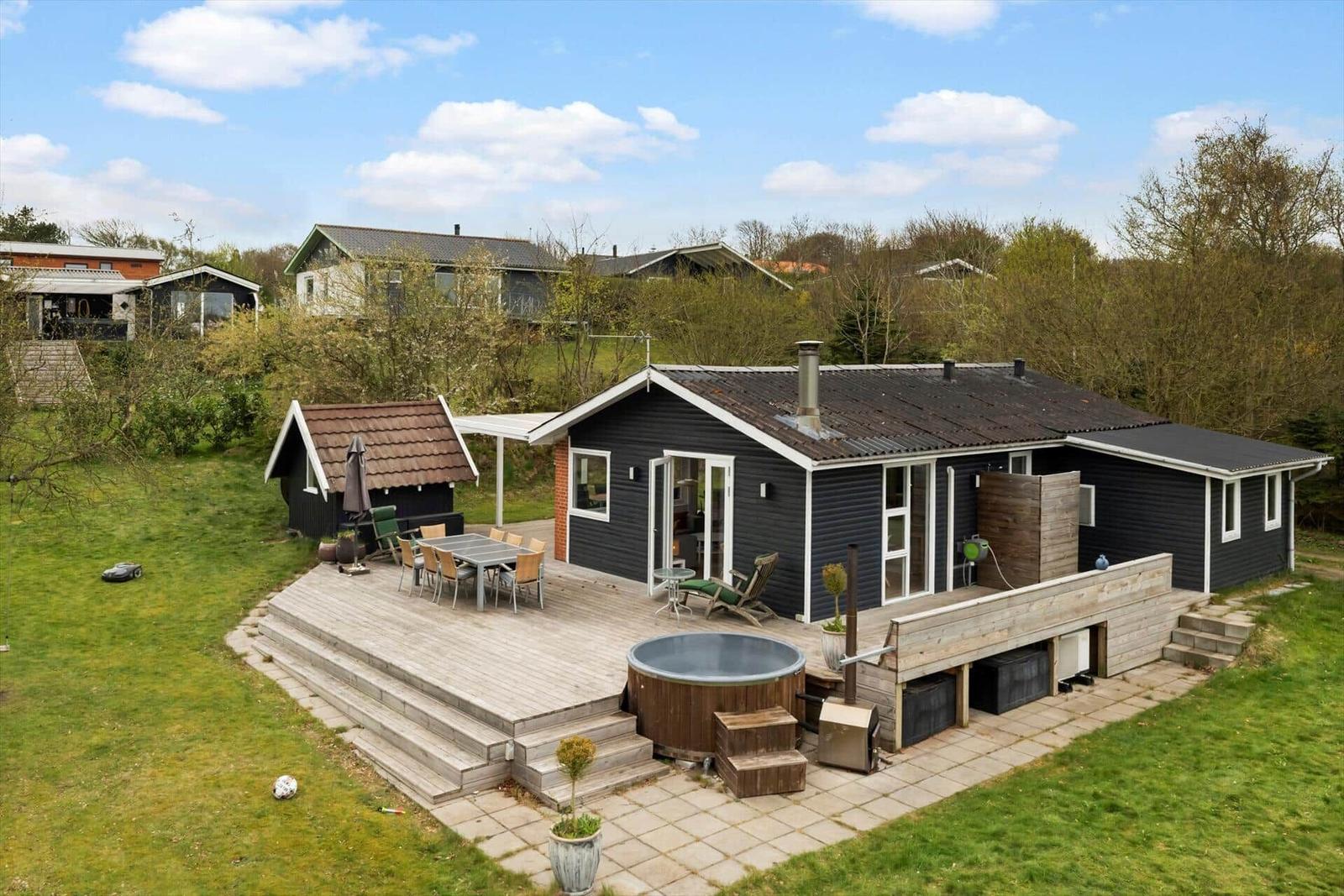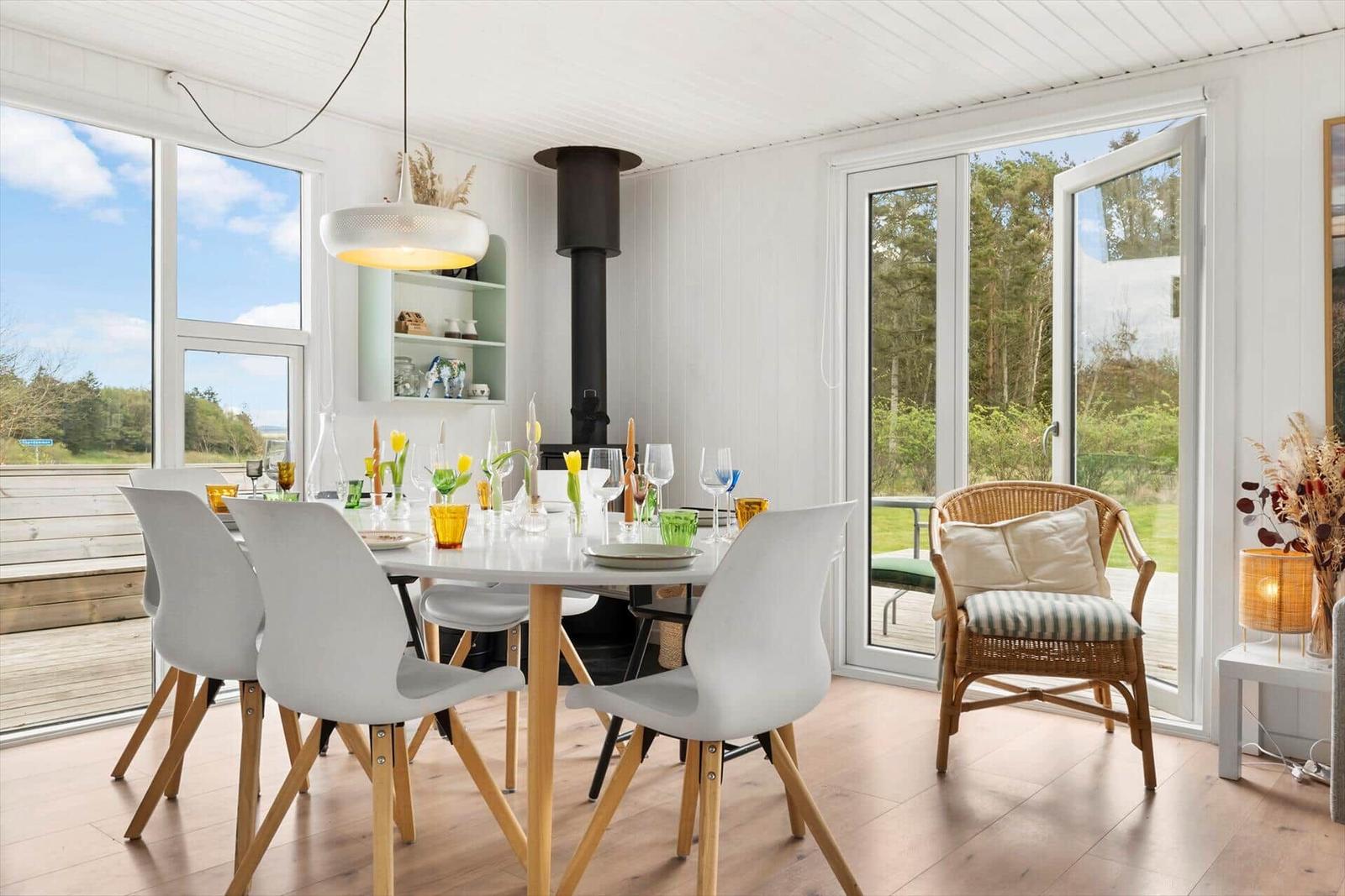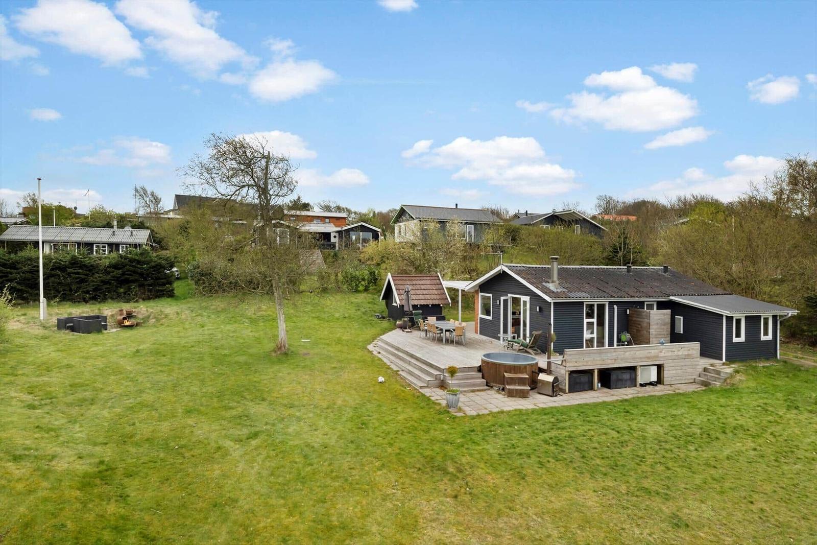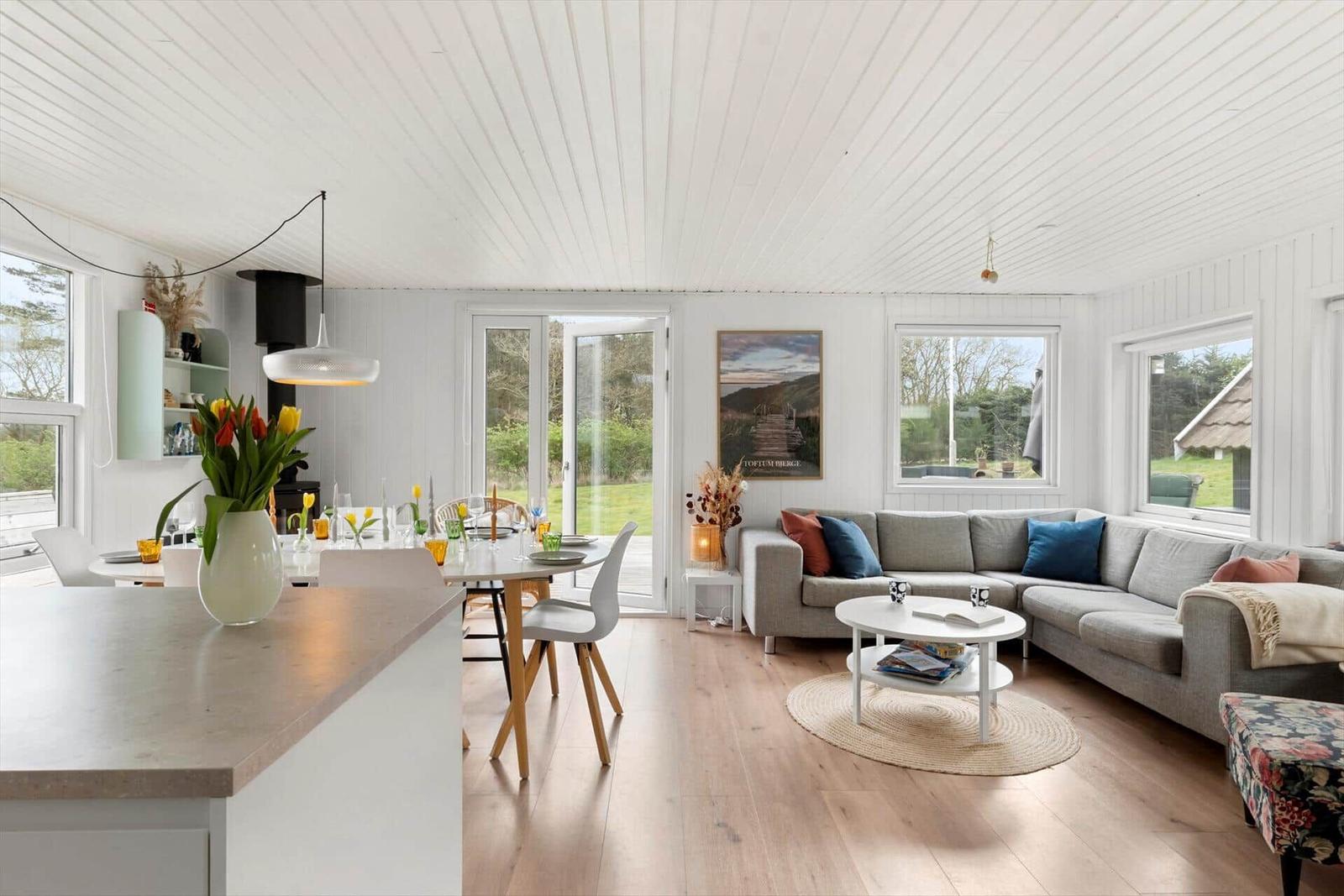 Die Ferienwohnung in Toftum Bjerge am Limfjord bietet ein modernes und gemütliches Ambiente für bis zu 6 Erwachsene, 2 Kinder und 1 Haustier. Auf 70 m² samt 9 m² großem Annex befinden sich zwei Schlafzimmer mit 2 Doppelbetten und 2 Einzelbetten sowie ein Wohnschlafzimmer mit einer komfortablen Schlafcouch. Das Badezimmer ist mit einem Duschbad ausgestattet. Die hochwertig eingerichtete Küchenzeile verfügt über einen Elektro-/Gasherd, Backofen, Mikrowelle, Kühlschrank, Geschirrspüler, und eine Kaffeemaschine. Eine Waschmaschine und Fußbodenheizung sorgen für zusätzlichen Komfort. Für Unterhaltung ist ein Smart-TV vorhanden, und schnelles WLAN ermöglicht eine angenehme Online-Nutzung. Die Unterkunft befindet sich auf einem großzügigen 1.264 m² großen Grundstück, nur 600 Meter vom Strand und 1.000 Meter von Einkaufsmöglichkeiten entfernt, und bietet energieeffizientes Heizen für gemütliche Aufenthalte das ganze Jahr über.
