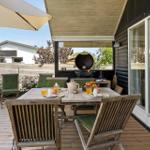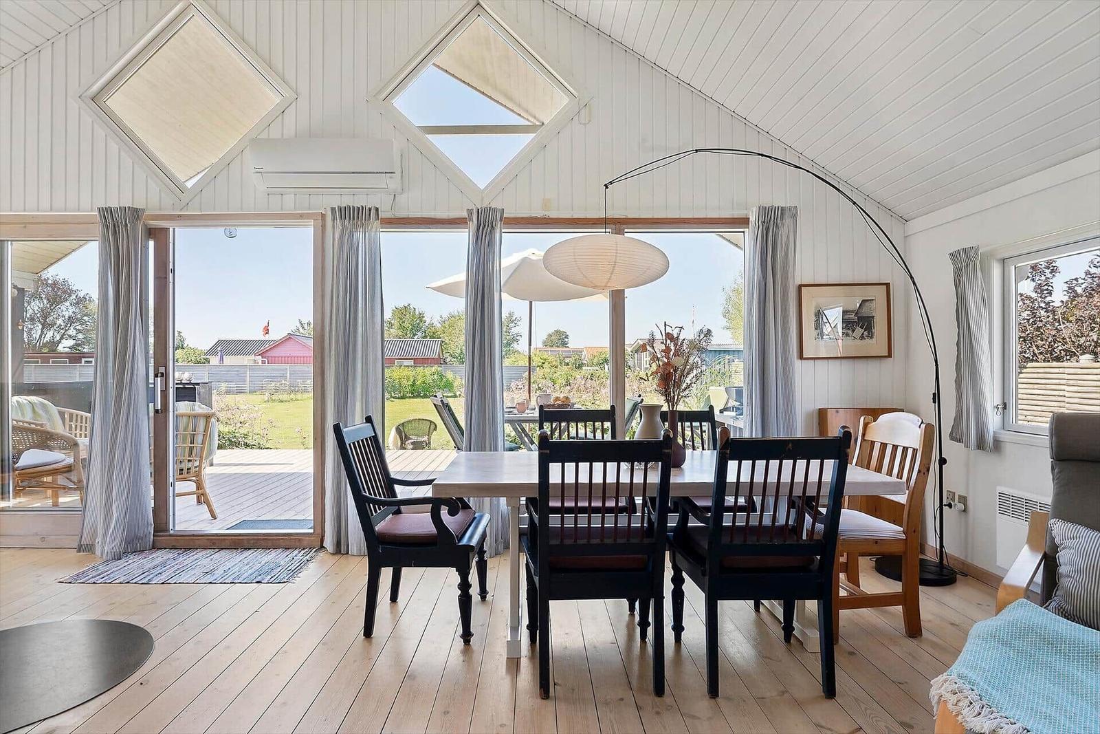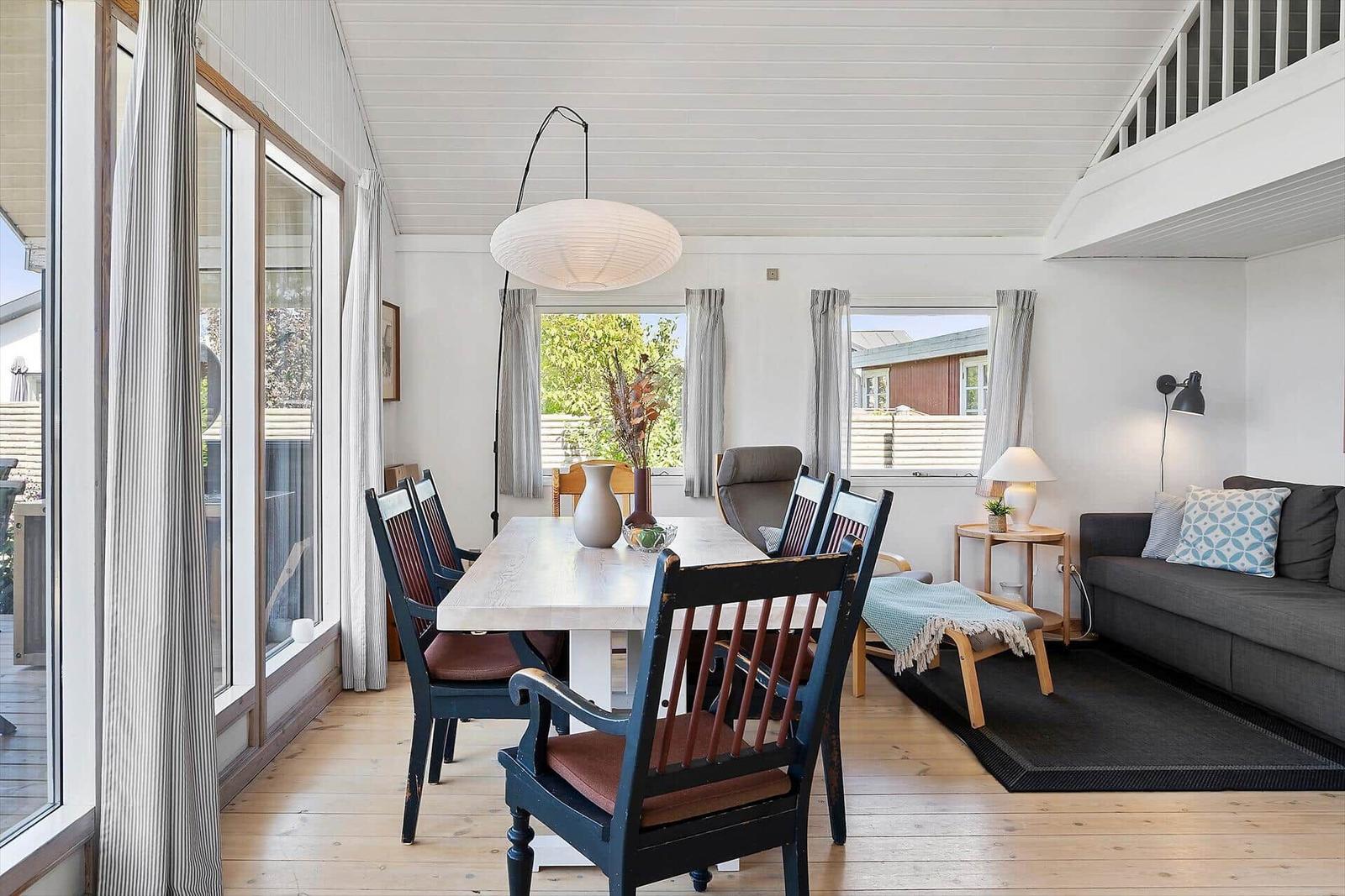 Die Ferienwohnung in Tørresø auf Fünen bietet Platz für bis zu 8 Erwachsene und überzeugt durch eine attraktive Ausstattung. Auf 103 m² finden sich drei Schlafzimmer, darunter zwei Doppelbetten und zwei Einzelbetten, sowie ein Wohnschlafzimmer mit zwei Schlafsofas. Die offene Küche ist modern und verfügt über einen Elektro-/Gasherd, einen Geschirrspüler, Backofen, Mikrowelle, Kühlschrank und eine Kaffeemaschine, um den Aufenthalt so angenehm wie möglich zu gestalten. Die beiden Badezimmer sind komfortabel mit Duschbad ausgestattet. Besondere Merkmale wie der Kamin und die Fußbodenheizung sorgen für ein gemütliches Ambiente. Im Wohnbereich steht ein TV und das WLAN ermöglicht jederzeit internetzugang. Zudem bieten eine Waschmaschine und ein Kinderhochstuhl zusätzlichen Komfort. Die ruhige Lage, nur 50 Meter vom Strand entfernt, macht diese Unterkunft ideal für erholsame Ferien.
