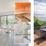 Die Ferienwohnung bietet eine großzügige Raumgestaltung mit fünf einladenden Schlafzimmern, ausgestattet mit vier Doppelbetten und zwei Einzelbetten, ideal für erholsame Nächte. Drei moderne Badezimmer sorgen für zusätzlichen Komfort, darunter eine bodengleiche Dusche und eine separate Badewanne.
