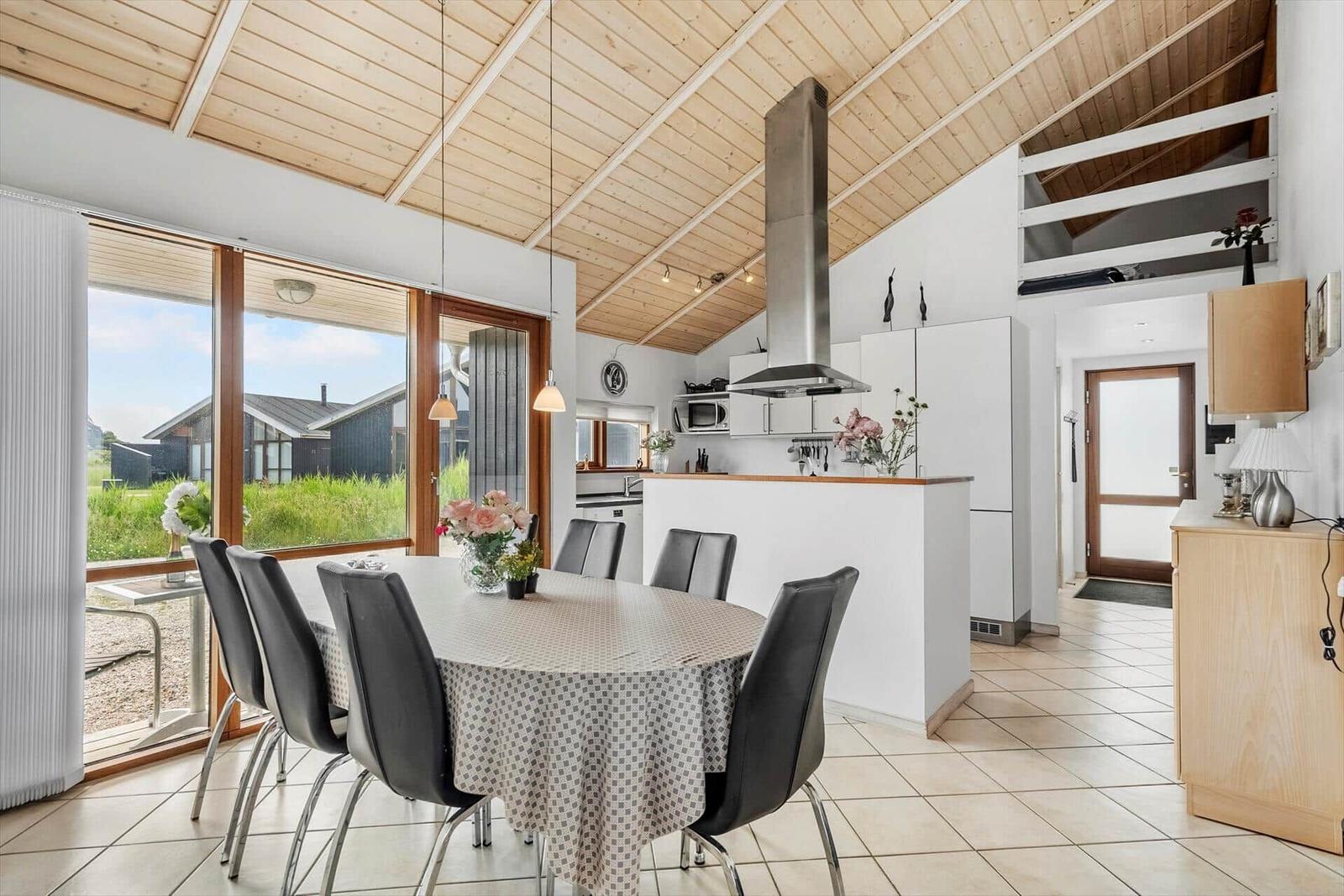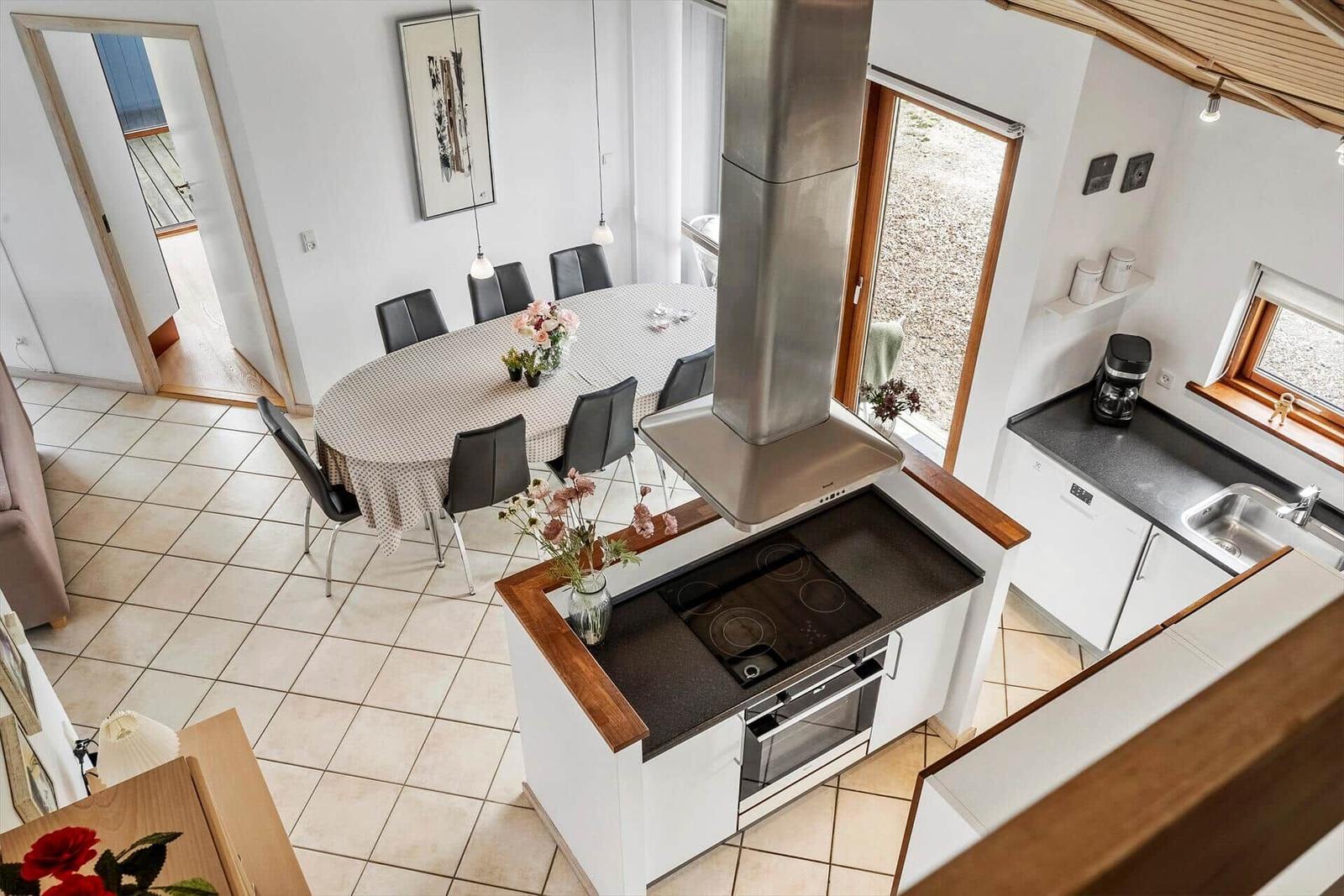 Willkommen in der Ferienwohnung, die stilvollen Komfort und Ruhe vereint. Die offenen Räumlichkeiten mit offener Küche und Wohnbereich bieten großzügigen Raum für Geselligkeit. Die moderne Ausstattung umfasst einen Geschirrspüler, Elektro-/Gasherd, Backofen, Mikrowelle, Kühlschrank und eine Kaffeemaschine, die jedes Kochen zum Vergnügen machen. Ein Badezimmer mit Dusche sorgt für Erholung, während der TV und WLAN für Unterhaltung sorgen. Die Schlafräume bieten 3 Doppelbetten und 1 Kinderbett, ideal für Familien oder Gruppen. Zusätzlicher Komfort wird durch eine Fußbodenheizung, Waschmaschine, Wäschetrockner und Bügeleisen gewährleistet. Entspannen kann man auch auf der nach Osten ausgerichteten Terrasse – ein perfekter Ort für Frühstück oder Grillabende unter freiem Himmel. Die Lage in Thorsminde ermöglicht außerdem unvergessliche Erlebnisse in der Natur.