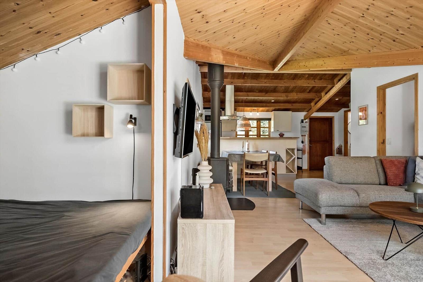 Diese Ferienwohnung in Marielyst, Lolland-Falster, bietet den idealen Rückzugsort für bis zu 4 Erwachsene, 2 Kinder und ein Haustier. Auf großzügigen 70 m² erwarten die Gäste zwei gemütliche Schlafzimmer, eines mit einem Doppelbett und eines mit vier Einzelbetten, sowie ein Kinderbett für die Kleinen. Das offene Wohn-/Schlafzimmer mit Kamin lädt zum Verweilen ein. Die gut ausgestattete Küche verfügt über einen Elektro-/Gasherd, Geschirrspüler, Kühlschrank und Kaffeemaschine, ergänzt durch einen Wasserkocher und einen Kinderhochstuhl. Ein modernes Duschbad sorgt für zusätzlichen Komfort. Internet mit WLAN steht zur Verfügung. Der Strand ist nur 600 Meter entfernt, während Einkaufsmöglichkeiten in 2.000 Metern erreichbar sind. Das 1.800 m² große Grundstück ermöglicht viel Raum für Spiel und Erholung. Diese Unterkunft vereint Gemütlichkeit und Funktionalität für einen unvergesslichen Urlaub.