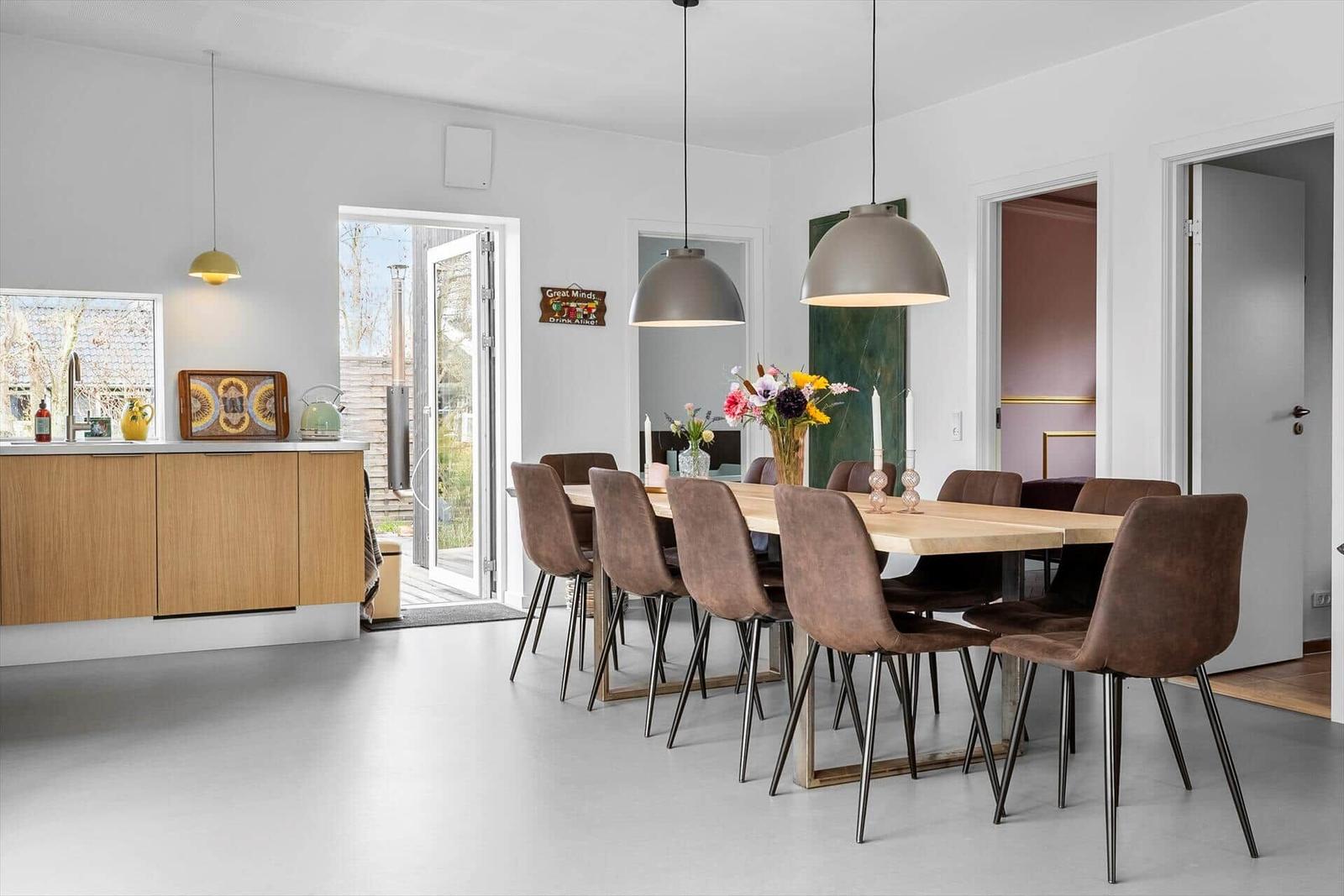 Die Ferienwohnung in Marielyst, Lolland-Falster, bietet auf 126 m² Platz für bis zu 10 Erwachsene. Sie überzeugt mit einer gemütlichen Einrichtung und einem durchdachten Raumkonzept. Fünf Schlafzimmer mit Doppelbetten garantieren entspannende Nächte, während das Wohnschlafzimmer genügend Raum für gemeinsame Stunden bietet. Die offene Küche ist komplett ausgestattet mit einem Elektro-/Gasherd, Backofen, Mikrowelle, Kühlschrank und Geschirrspüler, ideal für die Zubereitung von köstlichen Mahlzeiten. Moderne Annehmlichkeiten wie WLAN, TV, Waschmaschine, Wäschetrockner und ein energieeffizientes Heizsystem erhöhen den Komfort. Zu den zwei Badezimmern gehört eine Dusche und eine Badewanne. Ein Kinderhochstuhl erleichtert den Aufenthalt für Familien. Der Strand ist nur 850 Meter entfernt, während Einkaufsmöglichkeiten in 300 Metern erreichbar sind. Das großzügige Grundstück von 1.188 m² bietet zusätzliche Freizeitmöglichkeiten.