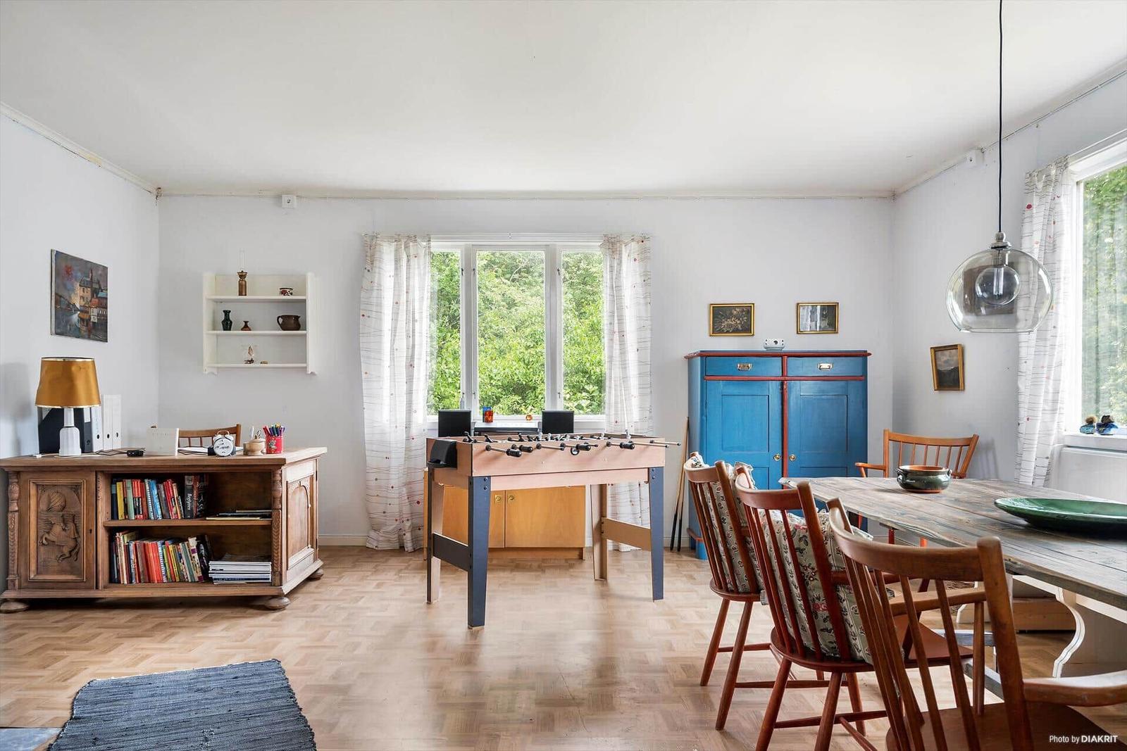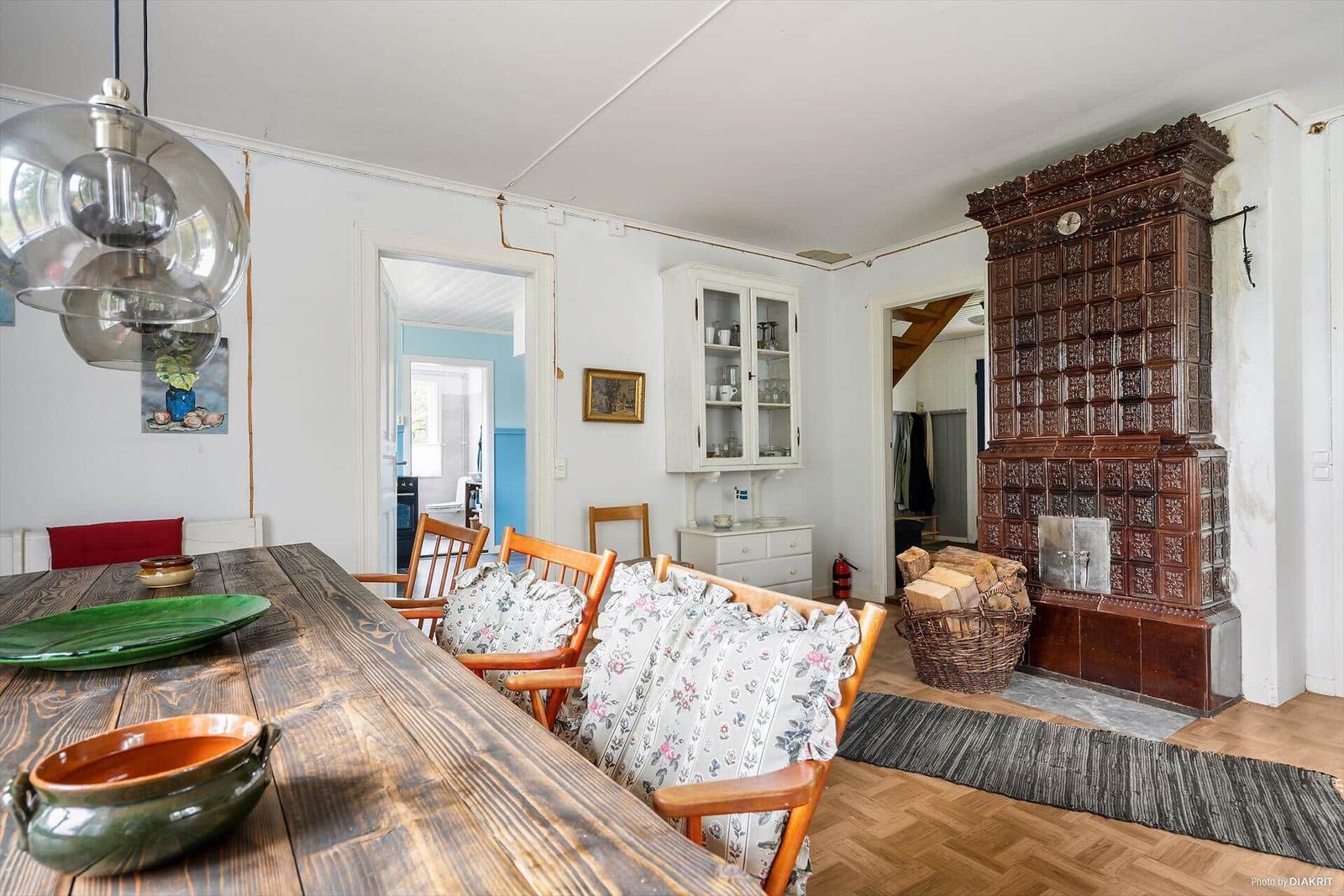 Das Ferienhaus Uppsala, ein liebevoll renoviertes Bauwerk aus dem Jahr 1903, bietet auf etwa 200 m² Wohnfläche Platz für bis zu elf Personen. Die geräumige Diele führt in ein Schlafzimmer mit Einzelbett und das großzügige Wohn- und Esszimmer, ausgestattet mit einem Kachelofen und einem langen Esstisch. Die moderne Wohnküche kombiniert alte Elemente mit einem Elektroherd, Glaskeramikkochfeld und Geschirrspüler. Ein Jagdzimmer mit offenem Kamin bietet weiteren Rückzugsraum. Im Obergeschoss befinden sich fünf weitere Schlafzimmer, die unterschiedlich möbliert sind, darunter Einzel- und Doppelbetten. Ein modernes Duschbad ist vom Küchenbereich zugänglich. Das Haus verfügt über fließend kaltes und warmes Wasser aus eigenem Tiefbrunnen. Internet und Fernseher sind nicht vorhanden, was die Möglichkeit fördert, Zeit miteinander zu verbringen. Bettwäsche und Handtücher sind selbst mitzubringen, und eine gründliche Endreinigung ist von den Gästen erforderlich.