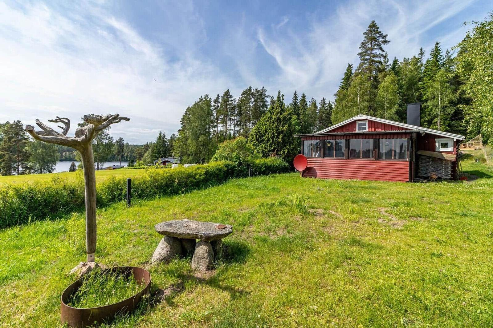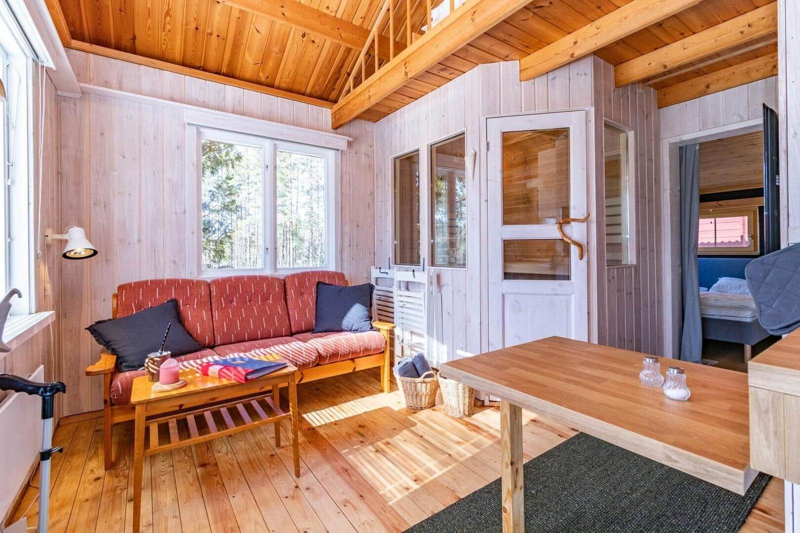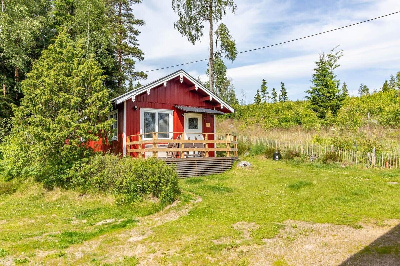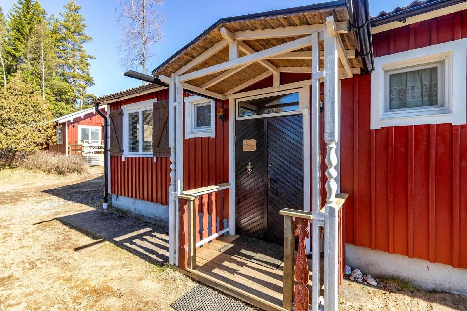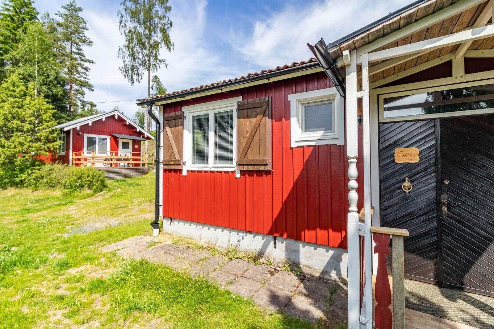 Das Ferienhaus-Ensemble Solstugan bietet auf insgesamt 75 m² ausreichend Platz für bis zu 6 Personen. Das Haupthaus (ca. 45 m²) verfügt über ein Schlafzimmer mit Doppelbett, ein gemütliches Wohnzimmer mit Kamin und TV (deutsche Programme) sowie einen verglasten Wintergarten. Die gut ausgestattete Küche beinhaltet einen 4-Platten-Herd, Backofen, Kühlschrank, Spülmaschine und Mikrowelle. Zudem gibt es ein Badezimmer mit Badewanne und ein zusätzliches Gäste-WC. Das separate Gästehaus (ca. 30 m²) bietet eine kleine Küche mit Induktionskochfeld, einen offenen Wohnbereich mit Sofa und TV (ohne Empfang), ein Schlafzimmer mit Doppelbett, ein Badezimmer mit Dusche sowie ein Schlafloft mit zwei Einzelbetten. Eine Elektro-Sauna rundet das Angebot ab. Waschmaschine, Luftwärmepumpe und Elektroheizungen sind ebenfalls vorhanden. Internet, Ruderboot und Angelerlaubnis sind ohne Zusatzkosten verfügbar.