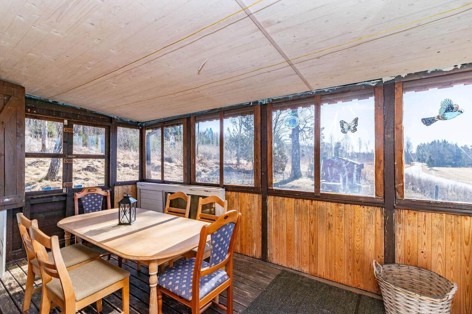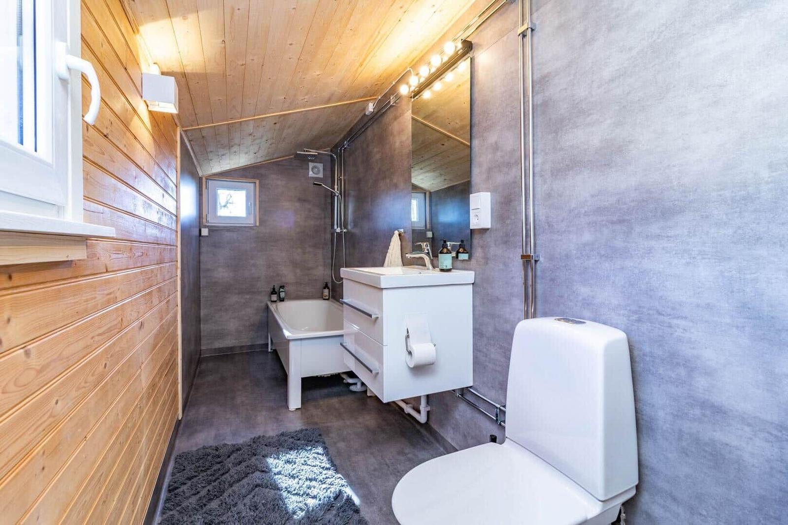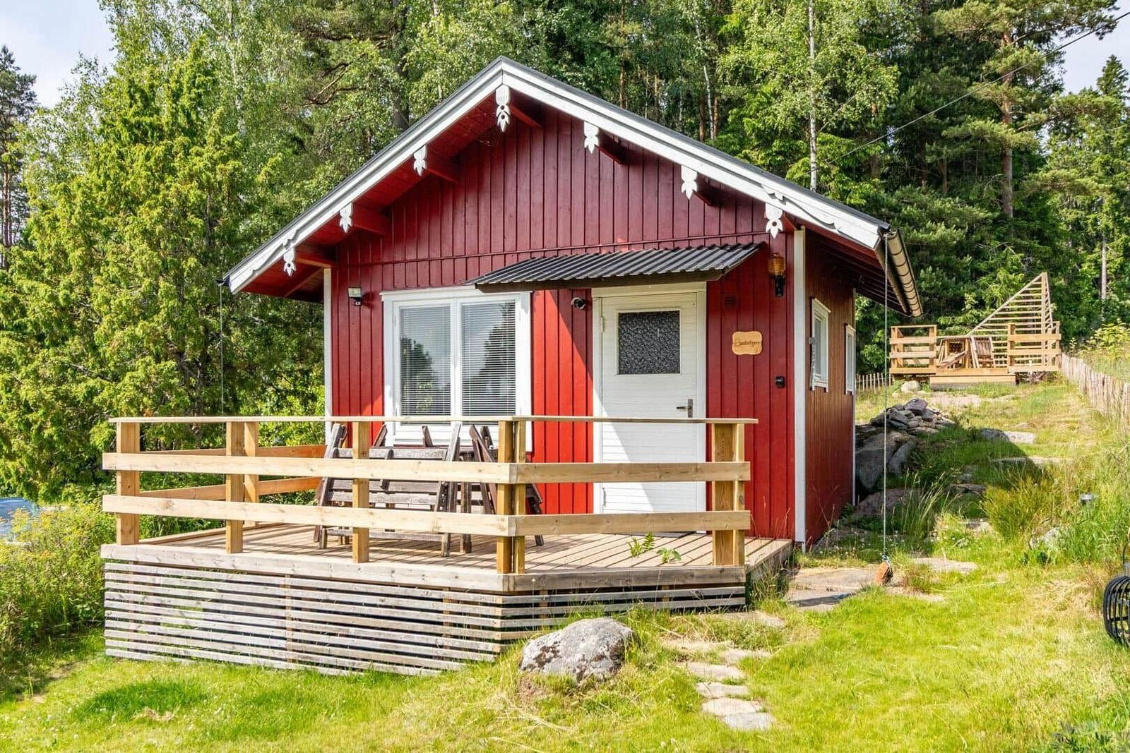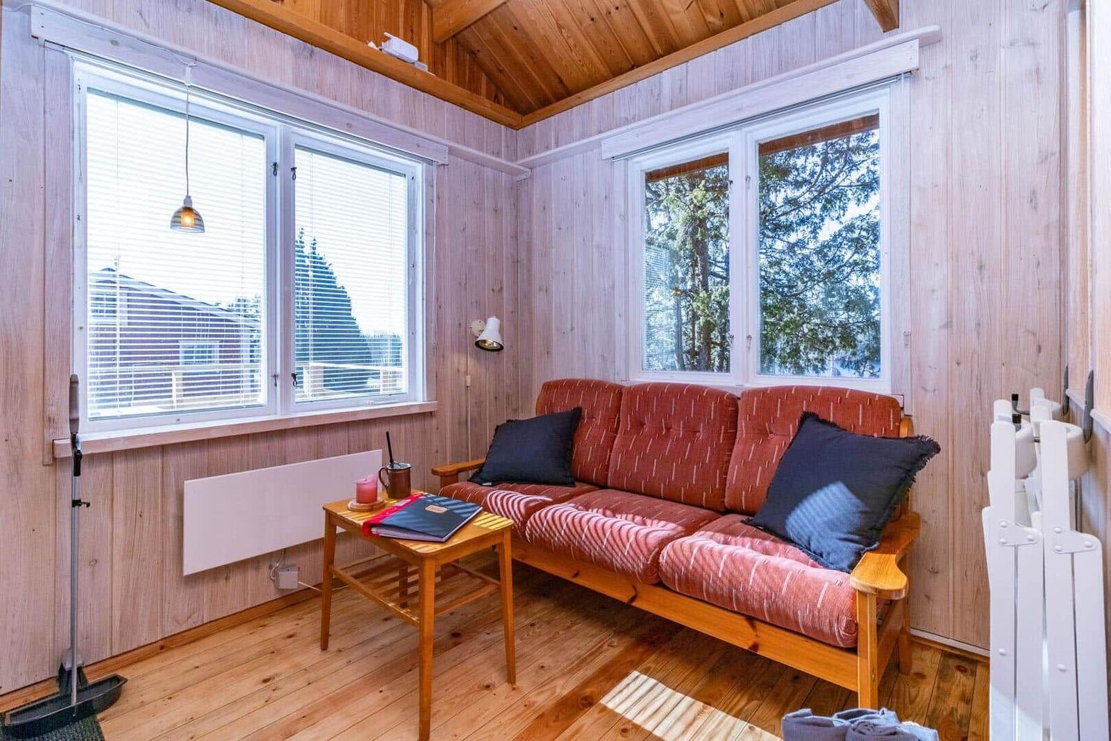 Das Ferienhaus-Ensemble Solstugan bietet auf insgesamt 75 m² ausreichend Platz für bis zu 6 Personen. Das Haupthaus (ca. 45 m²) verfügt über ein Schlafzimmer mit Doppelbett, ein gemütliches Wohnzimmer mit Kamin und TV (deutsche Programme) sowie einen verglasten Wintergarten. Die gut ausgestattete Küche beinhaltet einen 4-Platten-Herd, Backofen, Kühlschrank, Spülmaschine und Mikrowelle. Zudem gibt es ein Badezimmer mit Badewanne und ein zusätzliches Gäste-WC. Das separate Gästehaus (ca. 30 m²) bietet eine kleine Küche mit Induktionskochfeld, einen offenen Wohnbereich mit Sofa und TV (ohne Empfang), ein Schlafzimmer mit Doppelbett, ein Badezimmer mit Dusche sowie ein Schlafloft mit zwei Einzelbetten. Eine Elektro-Sauna rundet das Angebot ab. Waschmaschine, Luftwärmepumpe und Elektroheizungen sind ebenfalls vorhanden. Internet, Ruderboot und Angelerlaubnis sind ohne Zusatzkosten verfügbar.