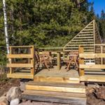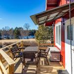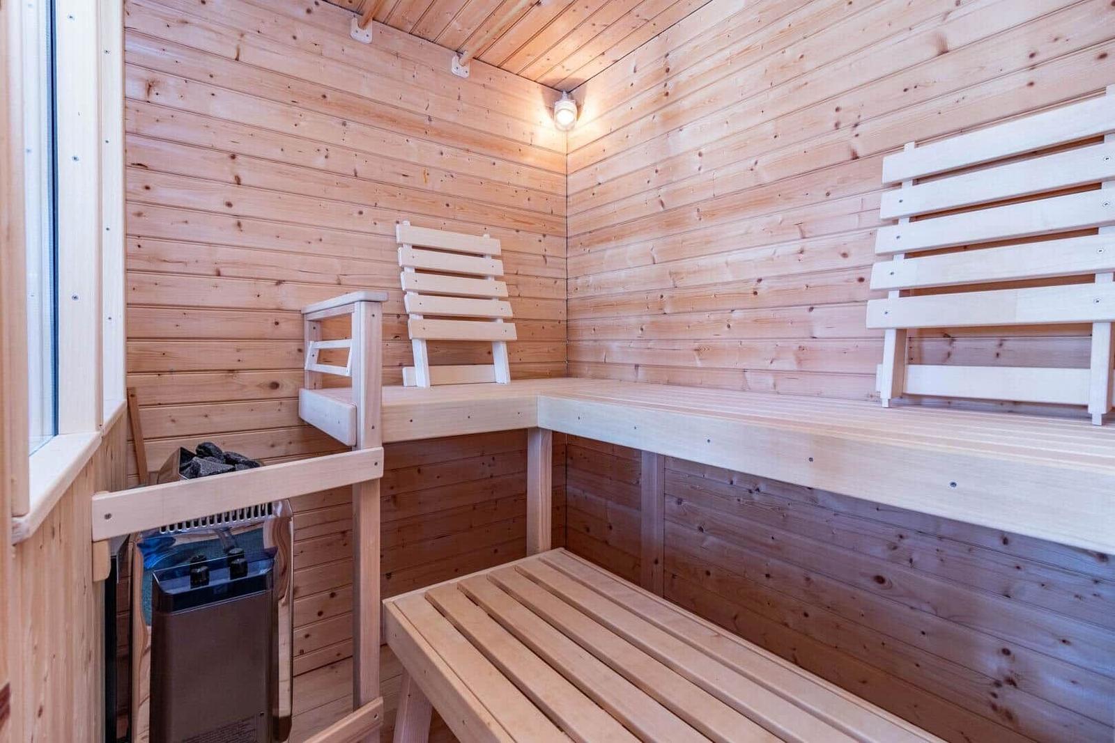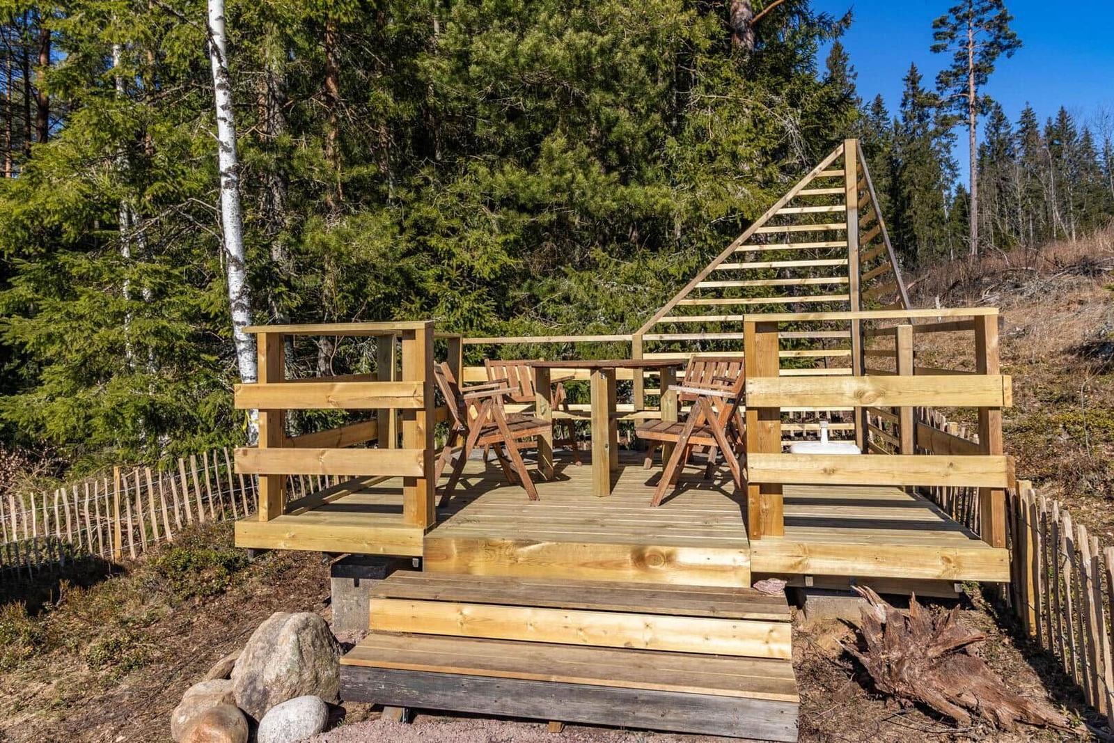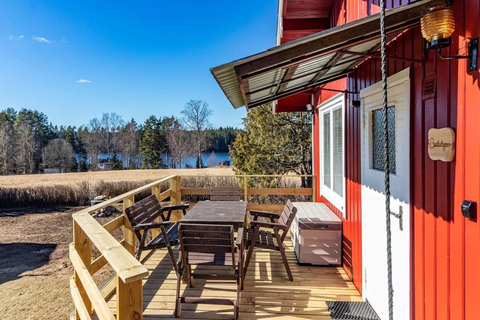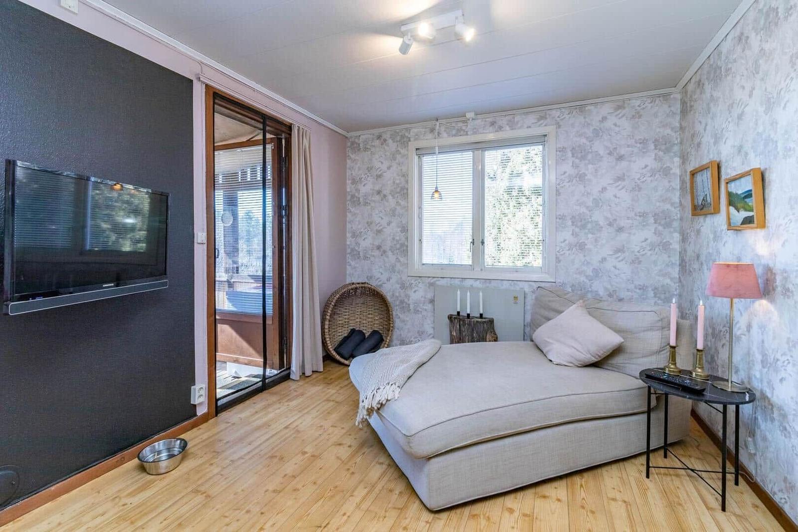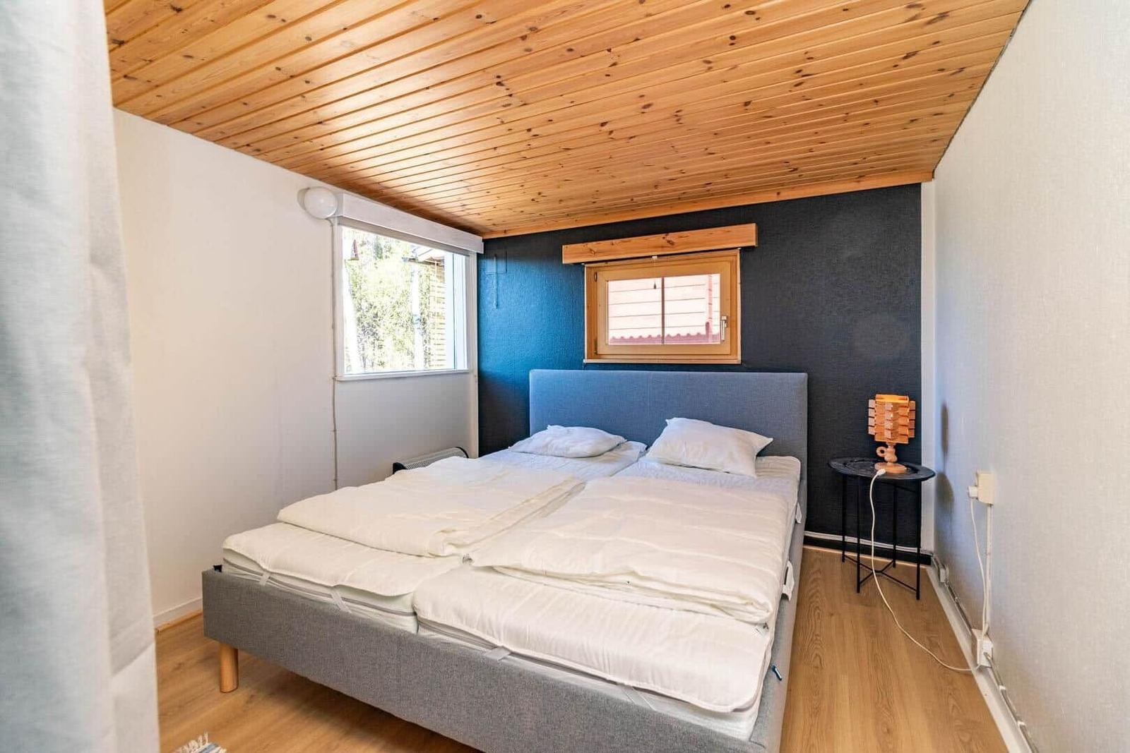 Das Ferienhaus-Ensemble Solstugan bietet auf insgesamt 75 m² ausreichend Platz für bis zu 6 Personen. Das Haupthaus (ca. 45 m²) verfügt über ein Schlafzimmer mit Doppelbett, ein gemütliches Wohnzimmer mit Kamin und TV (deutsche Programme) sowie einen verglasten Wintergarten. Die gut ausgestattete Küche beinhaltet einen 4-Platten-Herd, Backofen, Kühlschrank, Spülmaschine und Mikrowelle. Zudem gibt es ein Badezimmer mit Badewanne und ein zusätzliches Gäste-WC. Das separate Gästehaus (ca. 30 m²) bietet eine kleine Küche mit Induktionskochfeld, einen offenen Wohnbereich mit Sofa und TV (ohne Empfang), ein Schlafzimmer mit Doppelbett, ein Badezimmer mit Dusche sowie ein Schlafloft mit zwei Einzelbetten. Eine Elektro-Sauna rundet das Angebot ab. Waschmaschine, Luftwärmepumpe und Elektroheizungen sind ebenfalls vorhanden. Internet, Ruderboot und Angelerlaubnis sind ohne Zusatzkosten verfügbar.