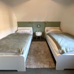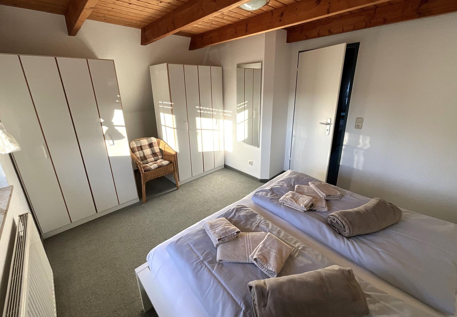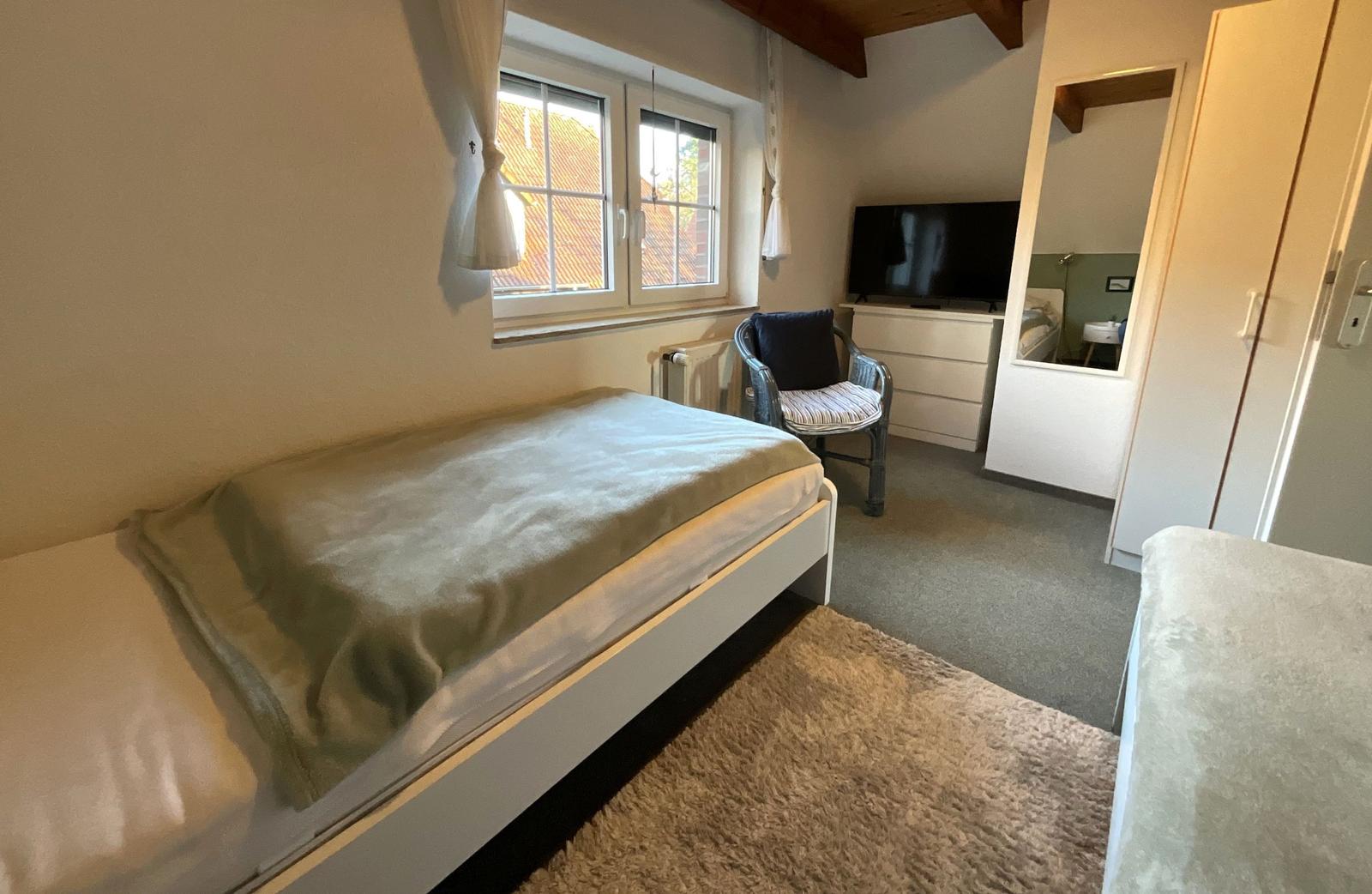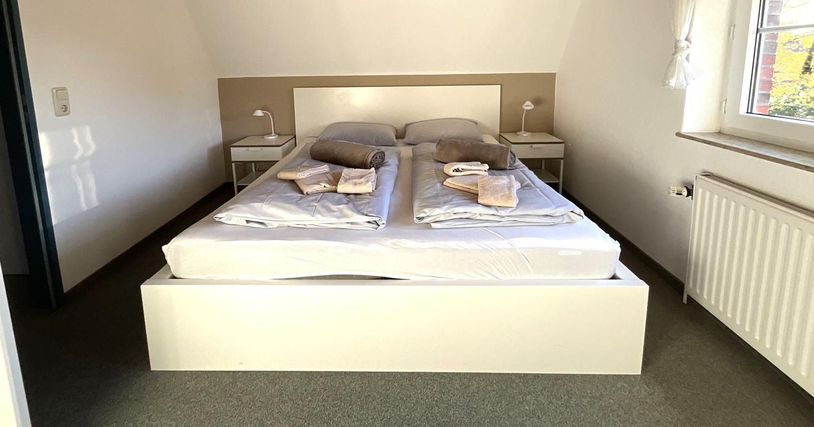 Die Ferienwohnung bietet eine ideale Unterkunft für anspruchsvolle Gäste. Sie verfügt über zwei ansprechend gestaltete Schlafzimmer, die mit einem Doppelbett und zwei Einzelbetten ausgestattet sind, sowie ein modernes Badezimmer mit Duschbad und Gäste-WC.