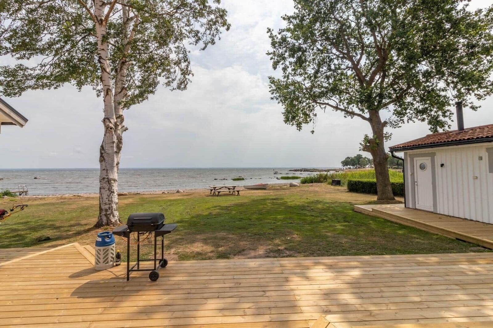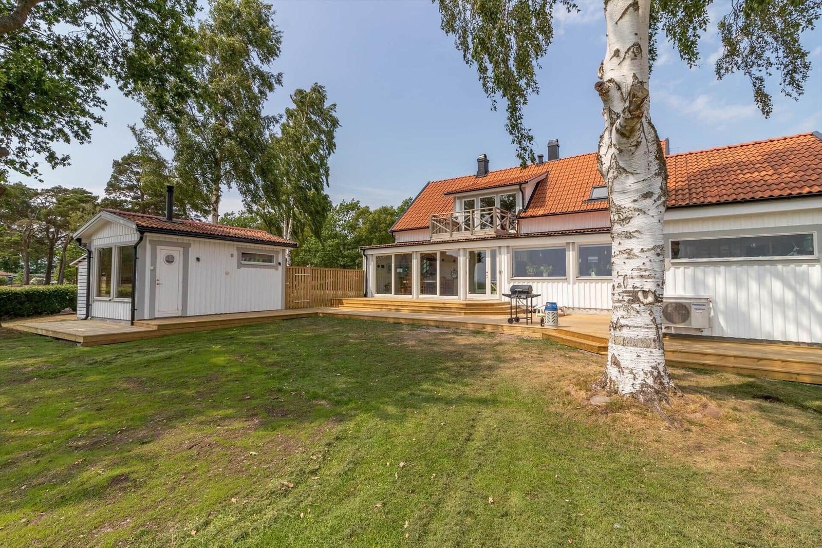 Das Ferienhaus in Kalmar, Süd-Schweden, bietet einen ansprechenden Außenbereich, der ideal für entspannte Stunden im Freien ist. Auf einem großzügigen Grundstück von 1.000 m² gelegen, ermöglicht es den Gästen, die Natur in ihrer ganzen Pracht zu genießen. Der nächste Strand ist nur 10 Meter entfernt, was den perfekten Zugang zu Erholung und Wassersportaktivitäten bietet. Zudem steht ein gemeinschaftlich nutzbarer Bereich zur Verfügung, der zum Verweilen einlädt. Die Unterkunft verfügt über eine Fläche von 150 m² sowie einen zusätzlichen 9 m² großen Annex, in dem sich ebenfalls Erholungsräume befinden. Hier kann man unvergessliche Momente im Freien verbringen, sei es für ein BBQ oder einfach nur zum Entspannen. Einkaufsmöglichkeiten sind in einer Entfernung von 8.000 Metern zu finden, was die Selbstversorgung während des Aufenthalts erleichtert.