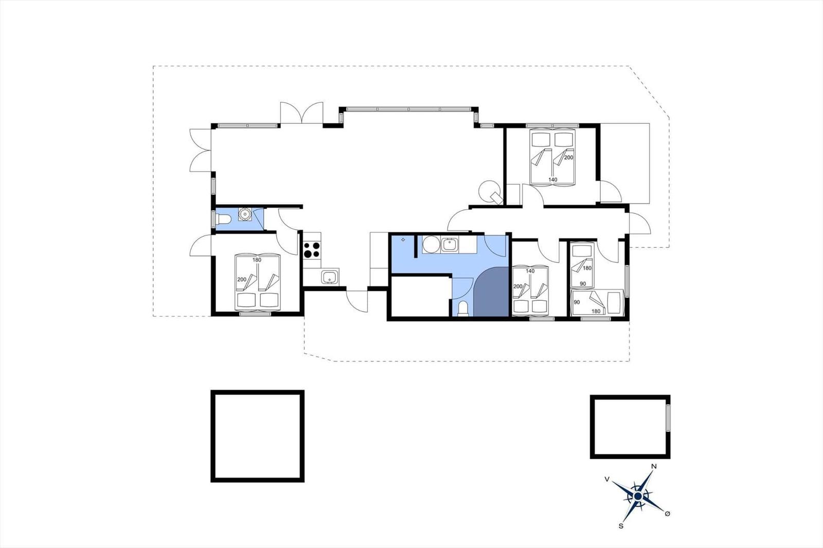 Die Unterkunft umfasst 4 Schlafzimmer, ausgestattet mit 2 Doppelbetten, 3 Einzelbetten und 3 Kinderbetten, sowie ein Duschbad. Eine Sauna sorgt fĂŒr Entspannung nach einem Tag am nur 400 Meter entfernten Strand. Ein kindersicherer Hochstuhl und eine Schaukel im groĂzĂŒgigen 2.685 mÂČ groĂen Garten machen das Haus perfekt fĂŒr Familien. Einkaufsmöglichkeiten befinden sich in 4.000 Metern Entfernung.