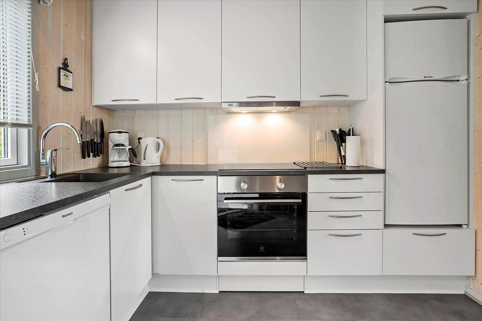 Die voll ausgestattete Küche lässt keine Wünsche offen und beinhaltet einen Kühlschrank, einen Elektro-/Gasherd, einen Backofen und einen Geschirrspüler. Eine Waschmaschine, eine Kaffeemaschine sowie ein Wasserkocher sind ebenfalls vorhanden. Kostenfreies WLAN sorgt für Internetzugang. Nur 300 Meter trennen die Gäste vom nächsten Strand, während Einkaufsmöglichkeiten in 800 Meter Entfernung schnell erreichbar sind.