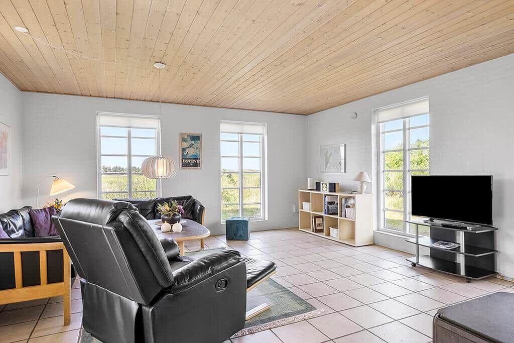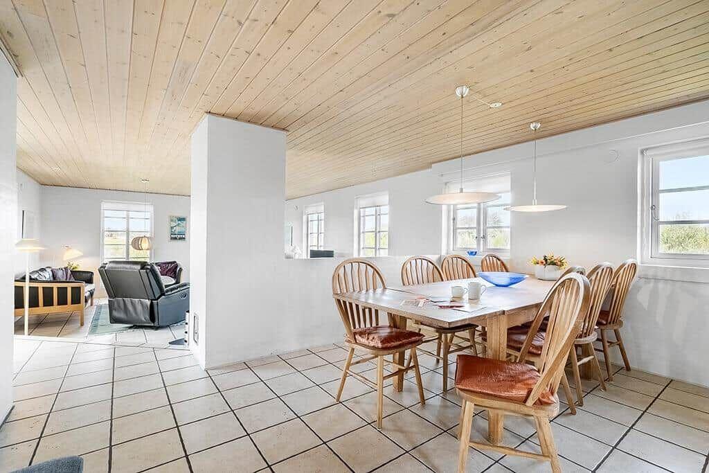 Das Ferienhaus in Vester Husby, Westjütland, bietet Platz für bis zu 10 Personen sowie für 2 Haustiere und vereint großzügige Räume mit komfortabler Ausstattung. Auf einer Fläche von 163 m² stehen 3 Schlafzimmer mit 2 Doppelbetten, 2 Einzelbetten und 2 Schlafcouch zur Verfügung. Die beiden Badezimmer sind modern gestaltet und ideal für eine Familie oder Gruppe. Die gut ausgestattete Küchenzeile ermöglicht die Zubereitung von Mahlzeiten mit Geschirrspüler, Elektro-/Gasherd, Mikrowelle, Kühlschrank und Kaffeemaschine. Ein Duschbad ergänzt das Angebot. Für gemütliche Abende sorgt der Kamin im Wohnbereich sowie der TV. Highlights der Unterkunft sind WLAN-Internet, Fußbodenheizung, Waschmaschine, Wäschetrockner und Wasserkocher. Entspannen kann man in der Sauna oder am nahegelegenen Strand, der nur 1.300 Meter entfernt ist. Die Unterkunft befindet sich auf einem großzügigen Grundstück von 5.000 m².