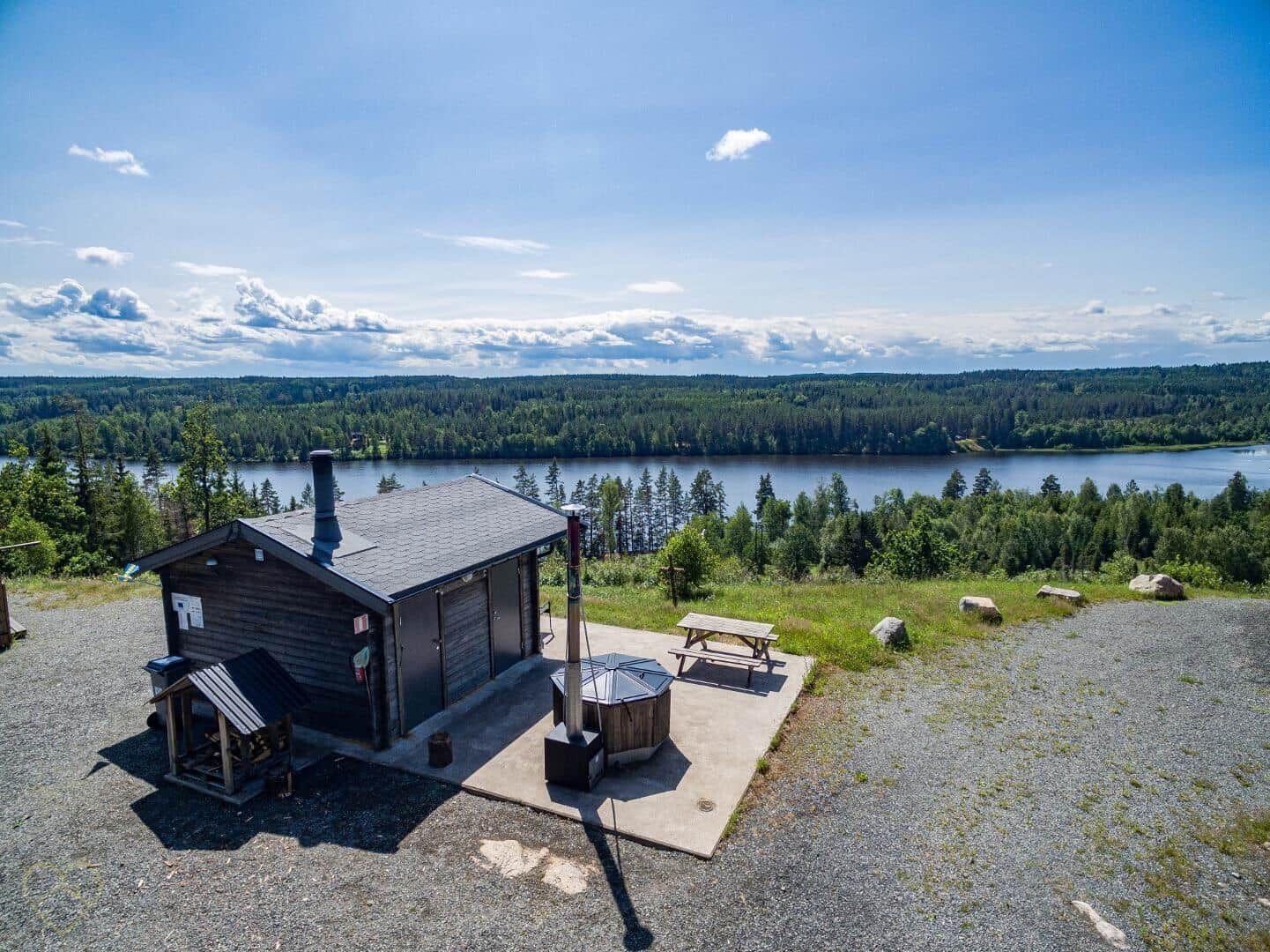 Das Ferienhaus Götskögle-Älgen bietet einen einladenden Außenbereich, der ideal für Entspannung und Freizeitaktivitäten ist. Die überdachte Terrasse mit Gartenmöbeln und Grill lädt zum Verweilen im Freien ein. Gäste haben Zugang zum kleinen Steg am rund 150 m entfernten See, wo Schwimmen und Ausblicke auf das Tal genossen werden können. Ein Ruderboot steht kostenlos zur Verfügung, um den See zu erkunden. Die gesamte Anlage umfasst gemeinschaftlich nutzbare Einrichtungen, darunter eine Waschmaschine, Wäschetrockner sowie eine Sauna und Badetonne, die gegen Gebühr genutzt werden können. Ein öffentlicher Badeplatz mit Grillstelle ist ebenfalls in der Nähe vorhanden. Die ruhige Lage in den sanften Wäldern Smålands sorgt für ein harmonisches Naturerlebnis, perfekt zum Wandern oder Spazierengehen. Die An- und Abreise erfolgt samstags, Haustiere sind nicht erlaubt.