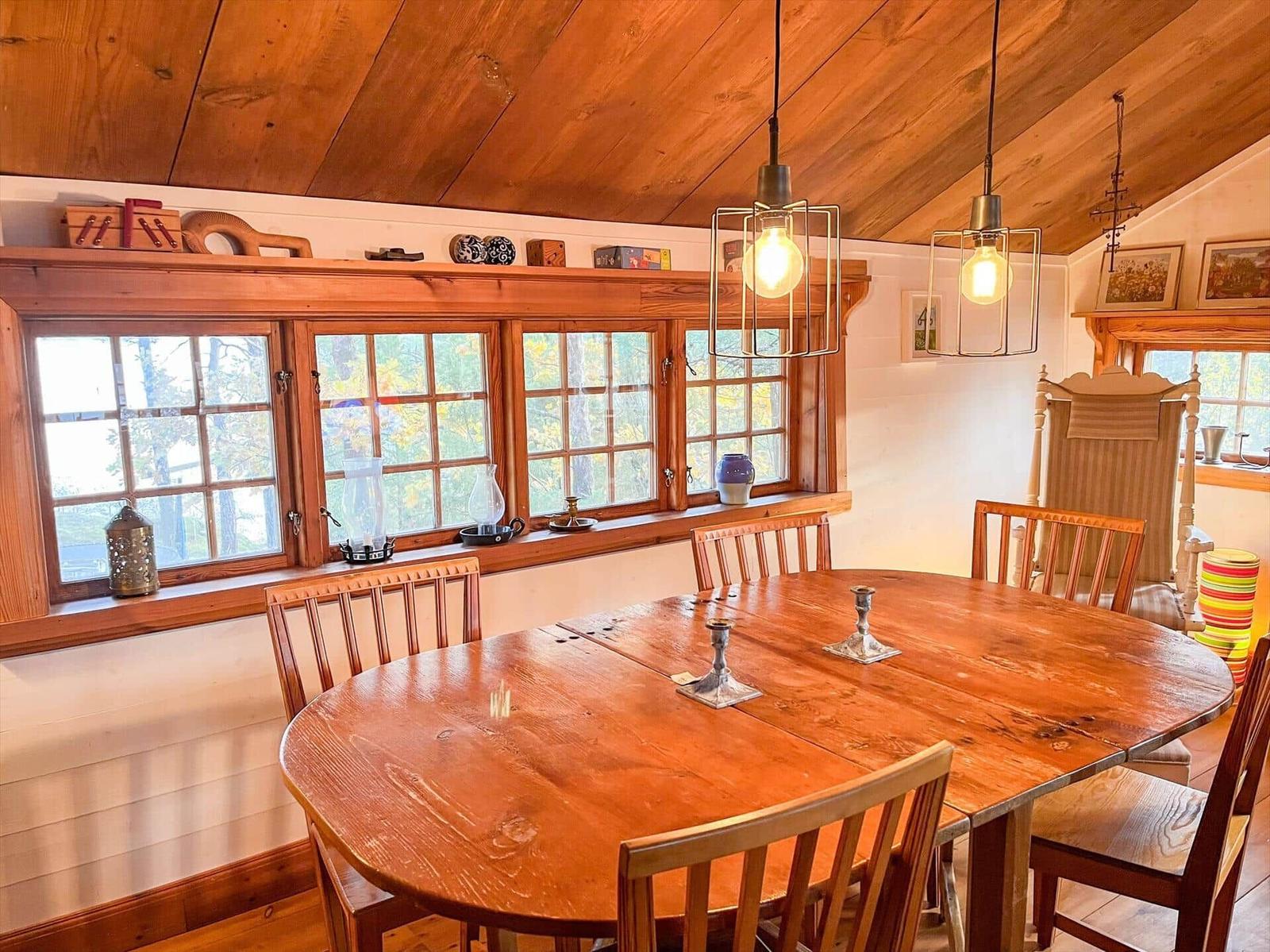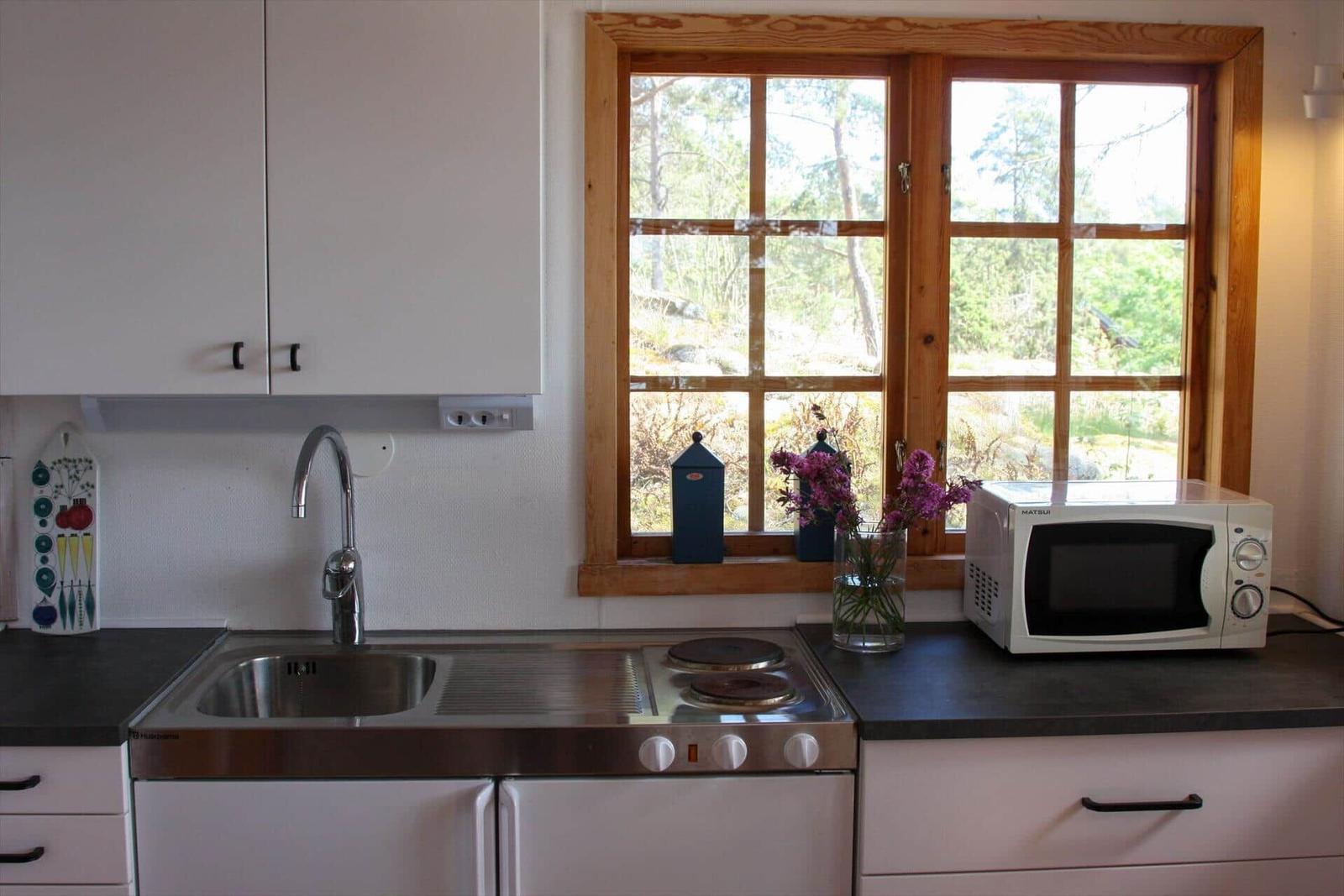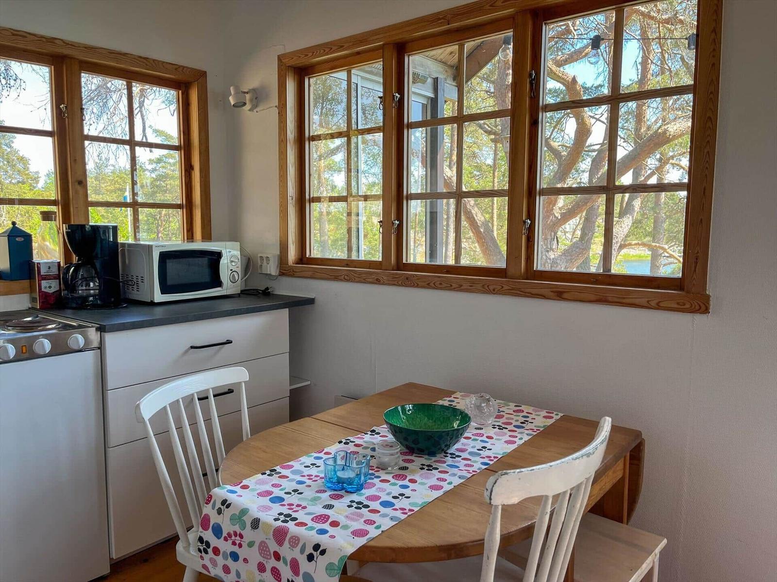 Das Ferienhaus-Ensemble Arkösund Horsholmen besteht aus vier authentisch renovierten Hütten mit insgesamt fünf Zimmern, einer Küche, einem Bad und zwei Toiletten. Das Haupthaus bietet auf etwa 60 m² eine komplett ausgestattete Küche mit E-Herd, Backofen, Geschirrspüler und mehr, sowie einen offenen Wohnbereich mit Esstisch, Kamin, TV und Schlafboden mit zwei Matratzen. Das Gästehaus enthält eine kleine Küche, ein Schlafzimmer mit Doppelbett (1,60 m) und Schlafboden mit vier Matratzen. Das Schlafhaus besitzt ein Schlafzimmer mit kleinem Doppelbett (1,20 m) und eines mit einem Etagenbett. Im Badehaus befinden sich Bad, WC, Dusche und Waschmaschine. Insgesamt stehen sechs Betten und weitere Matratzen zur Verfügung. Bettwäsche und Handtücher können für 15 EUR pro Person gemietet werden. Rauchen ist nicht gestattet, Haustiere sind erlaubt.