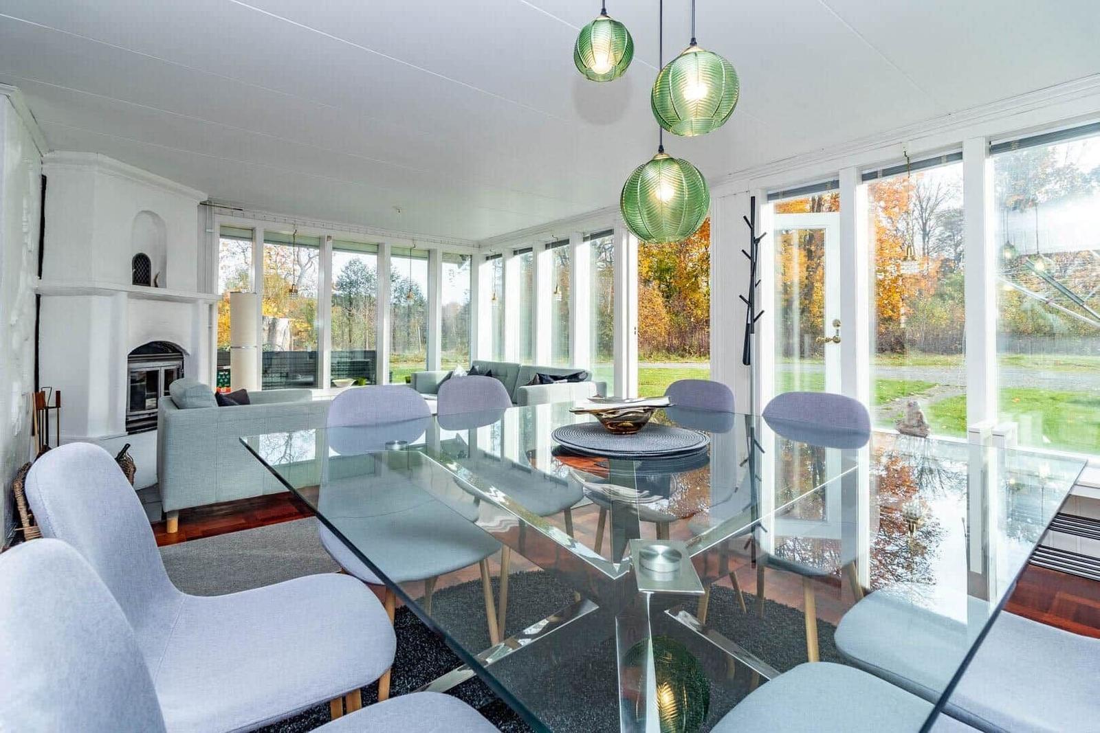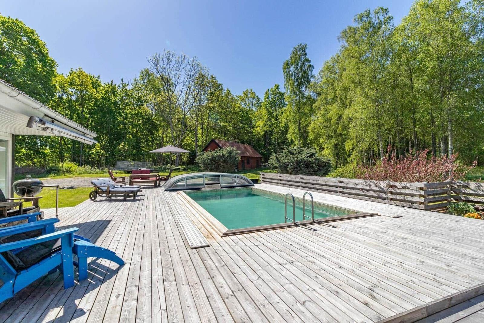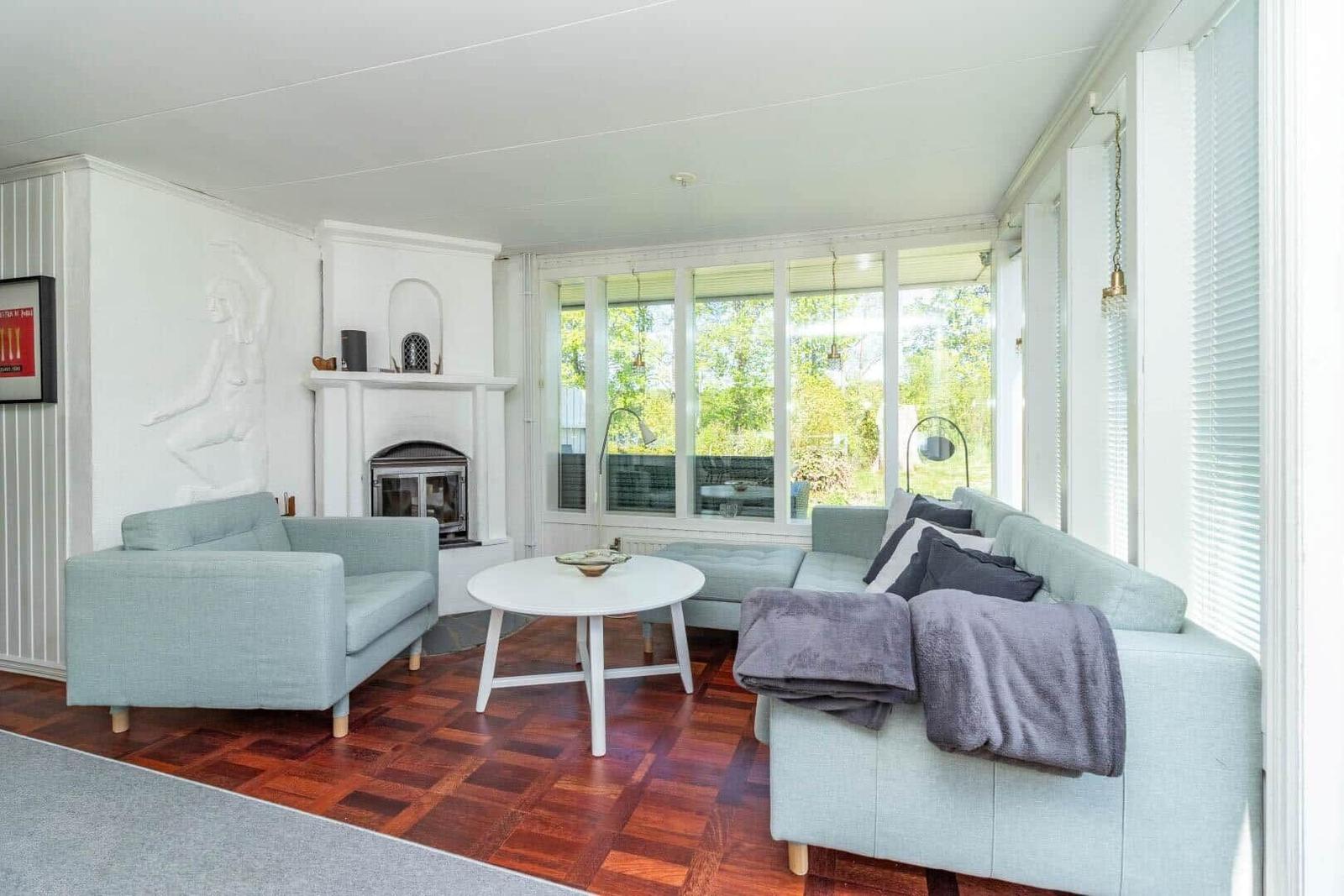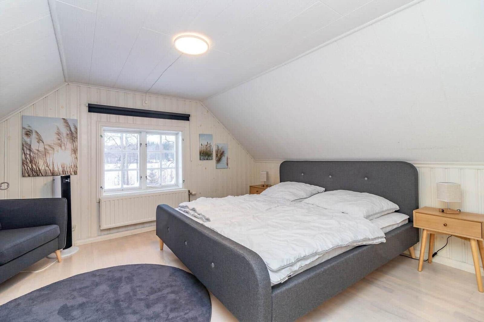 Das Ferienhaus Hökamåla bietet auf 130 m² Platz für bis zu 8 Personen und zeichnet sich durch vier Schlafzimmer aus: ein Zimmer mit 2 Einzelbetten und drei Zimmer mit Doppelbetten, eines ausgestattet mit einem Kinderbett. Zwei gemütliche Wohnzimmer, eines mit Essbereich, laden zum Verweilen ein. Die voll ausgestattete Küche umfasst ein 4-Platten-Ceranfeld, Ofen, Holzofen, Mikrowelle und Kühl- und Gefrierkombination. Das Badezimmer ist mit Dusche und WC ausgestattet, ergänzt durch einen Hauswirtschaftsraum mit Spülmaschine und Waschmaschine. Für Unterhaltung sorgen Internet und smartfähige TVs, einer mit deutschen Sendern. Zudem stehen Ruderboot, Elektromotor, Kanu und eine holzbefeuerte Badetonne zur Verfügung. Haustiere sind nach Anfrage erlaubt. Bettwäsche und Handtücher können dazugebucht werden. Jedes Gebäude bietet Zugang zu gemeinschaftlich nutzbaren Einrichtungen und Parkplatzmöglichkeiten.
