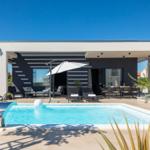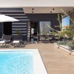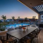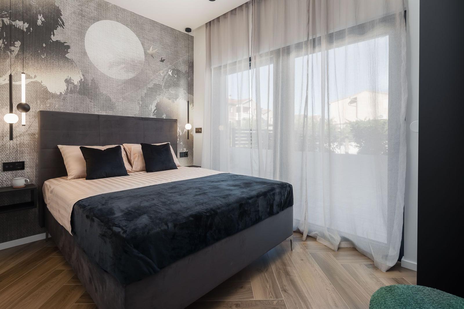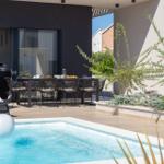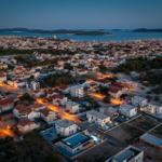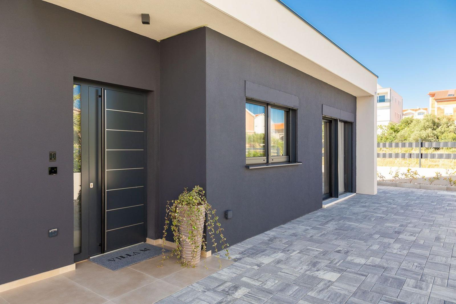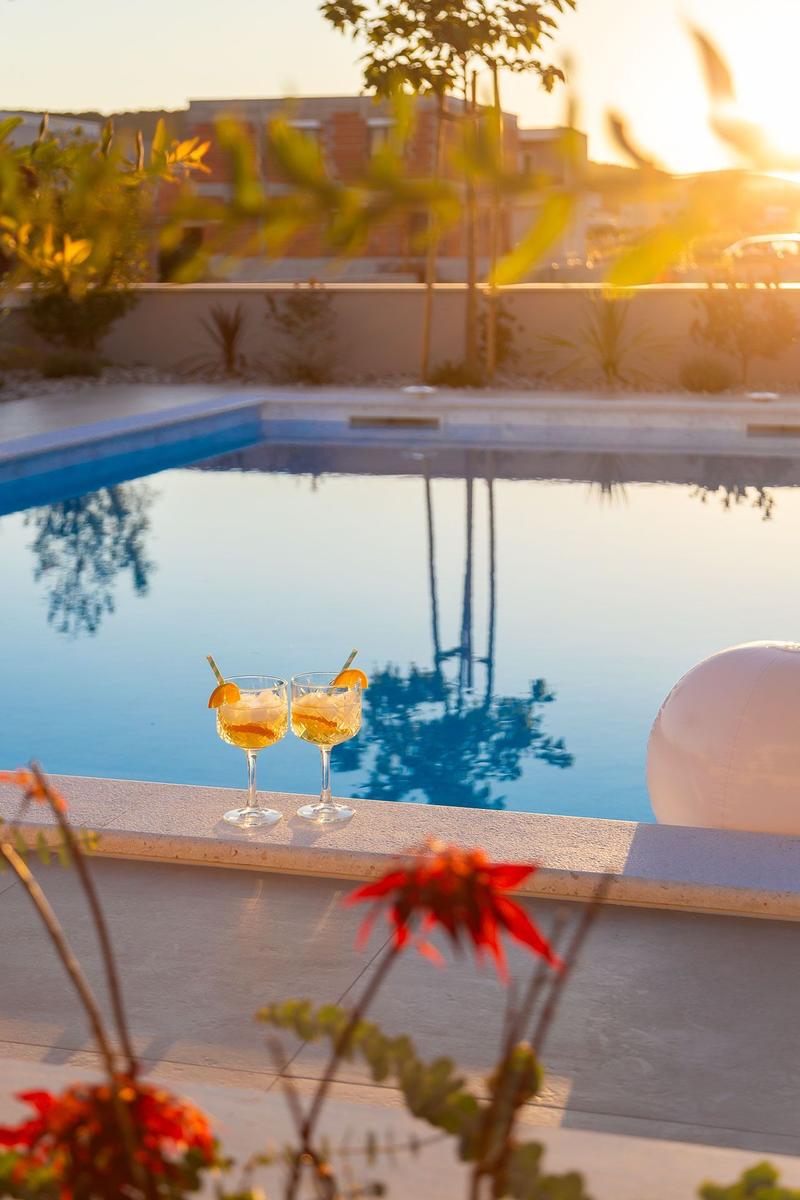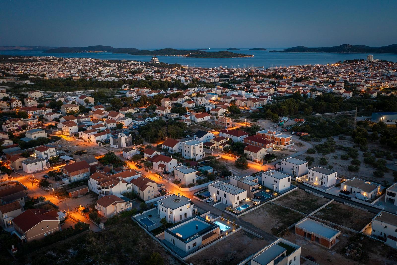 Die Villa M Luxury in Vodice überzeugt mit einem einladenden Außenbereich, der zum Entspannen und Genießen einlädt. Der beheizte Salzwasserpool mit großzügigen 32 m² bietet eine hervorragende Möglichkeit, sich abzukühlen, während stilvolle Sonnenliegen zum Sonnenbaden einladen. Die weitläufige Terrasse ist mit einem Essbereich und einer Grillmöglichkeit ausgestattet, ideal für gesellige Abende im Freien. Eine gemütliche Lounge-Zone sorgt für einen komfortablen Aufenthaltsbereich, der bei stimmungsvollem Licht am Abend besonders einladend wirkt. Diese exklusive Villa liegt nur 1,5 Kilometer vom lebhaften Zentrum Vodices entfernt und ermöglicht Gästen, den Außenbereich sowohl in Ruhe als auch in geselligem Rahmen zu nutzen. Bis zu 6 Gäste finden in dieser Privatsphäre Platz, um den Außenbereich in vollen Zügen zu genießen.