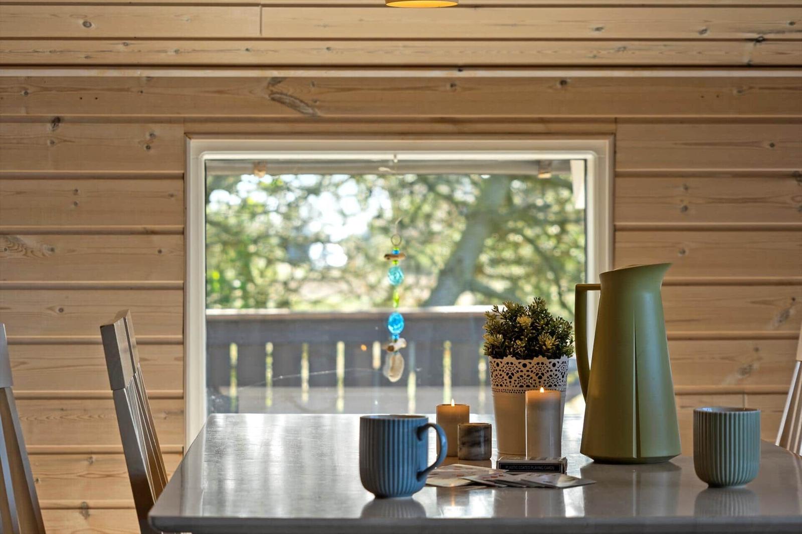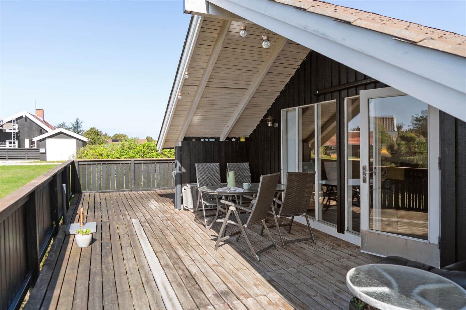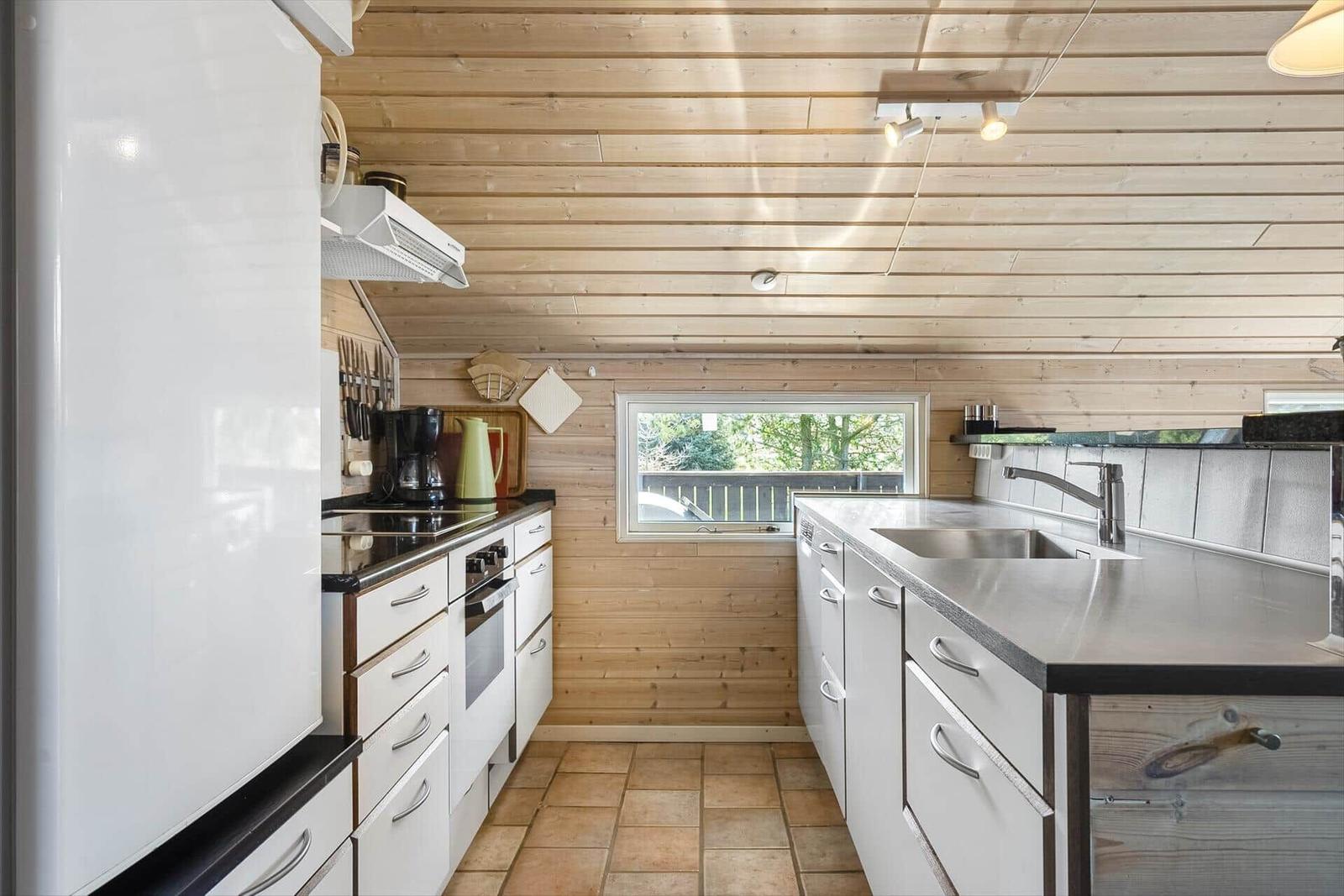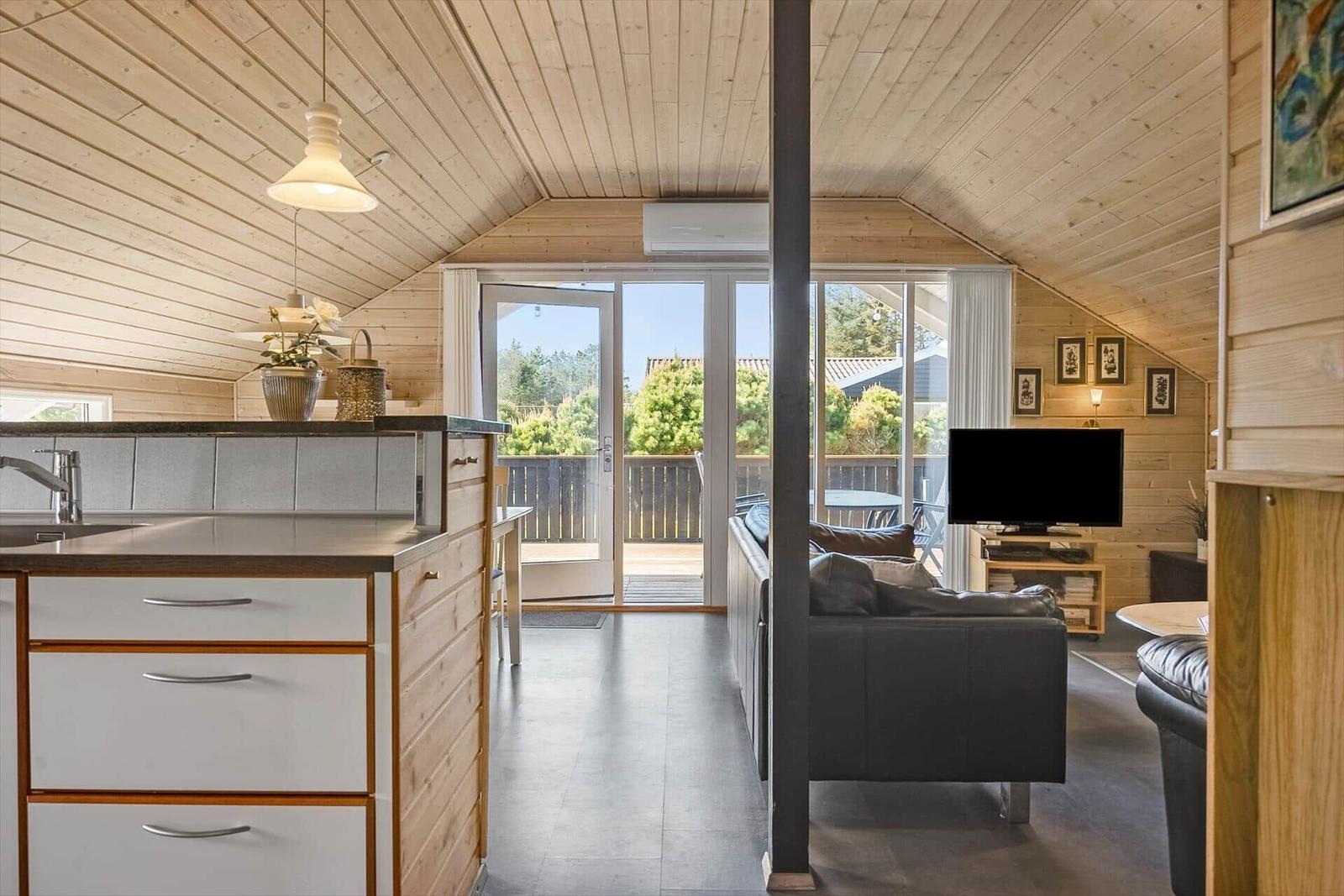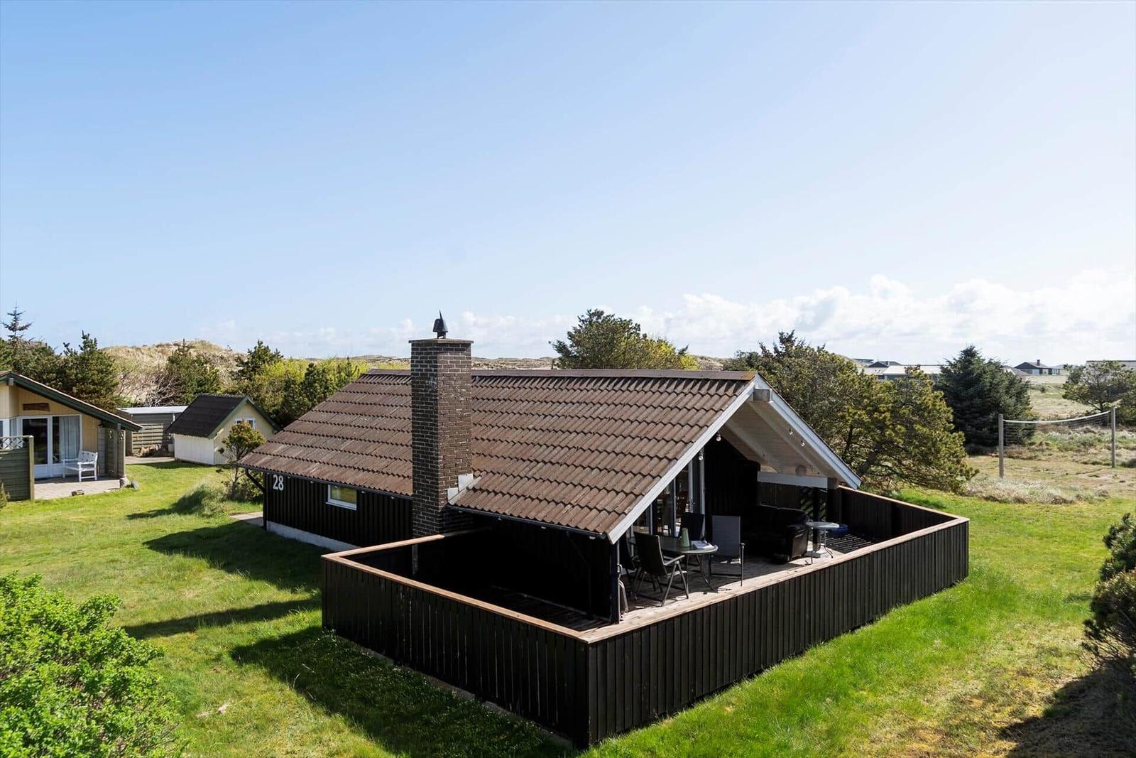 Der Wohnbereich vereint Komfort mit einem Kamin und bietet Zugang zu einem Fernseher sowie WLAN-Internet. Die moderne Küche ist vollständig eingerichtet mit Geschirrspüler, Elektro-/Gasherd, Mikrowelle, Kühlschrank, Kaffeemaschine und Wasserkocher, sodass der Aufenthalt besonders angenehm gestaltet werden kann. Zur weiteren Ausstattung gehören eine Waschmaschine und energieeffizientes Heizen. Das Grundstück von 1.504 m² umfasst zudem einen Sandkasten, und der Strand ist lediglich 950 Meter entfernt. Einkaufsmöglichkeiten sind in 1.010 Meter Entfernung erreichbar.