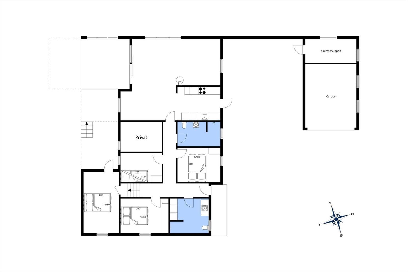 Diese Ferienwohnung in Vorupør, Nordjütland, bietet auf 108 m² ausreichend Platz für bis zu 6 Erwachsene. Die geräumige Unterkunft verfügt über 4 Schlafzimmer, darunter 3 Doppelbetten, sowie 2 moderne Duschbäder. Das gemütliche Wohnschlafzimmer mit Kamin lädt zum Entspannen ein.