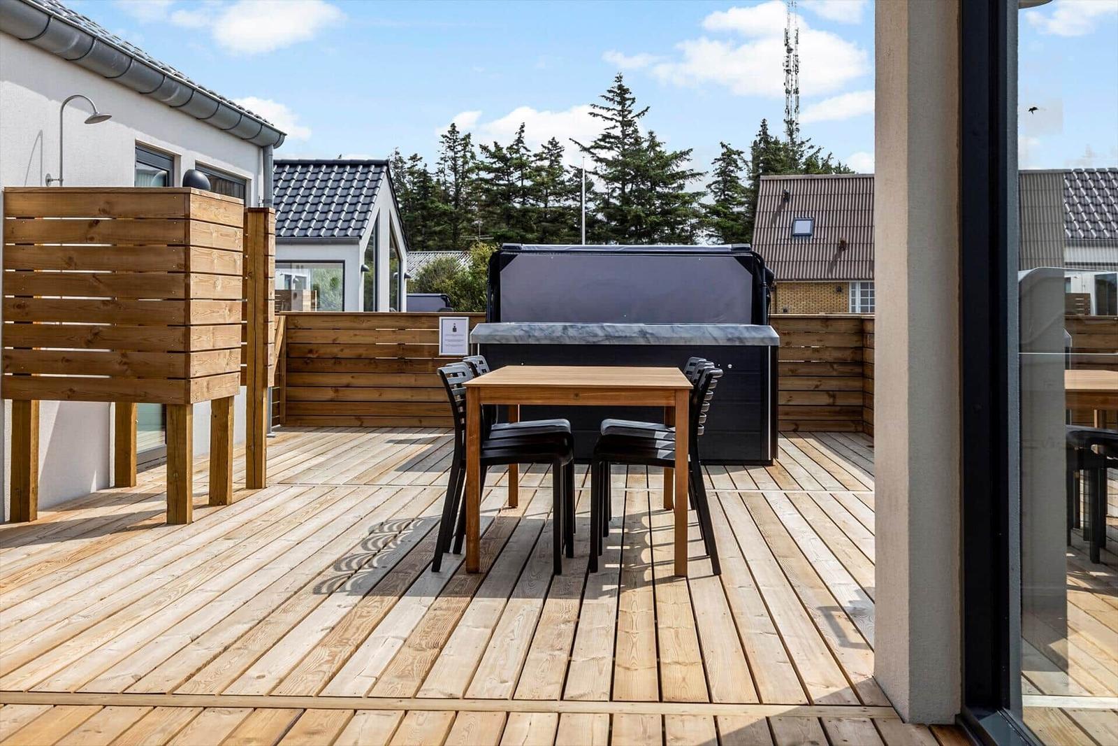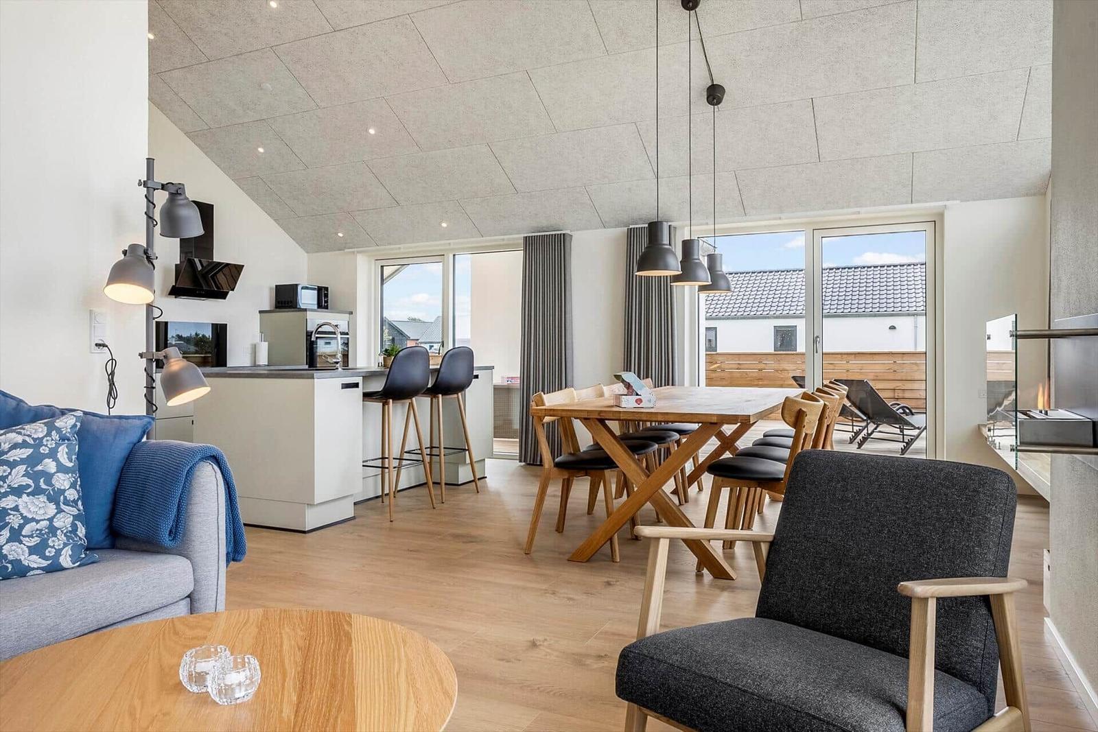 Diese moderne Ferienwohnung in Vorupør, Nordjütland, bietet Platz für bis zu 8 Erwachsene und 2 Haustiere. Auf 130 m² und inmitten eines großzügigen 1.300 m² großen Grundstücks erwartet die Gäste eine stilvolle, gemütliche Einrichtung. Die Wohnung verfügt über 4 einladende Schlafzimmer mit Doppelbetten sowie 1 Wohnschlafzimmer, das zusätzlichen Komfort bietet. Für das kulinarische Wohl sorgt eine voll ausgestattete Küche mit Geschirrspüler, Backofen, Mikrowelle, Kühlschrank und Kaffeemaschine. Das Duschbad lädt zum Entspannen ein.