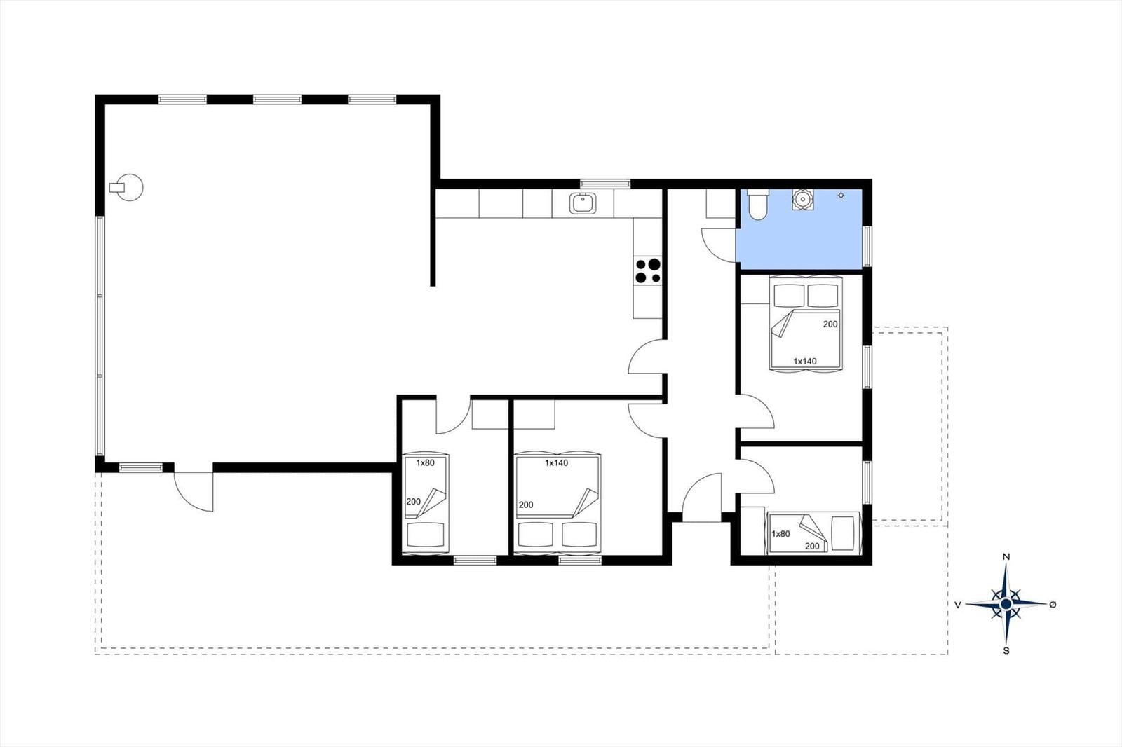 Die Ferienwohnung in Vorupør, Nordjütland, bietet auf 76 m² Platz für bis zu 6 Erwachsene und 2 Haustiere. Die Unterkunft ist mit 4 Schlafzimmern ausgestattet, darunter 2 Doppelbetten, 2 Einzelbetten und 2 Kinderbetten, ideal für Familien. Ein modernes Duschbad und ein gemütliches Wohnschlafzimmer mit Kamin laden zum Verweilen ein.