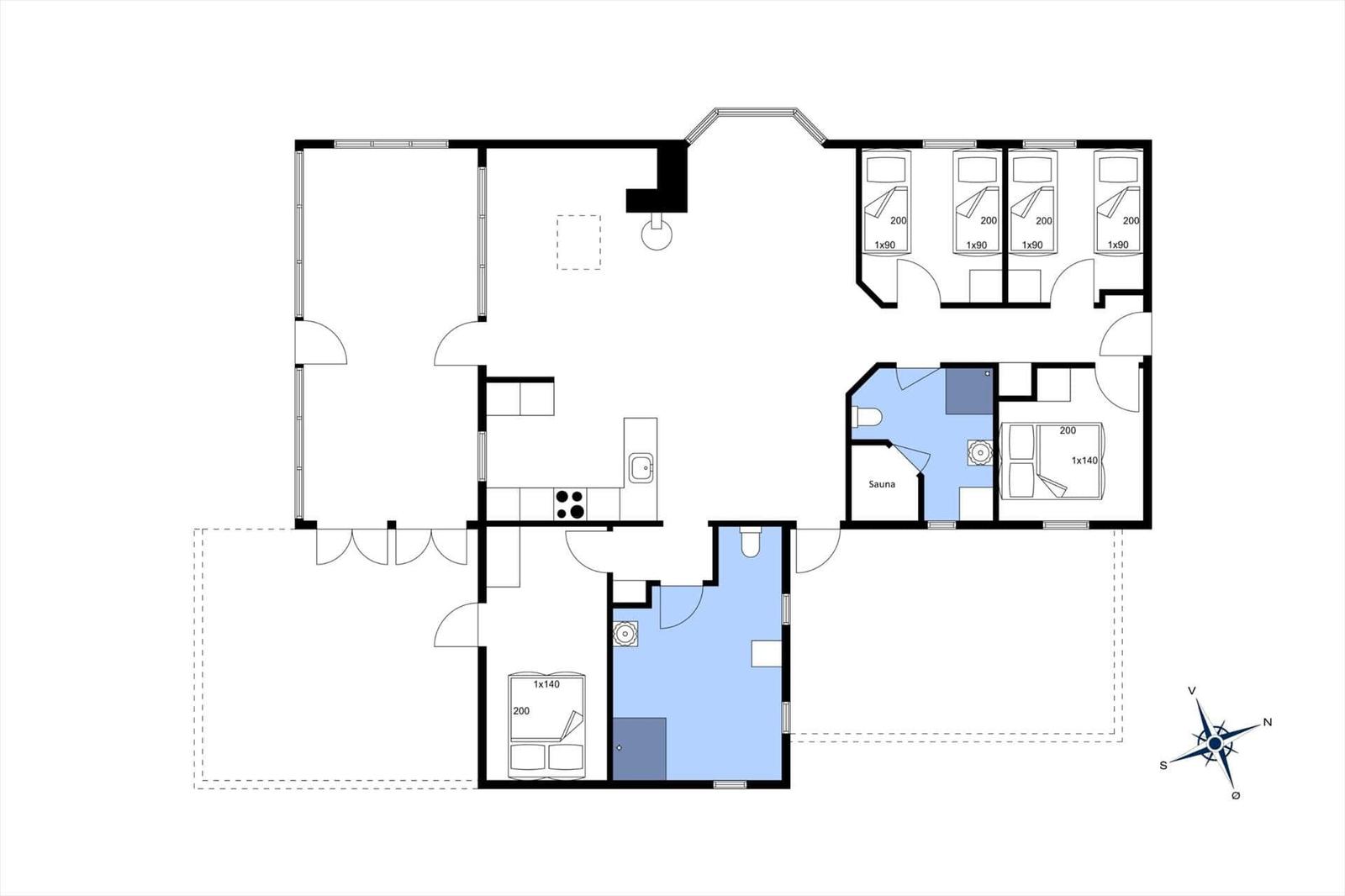 In der Ferienwohnung in Vorupør, Nordjütland, erwartet Gäste eine großzügige und gemütliche Einrichtung auf 124 m². Die Unterkunft bietet Platz für bis zu 8 Erwachsene, 2 Haustiere und sorgt mit 4 Schlafzimmern, 2 Badezimmern sowie einem Wohnschlafzimmer für komfortables Wohnen. Die moderne Ausstattung umfasst WLAN, einen Smart-TV, einen Kamin und eine Fußbodenheizung, die für wohlige Wärme sorgt. Für Familien mit Kleinkindern stehen ein Kinderhochstuhl und mehrere Kinderbetten zur Verfügung. Die Küche ist komplett ausgestattet mit einem Geschirrspüler, Elektro- und Gasherd, Kühlschrank, Kaffeemaschine und Wasserkocher, während eine Waschmaschine und ein Wäschetrockner den Aufenthalt erleichtern. Zur Entspannung stehen Sauna und die Nähe zum Strand (1.160 m) sowie Einkaufsmöglichkeiten (530 m) bereit. Auf dem 680 m² Grundstück finden sich unter anderem eine Schaukel für Kinder.
