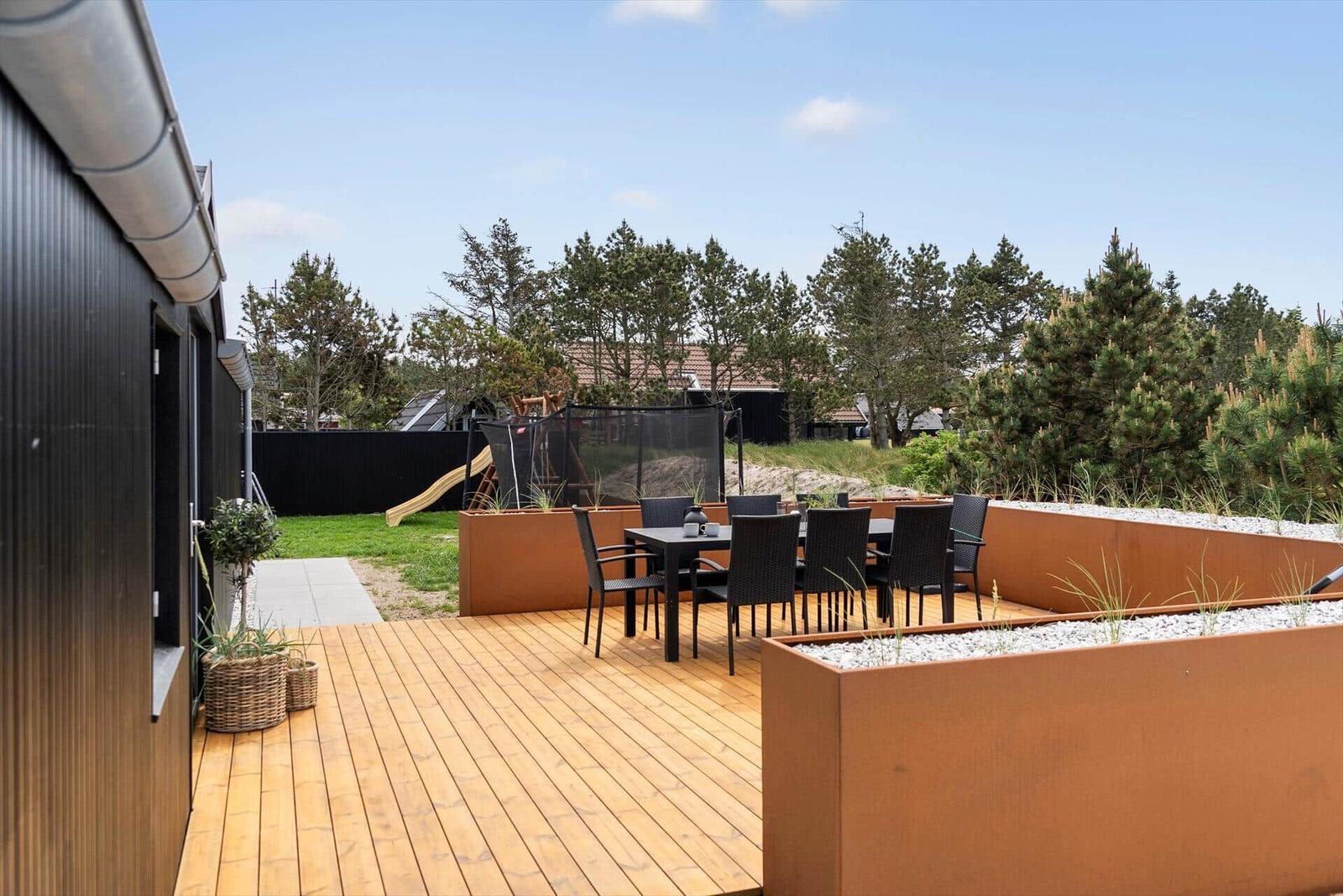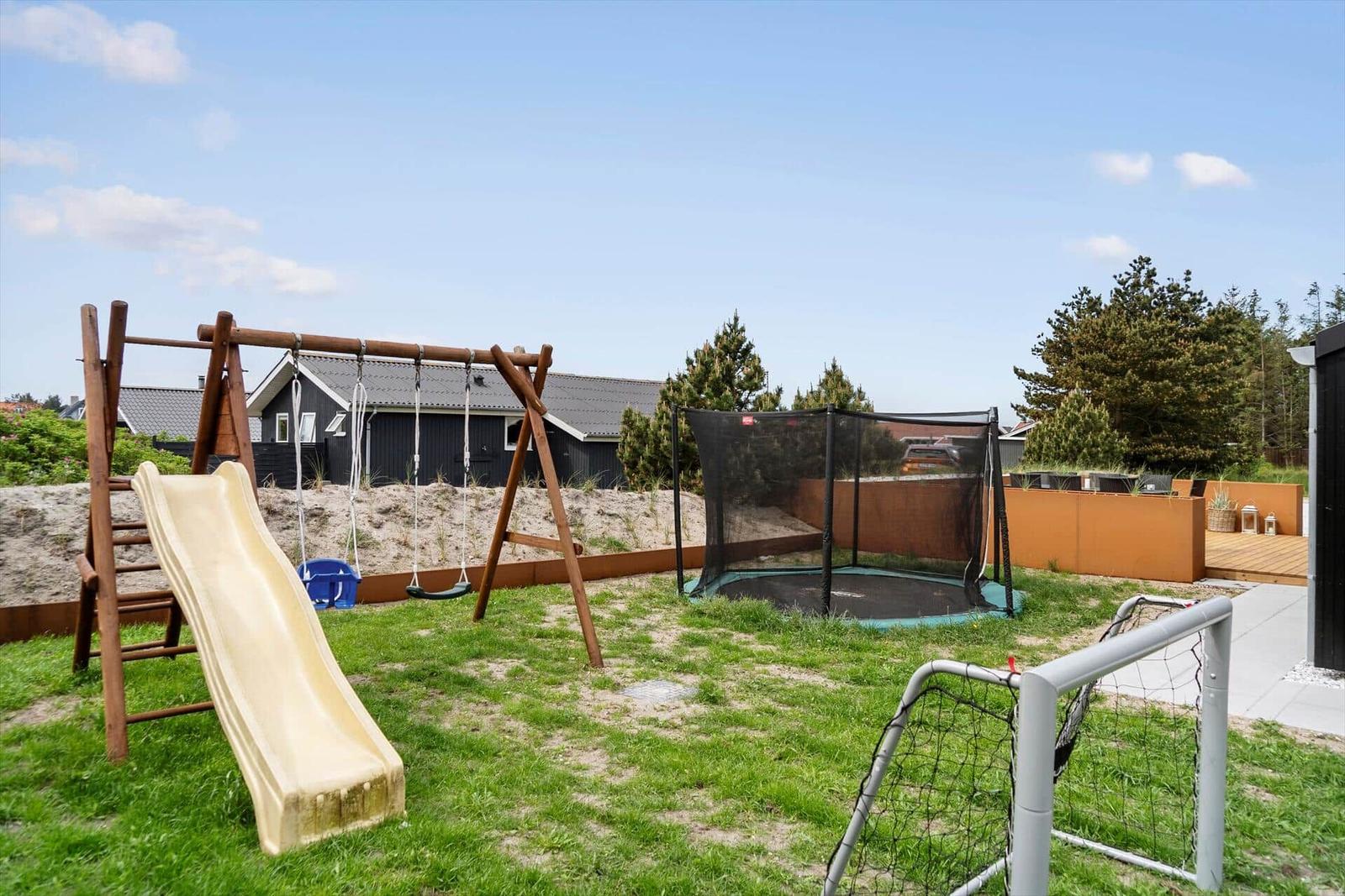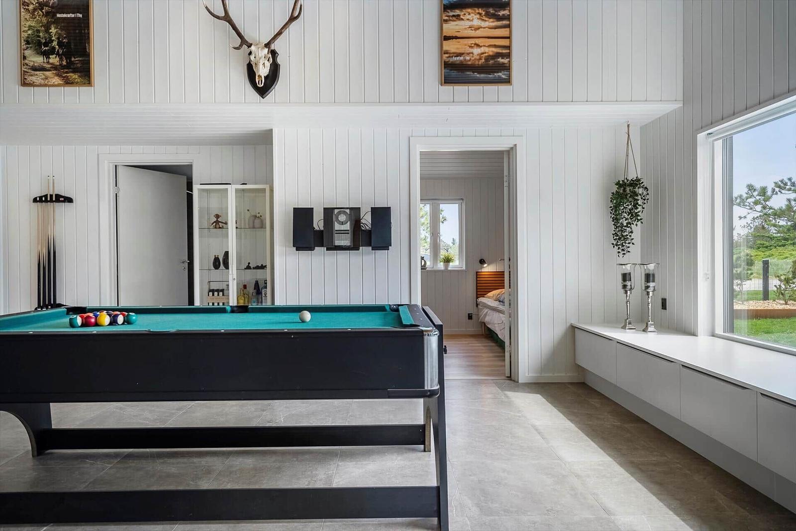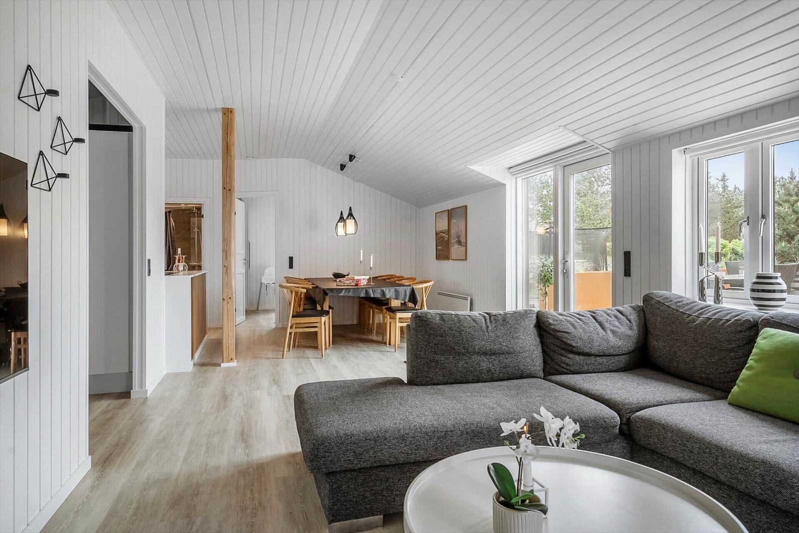 In der Nordsøvej 182 in Vorupør erwartet ein attraktives Ferienhaus, das ideal für eine erholsame Auszeit ist. Die durchdachte Einrichtung besteht aus drei Schlafzimmern, darunter zwei Doppelbettzimmer und ein Einzelzimmer, die für Ruhe und Komfort sorgen. Das lichtdurchflutete Wohnschlafzimmer ist mit einem Smart-TV ausgestattet und bietet Gemütlichkeit durch eine ansprechende Gestaltung und Fußbodenheizung.