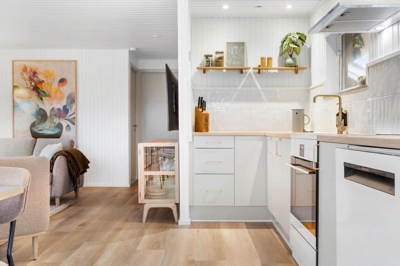Die Ferienwohnung in Vorupør, Nordjütland, bietet einen einladenden Außenbereich, der zur Erholung und Entspannung einlädt. Auf einem großzügigen Grundstück von 608 m² steht ein gemeinschaftlich nutzbarer Bereich zur Verfügung. Gäste können hier die frische Nordjütländer Luft genießen und sich im Freien aufhalten. Die Unterkunft liegt nur 800 Meter vom nächsten Strand entfernt, was ideale Möglichkeiten für Strandspaziergänge und Wassersport bietet. Zudem befinden sich Einkaufsmöglichkeiten nur 480 Meter entfernt, was den Zugang zu frischen Lebensmitteln und weiteren Annehmlichkeiten erleichtert. Die stilvolle Einrichtung der Ferienwohnung auf 61 m² schafft eine gemütliche Atmosphäre, während zusätzliche Annehmlichkeiten wie Waschmaschine, Spülmaschine und Wäschetrockner den Aufenthalt komfortabel gestalten. Dies sorgt für ein rundum gelungenes Ferienerlebnis in der malerischen Umgebung von Vorupør.