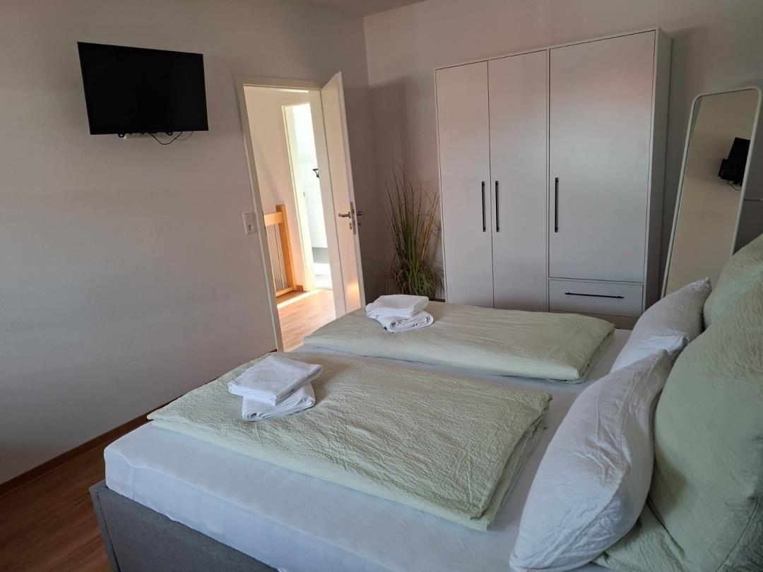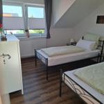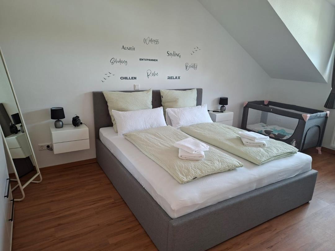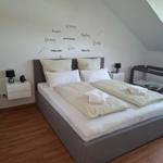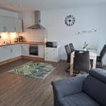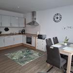 Die geräumige Ferienwohnung bietet optimalen Komfort für Familien und Paare. Sie verfügt über zwei Schlafzimmer mit insgesamt vier Doppelbetten und zwei modernen Badezimmern, die mit einem Duschbad ausgestattet sind. Eine separate Küche lädt zum Kochen ein und bietet umfassende Ausstattung, darunter Geschirrspüler, Elektro-/Gasherd, Backofen, Mikrowelle, Kühlschrank, Kaffeemaschine, Toaster und Gefriermöglichkeit. Ein Esstisch sorgt für gesellige Mahlzeiten. Für Familien mit Kleinkindern stehen ein Kinderhochstuhl und Kinderspielzeug bereit. Die Wohnung bietet zudem Internet mit WLAN, einen TV und eine Spielekonsole für Unterhaltung. Mit einem privaten Eingang, Parkplatz und Annehmlichkeiten wie Waschmaschine, Wäschetrockner sowie Haartrockner ist die Wohnung bestens ausgestattet. Fliegengitter und Rauchmelder gewährleisten Sicherheit und Komfort. Energiesparlampen sorgen für eine umweltfreundliche Beleuchtung.