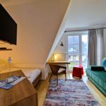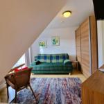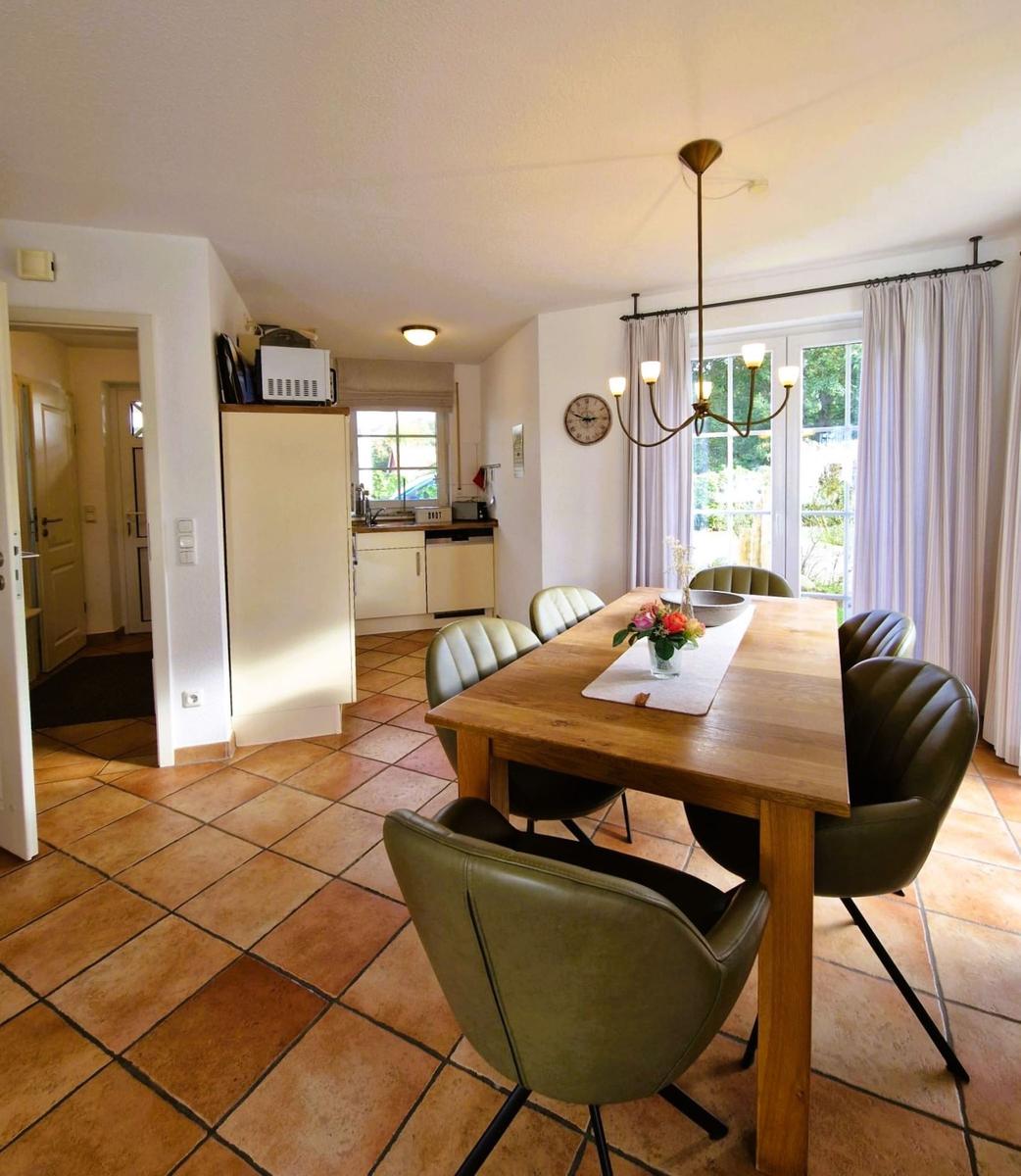 Die Ferienwohnung bietet großzügigen Raum für einen entspannten Aufenthalt. Sie verfügt über drei Schlafzimmer, die jeweils mit Doppelbetten ausgestattet sind, sowie zwei moderne Badezimmer mit Duschbad und Gäste-WC. Die offene Küche ist funktional und bietet eine umfassende Ausstattung, darunter einen Geschirrspüler, Elektro-/Gasherd, Backofen, Mikrowelle und Kühlschrank. Für den Kaffeegenuss steht eine Kaffeemaschine bereit, ebenso wie ein Toaster und eine Gefriermöglichkeit. Der gemütliche Wohnbereich mit Kamin oder Kachelofen lädt zum Verweilen ein und ist mit einer HiFi-Anlage sowie TV ausgestattet. WLAN ist selbstverständlich vorhanden. Die Wohnung ist allergikergeeignet und bietet Komfort durch einen Kinderhochstuhl, Haartrockner, Waschmaschine, Wasserkocher sowie Geschirr und Besteck. Ein Parkplatz sowie Fliegengitter und Rauchmelder sorgen für zusätzliche Sicherheit und Bequemlichkeit.