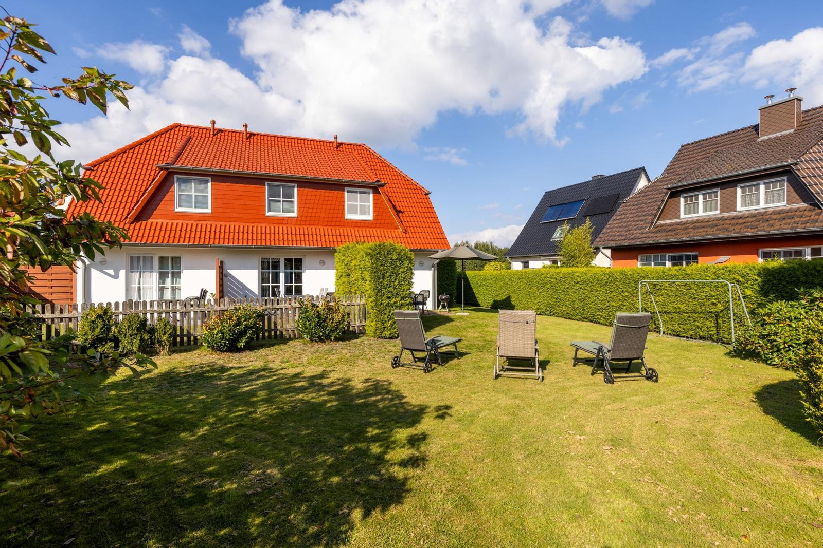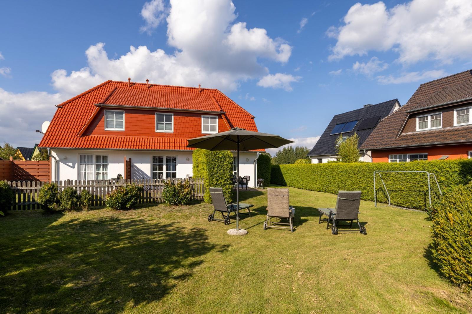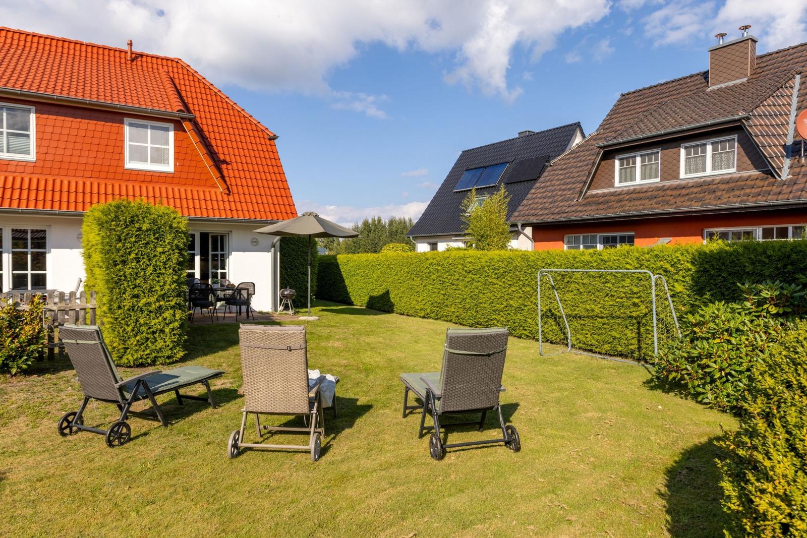 Im Außenbereich des Haus Kranichwiese erwartet die Gäste eine einladende, möblierte Terrasse, die zum Entspannen in der Natur einlädt. Der Garten umfasst eine Liegewiese, Sonnenliegen und Gartenmöbel, die eine angenehme Atmosphäre im Freien schaffen. Ein Sonnenschirm sorgt für Schatten, während ein Kohlegrill für gesellige Grillabende bereitsteht. Die eingezäunte Umgebung gewährleistet Sicherheit, besonders für Familien mit Kindern, die zudem Spielzeug finden. Ausreichend Wohnraum im Freien wird durch den privaten Parkplatz direkt am Objekt ergänzt. Die ruhige Lage in einem Dorfviertel ermöglicht es, die Vorteile der Natur mit der Nähe zum Ostseestrand, nur 3 km entfernt, zu kombinieren. Diese Umgebung ist ideal für Erholung und Aktivitäten wie Radfahren und Spaziergänge. Haus Kranichwiese ist somit der perfekte Ort für unbeschwerte Urlaubstage im Freien.