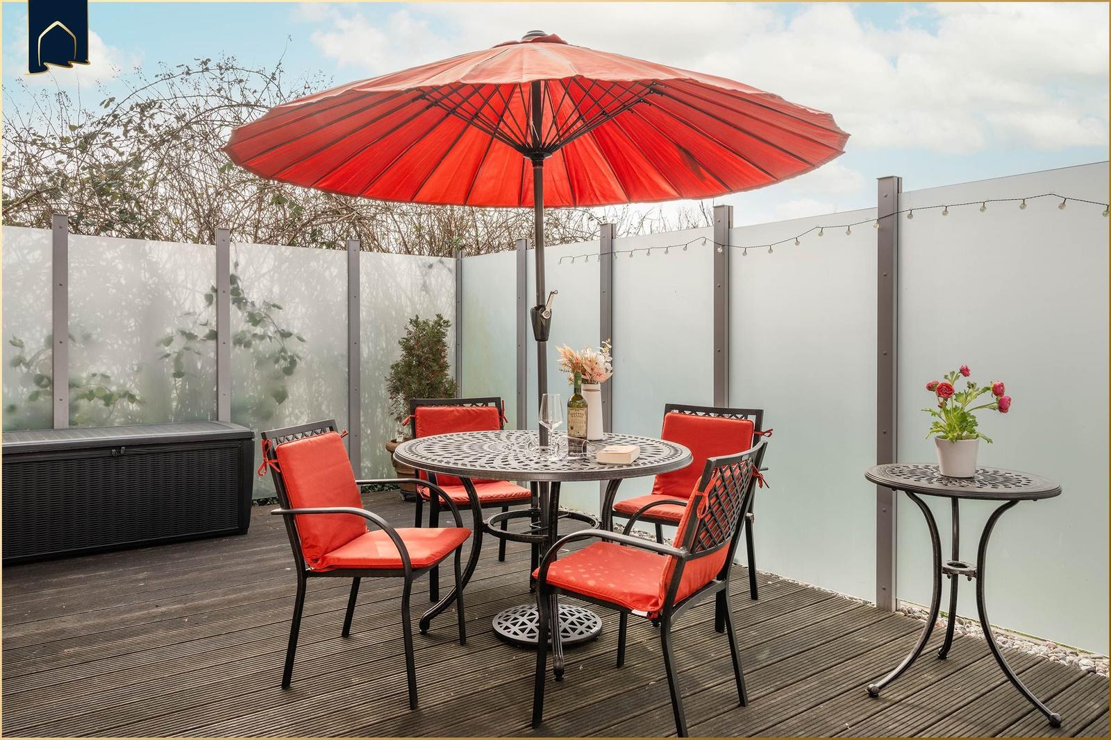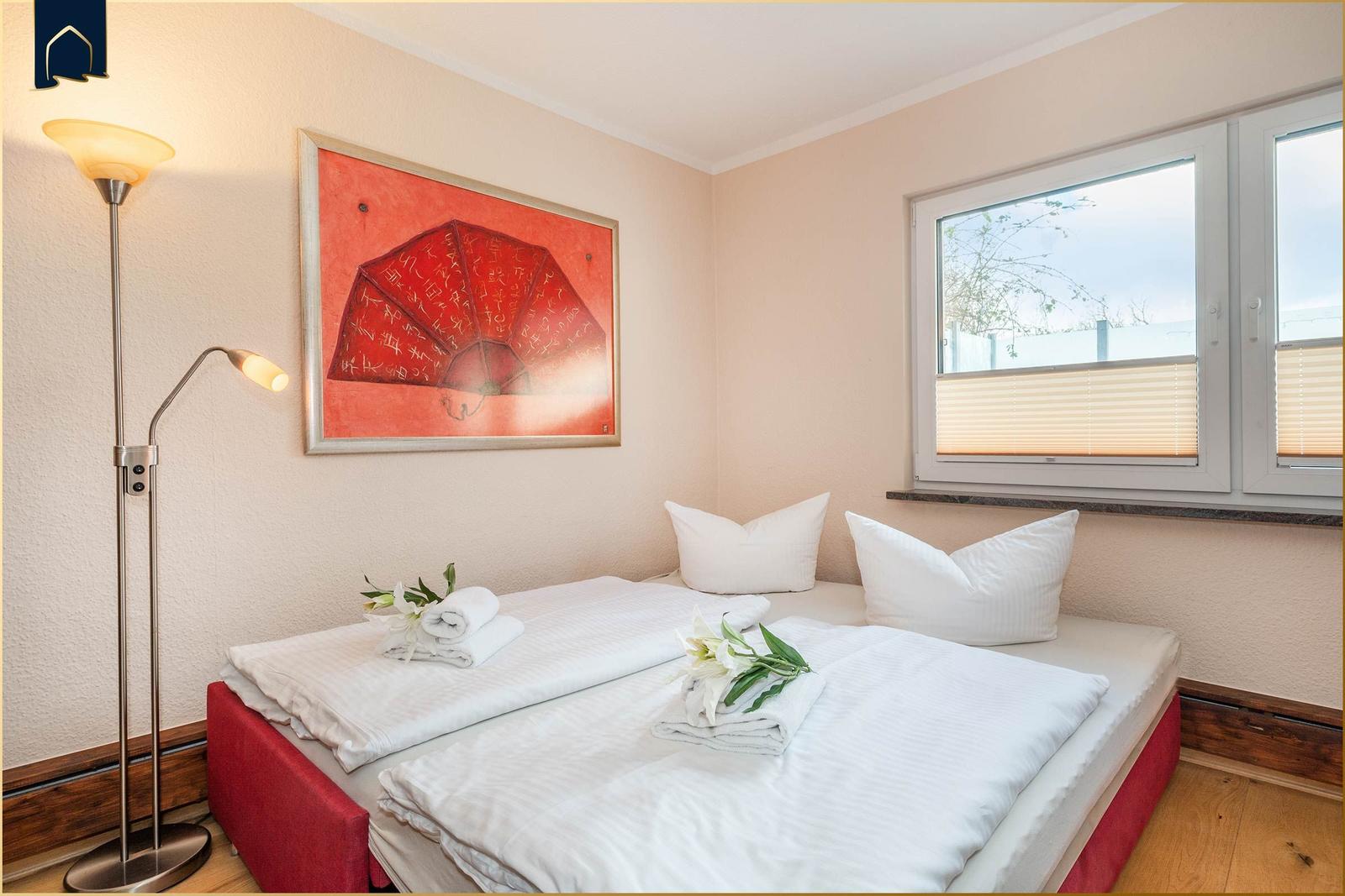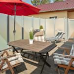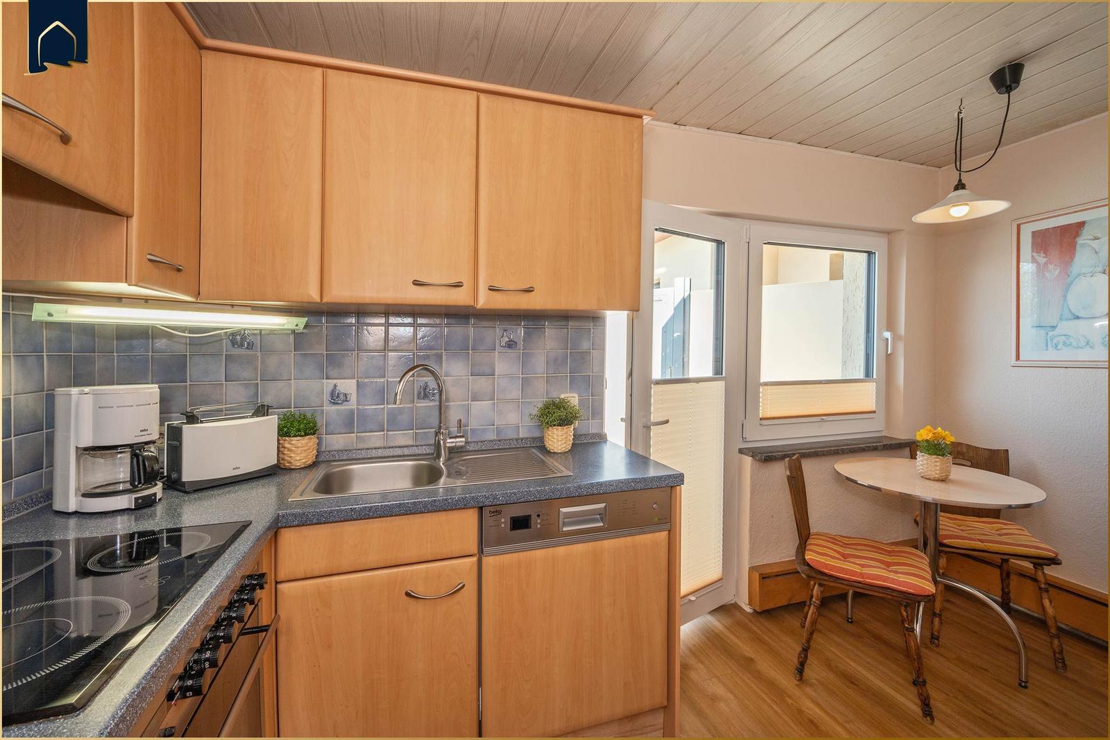 Die Ferienwohnung bietet großzügige Räume und eine moderne Ausstattung, die den Aufenthalt zu einem komfortablen Erlebnis macht. Im Schlafzimmer befindet sich ein gemütliches Doppelbett, während das Schlafsofa im Wohnbereich mit Lattenrost für einen angenehmen Schlaf sorgt. Die voll ausgestattete Küche verfügt über einen Elektro-/Gasherd, Backofen, Mikrowelle, Geschirrspüler und Kühlschrank, ergänzt durch Geschirr, Besteck und eine Kaffeemaschine. Das Badezimmer mit Fenster und Duschbad bietet einen Haartrockner sowie Spiegel. Der Kamin/Kachelofen sorgt für eine wohlige Atmosphäre an kühleren Tagen. Kostenloses WLAN ist selbstverständlich, und die Wohnung ist allergikergeeignet. Für zusätzlichen Komfort sorgen Fliegengitter, Heizung, ein Esstisch und ein TV. Der Parkplatz direkt vor der Tür und der Sonnenschirm im Außenbereich runden das Angebot ab. Hier finden Gäste alles, was sie für einen entspannten Aufenthalt benötigen.