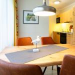 Die Ferienwohnung bietet eine moderne und komfortable Ausstattung, ideal für einen entspannten Aufenthalt. Sie verfügt über ein Schlafzimmer mit einem Doppelbett sowie ein Wohnschlafzimmer mit einer Schlafcouch, die zusätzlichen Schlafraum bietet. Die offene Küche ist vollständig ausgestattet und beinhaltet einen Geschirrspüler, Elektro-/Gasherd, Backofen, Mikrowelle und Kühlschrank. Ein Wasserkocher, eine Kaffeemaschine und ein Toaster runden die Küchenannehmlichkeiten ab. Das Badezimmer ist mit einer Dusche, einem Haartrockner und einem Kosmetikspiegel ausgestattet. Die Wohnung ist allergikergeeignet und bietet WLAN-Internet, einen Fernseher und eine HiFi-Anlage für die Freizeitgestaltung. Ein Esstisch, gemütliche Sofas und Sessel sowie Stauraum durch einen Spiegel und einen Wäscheständer sind ebenfalls vorhanden. Ein Parkplatz steht zur Verfügung und die Wohnung ist mit einem Rauchmelder sowie einer Heizung ausgestattet. Brettspiele sorgen für zusätzlichen Spaß und Unterhaltung.