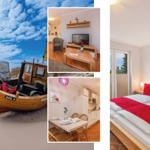 Die Ferienwohnung bietet eine komfortable und moderne Ausstattung, die ideal für einen entspannten Aufenthalt ist. Sie verfügt über ein Schlafzimmer mit einem Doppelbett sowie ein Wohnschlafzimmer mit einer Schlafcouch, was zusätzlichen Platz für bis zu vier Personen ermöglicht. Die separate Küche ist vollständig ausgestattet mit einem Geschirrspüler, Elektro-/Gasherd, Mikrowelle, Kühlschrank, Gefriermöglichkeit und einer Kaffeemaschine. Ein Esstisch lädt zum gemeinsamen Speisen ein.