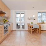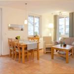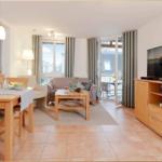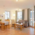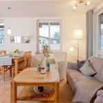 Die Ferienwohnung bietet eine großzügige und allergikerfreundliche Ausstattung auf hohem Niveau. Sie verfügt über zwei Schlafzimmer, eines mit einem komfortablen Doppelbett und das andere mit zwei Einzelbetten, ideal für Familien oder Gruppen. Die offene Küche ist modern gestaltet und enthält einen Elektro-/Gasherd, Backofen, Mikrowelle, Kühlschrank sowie einen Geschirrspüler für eine bequeme Zubereitung von Mahlzeiten. Es gibt zudem eine Kaffeemaschine, Toaster und Gefriermöglichkeit, um den Aufenthalt noch angenehmer zu gestalten. Das Badezimmer ist mit einer bodengleichen Dusche und einem Haartrockner ausgestattet. Im Wohnbereich laden ein Sofa, ein Sessel und ein Esstisch zum Entspannen ein. Zur Unterhaltung stehen eine HiFi-Anlage und ein TV bereit. Für zusätzlichen Komfort sorgen WLAN, eine Waschmaschine und ein Parkplatz. Die Wohnung ist durch Fliegengitter und Rauchmelder sicher und komfortabel.
